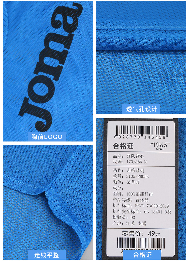 JOMA/霍马足球运动休闲训练比赛分队透气背心成人男3105FPB053