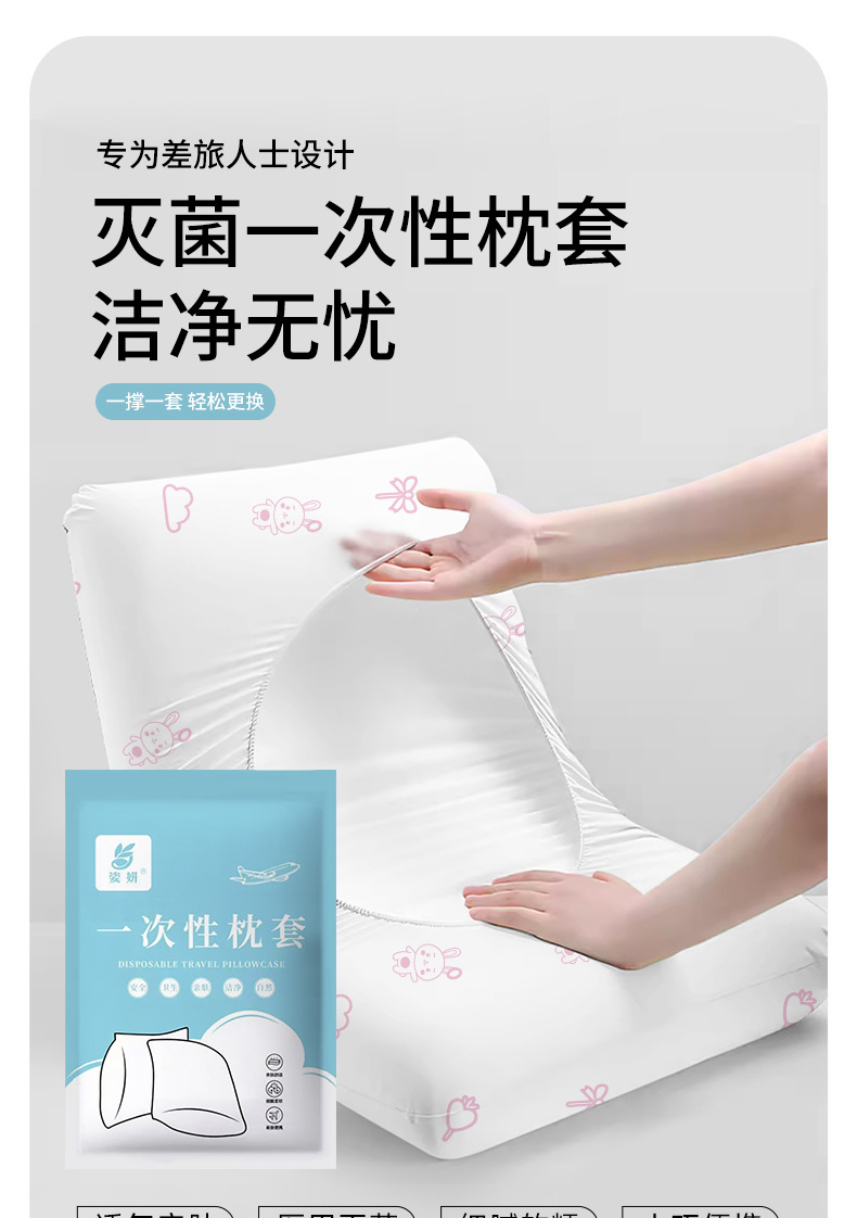 【一撑一套!轻松套取】躺下即是好睡眠,出差旅行一次性枕套旅行枕巾加厚隔脏无菌家用枕头套火车卧铺酒店床上便携。rb