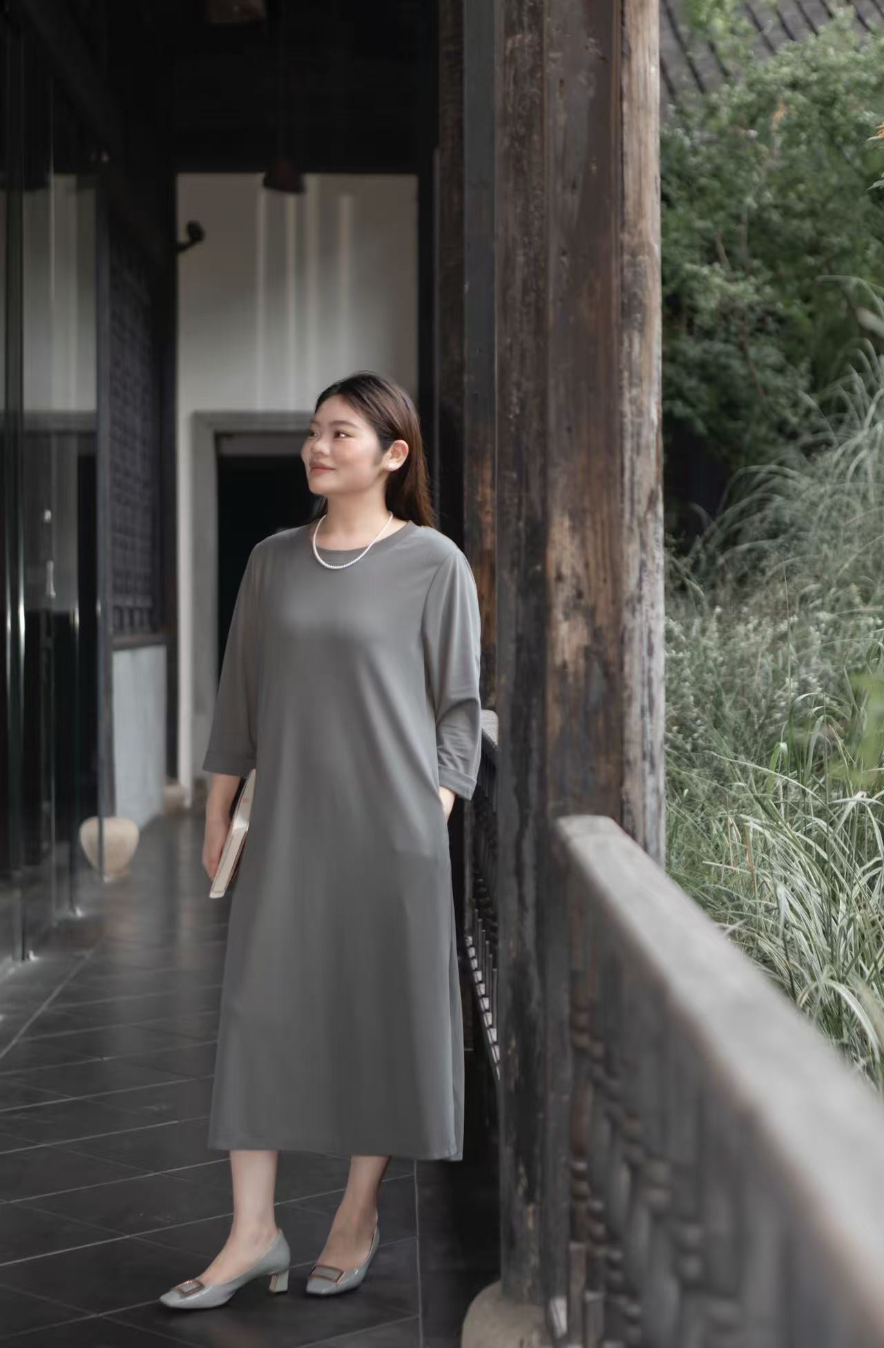 现货👍套头t恤连衣裙【直筒A字连衣裙】天丝罗马布,垂顺亲肤!适合通勤、休闲场合,夏秋过渡连衣裙~ 通勤休闲两穿 | 遮肉八分袖 | 夏秋百搭,天丝罗马布面料,亲肤、透气、柔软、弹力大,面料非常垂顺!