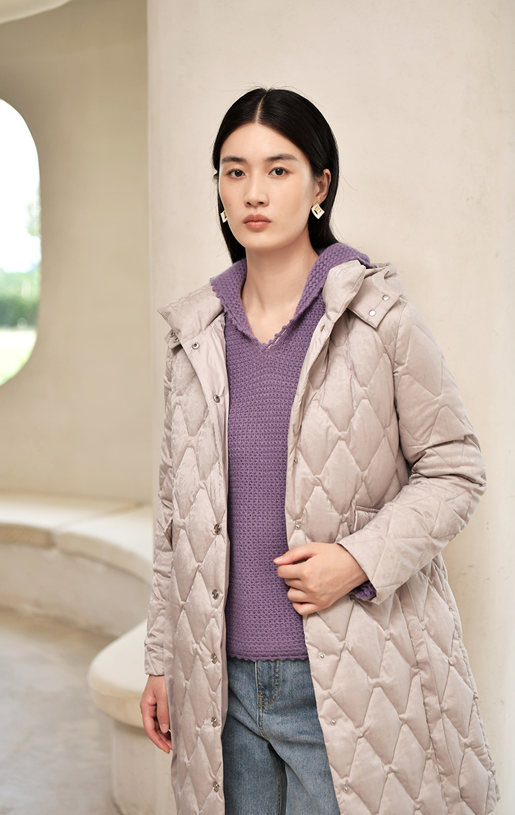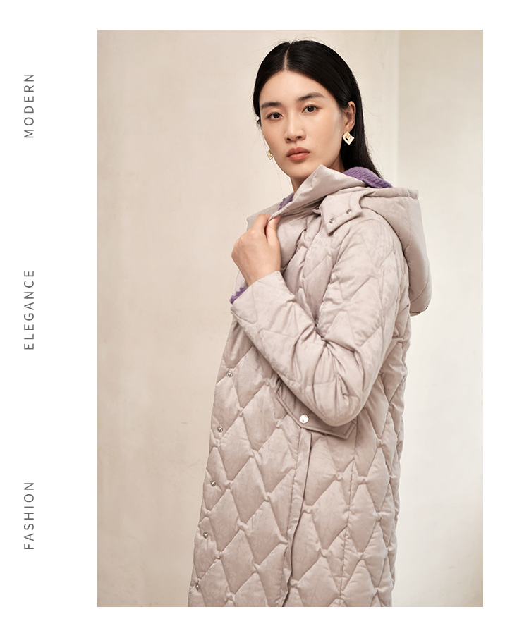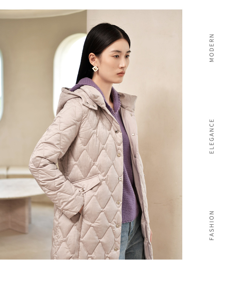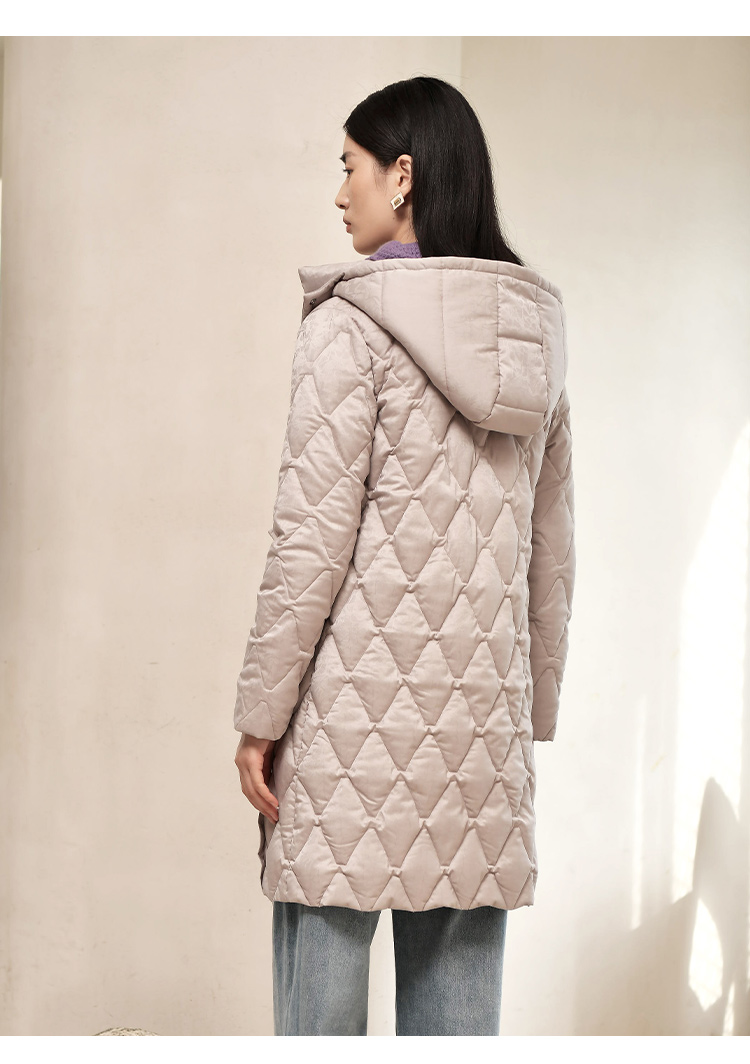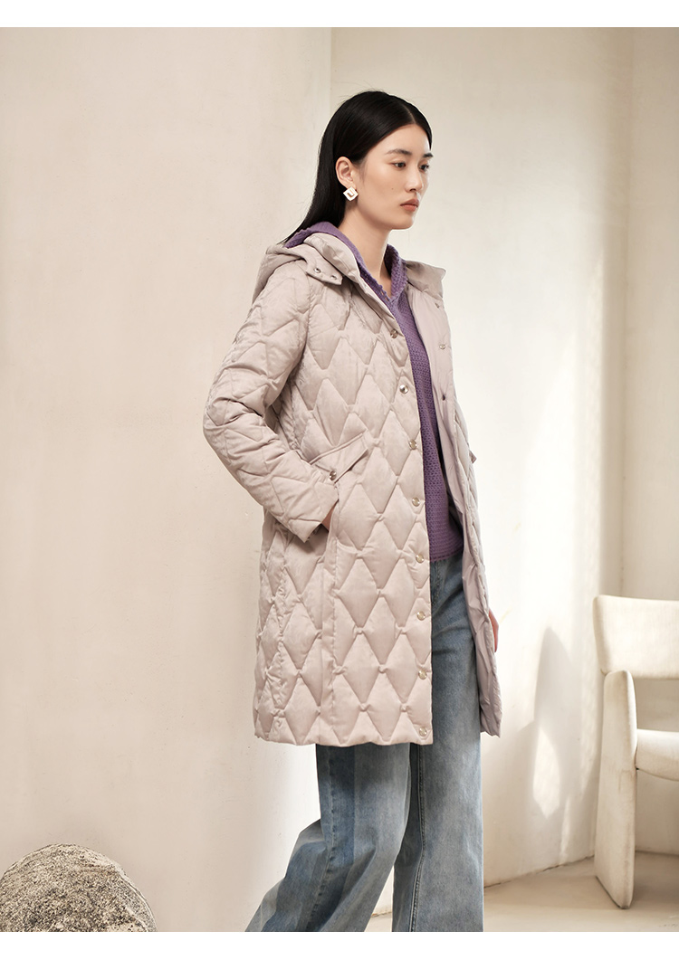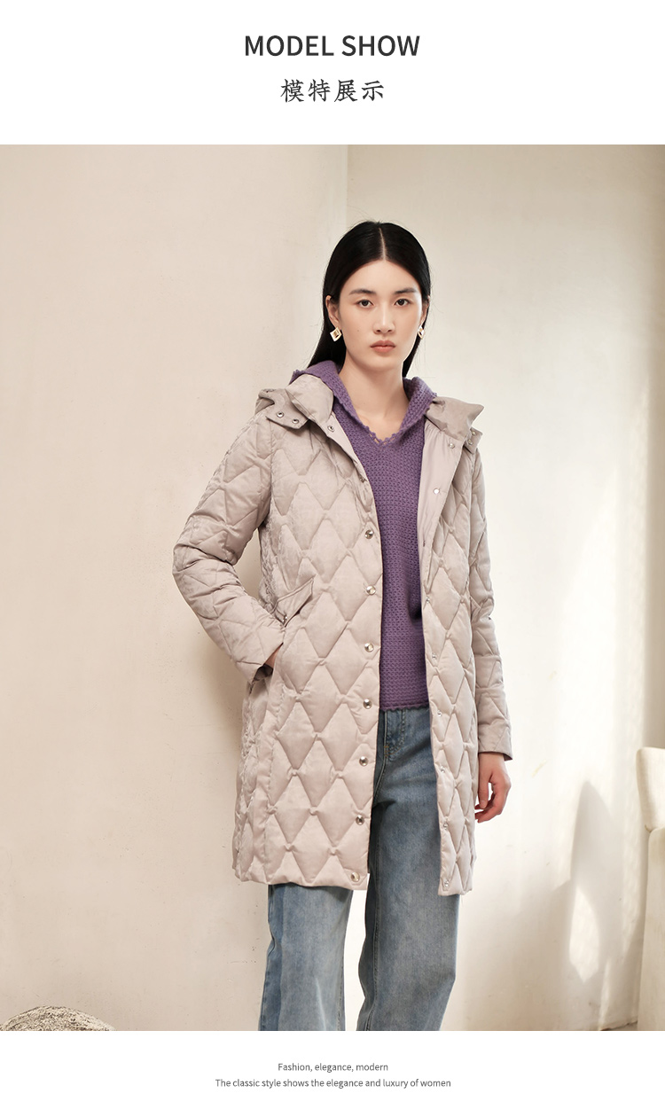 佐尔美冬季新款 经典款连帽保暖菱形格羽绒服女E24YY26