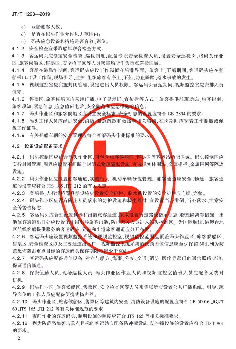 客运码头安全管理基本要求(JT/T 1293—2019)