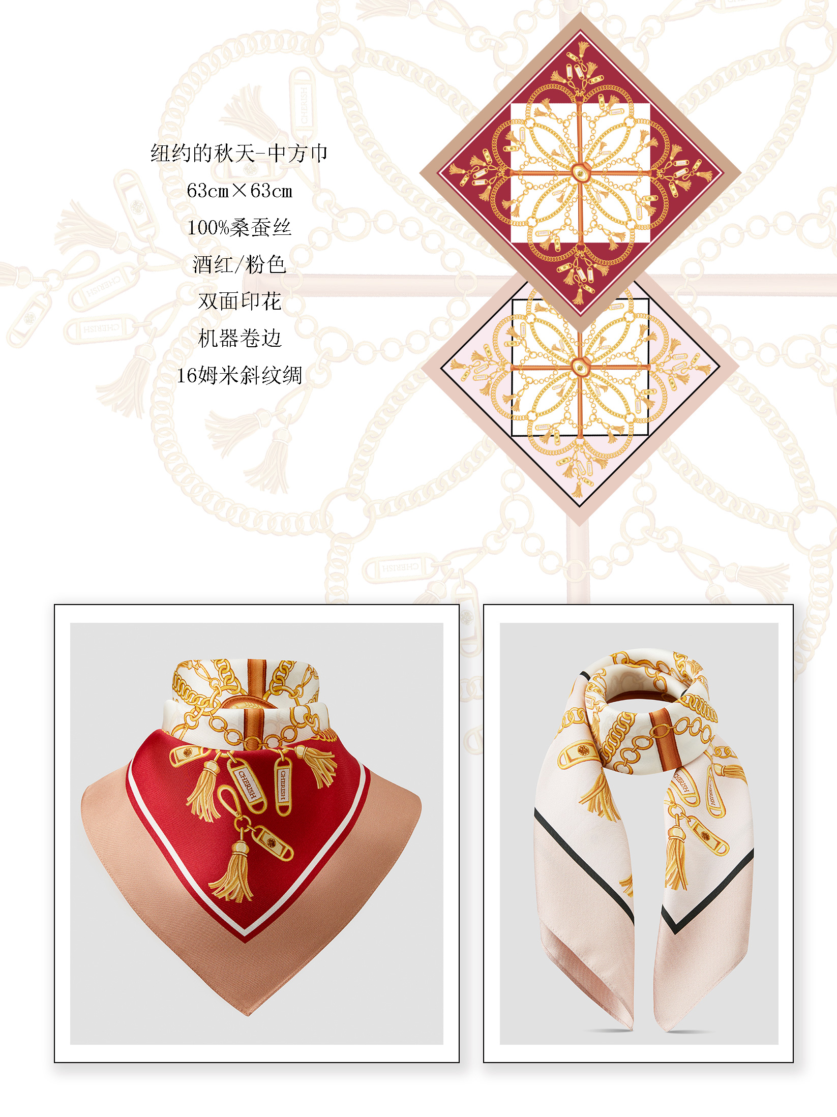 万事利-凡尔赛 双面印花中方巾63*63cm 100%桑蚕丝