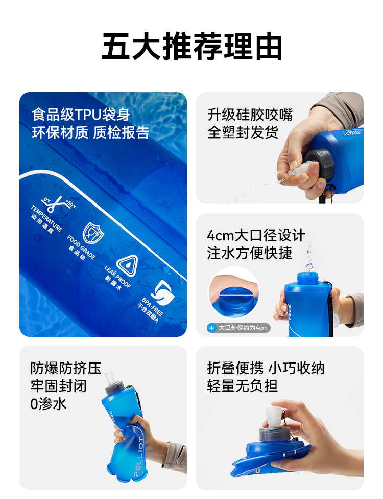 伯希和户外饮水壶越野徒步登山折叠软水袋马拉松骑行运动跑步喝水