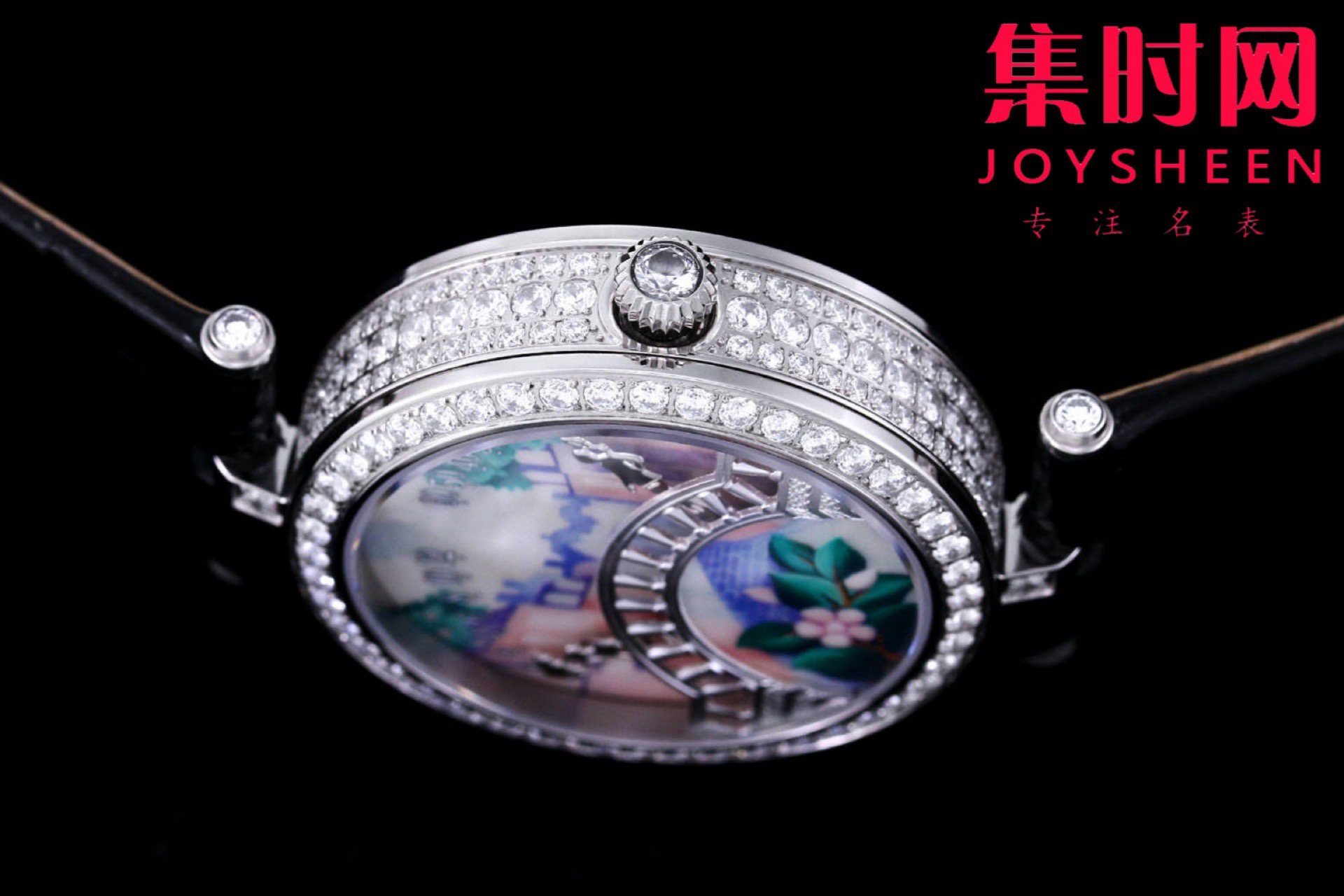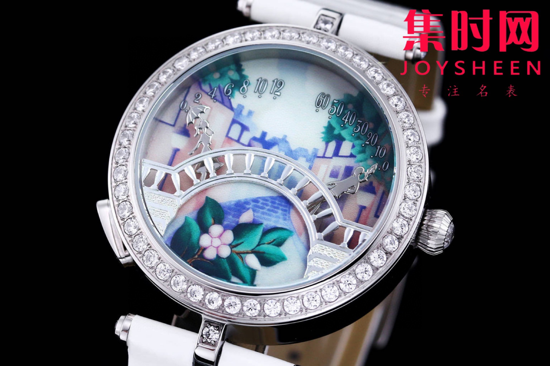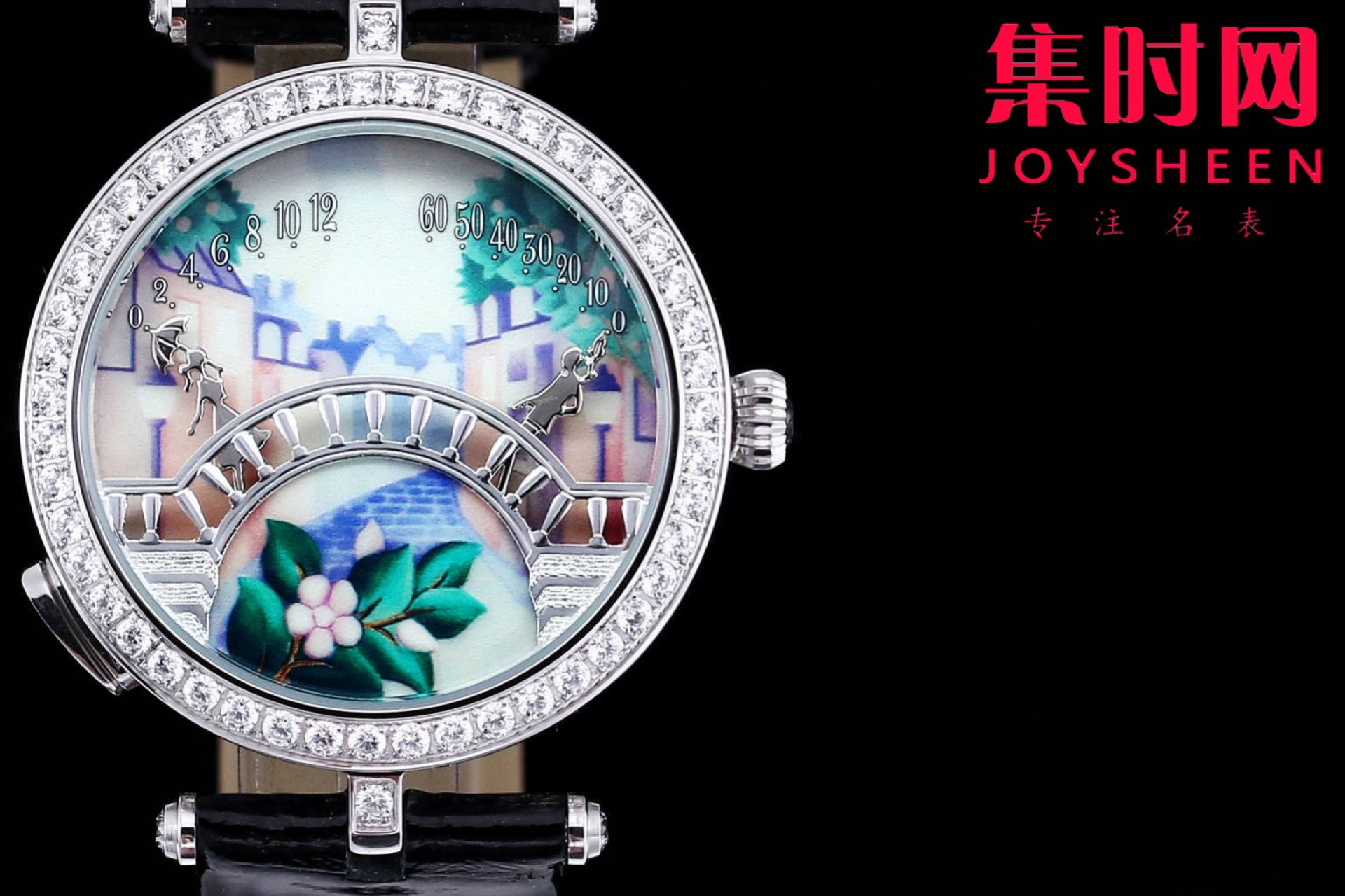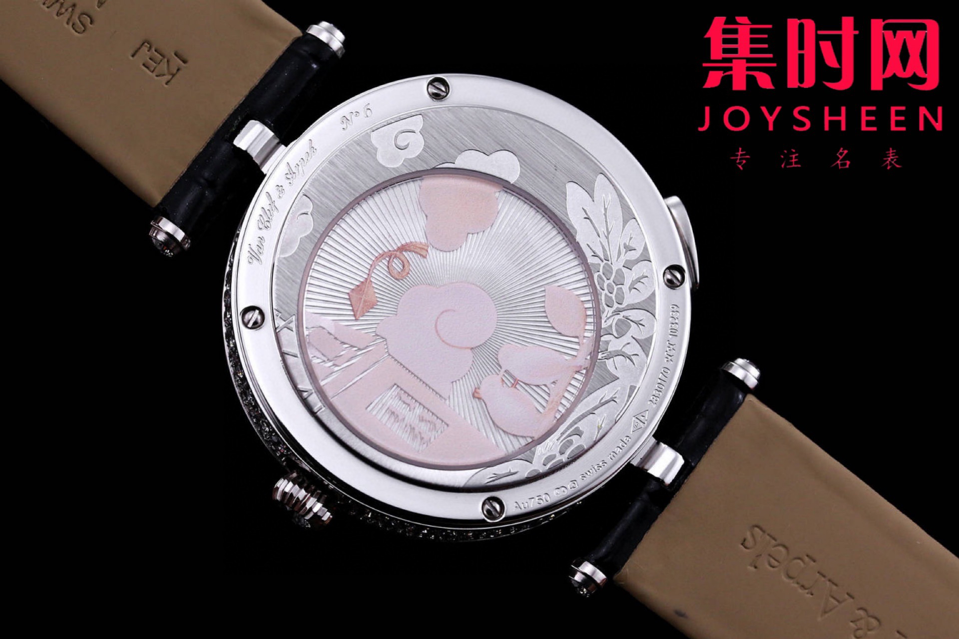 新款5G梵克雅宝 诗意复杂功能系列 恋人之桥 情人桥 女士石英腕表 定制瑞士石英机芯 蓝宝石水晶玻璃镜面 表径38mm 情人桥升级为~316L精钢 1比1复刻,女孩是时针男孩是分针,时针和分钟都是用高科技、技术做成的3D效果针.按一下七字位按钮:会自动走来回三次:亲吻 巜三生三世》表达的你爱意。按三字位按钮一下:自己走到当时的时间后会发现恋人,在悄悄地走到中间去接吻之后各自回到零点。皮带是意大利冰皮设计风格:还什等么,礼物就它了