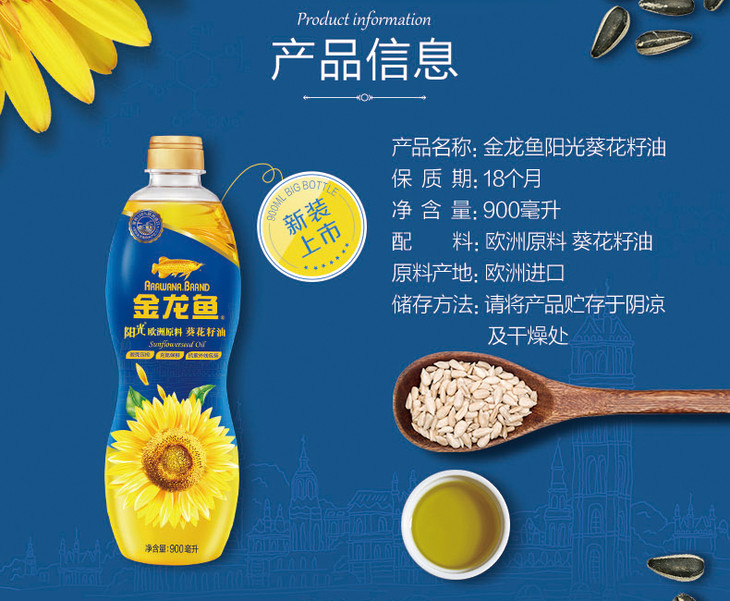金龙鱼玉米胚芽油900ml+阳光葵花籽油900ml超值组合装非转基因压榨