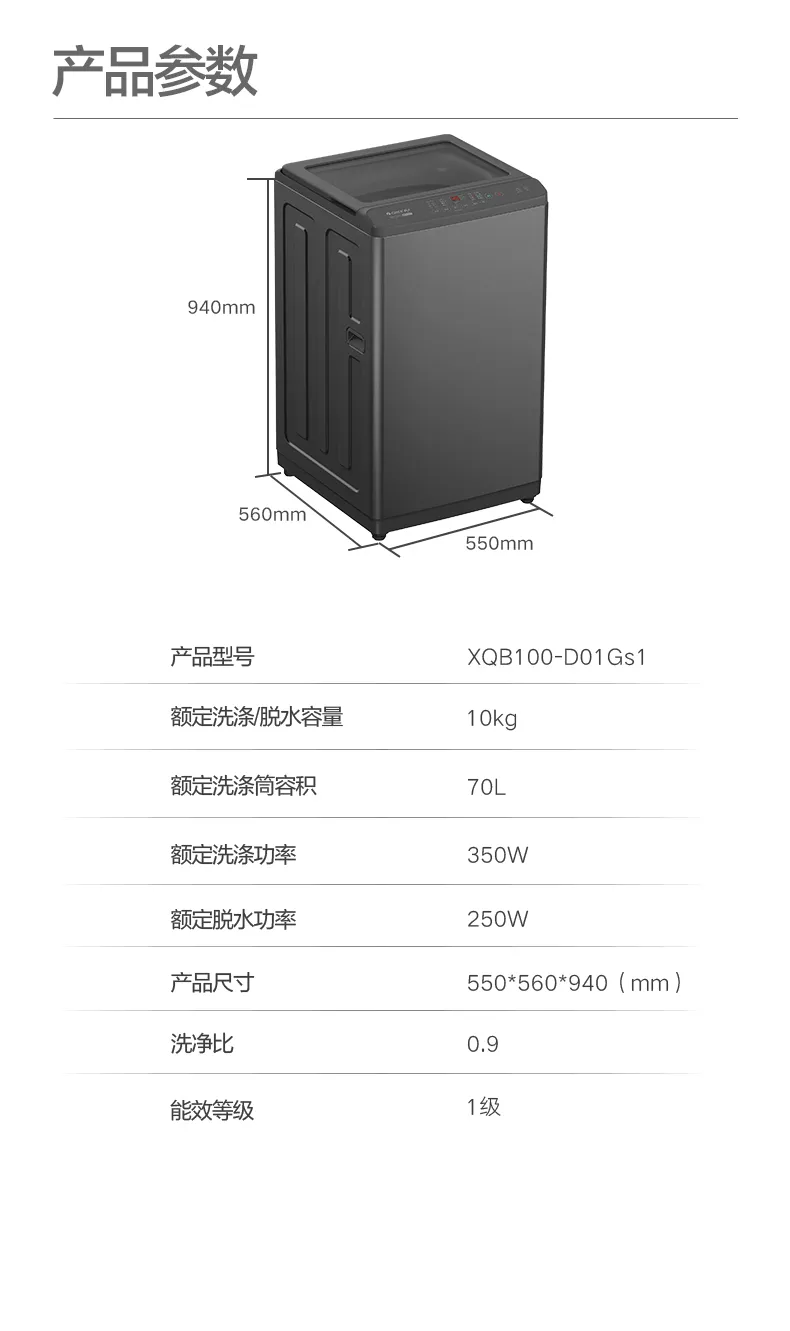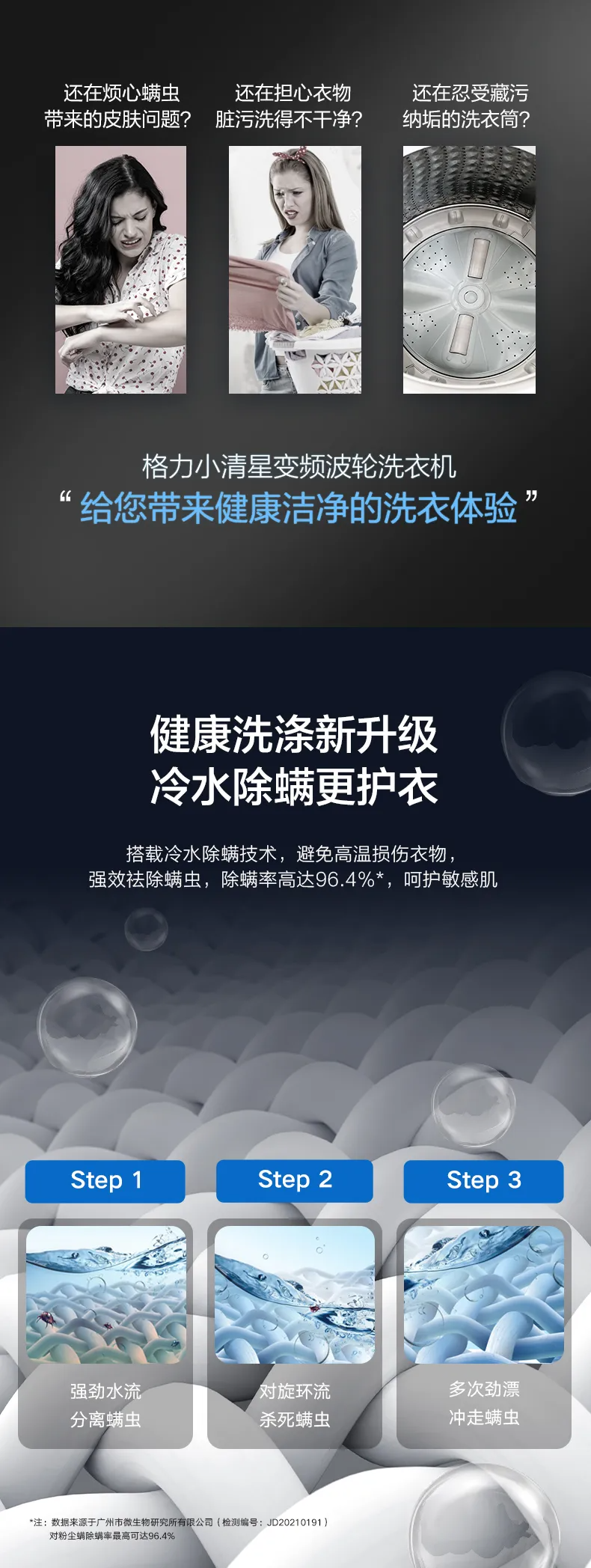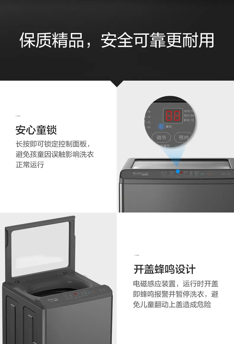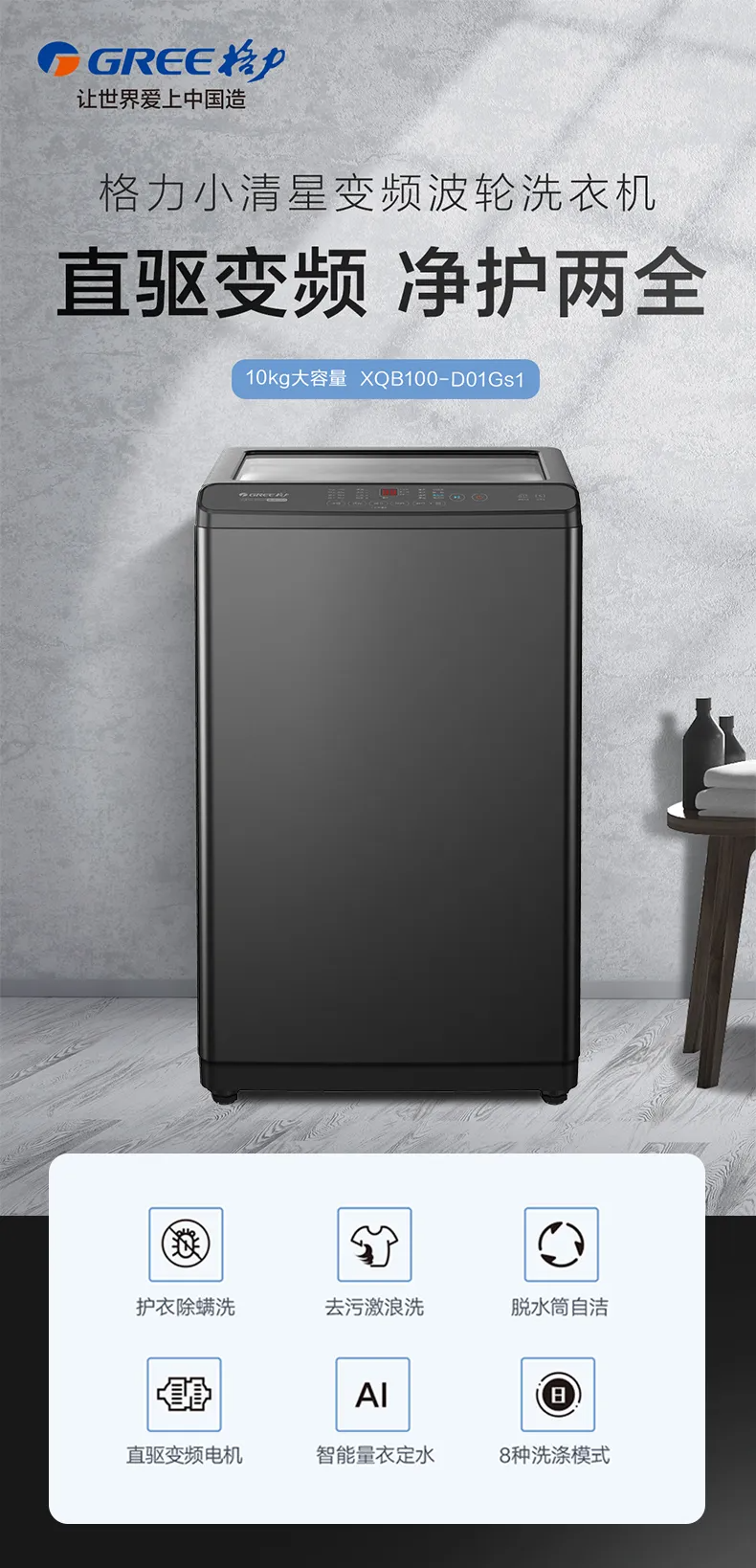 格力·小清星波轮洗衣机 10kg XQB100-D01Gs1(珍珠黑)