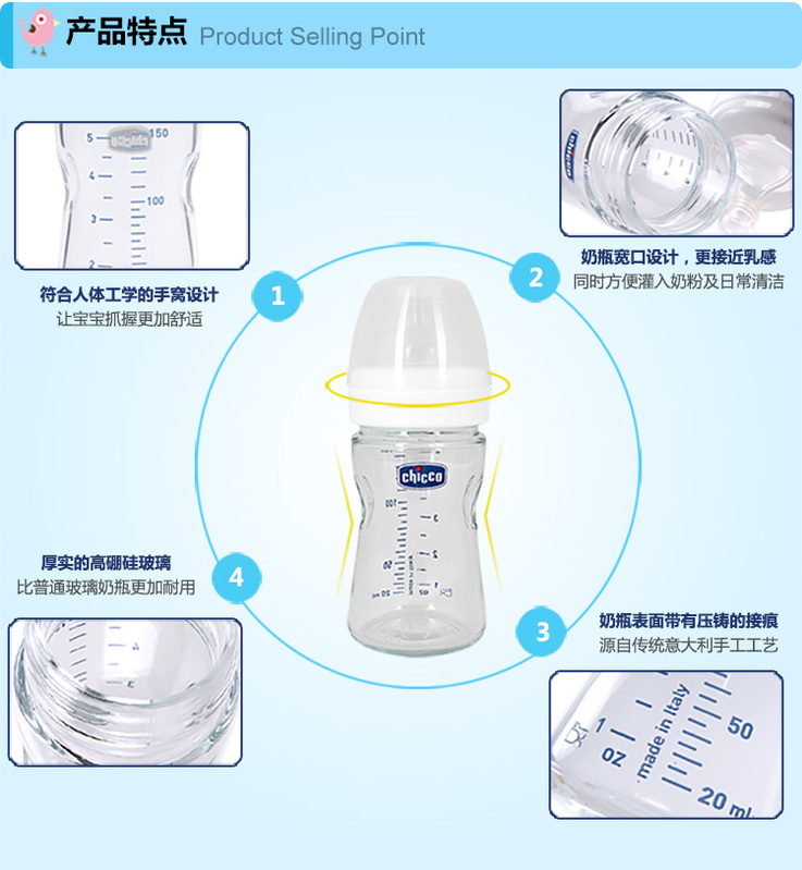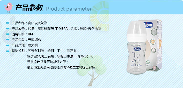 智高宽口玻璃奶瓶240毫升配橡胶奶嘴00060041000040