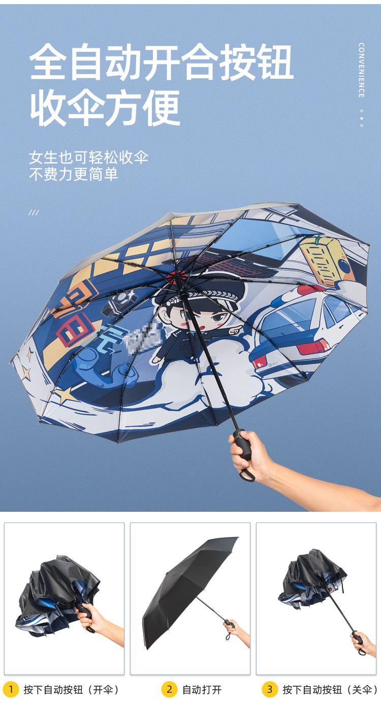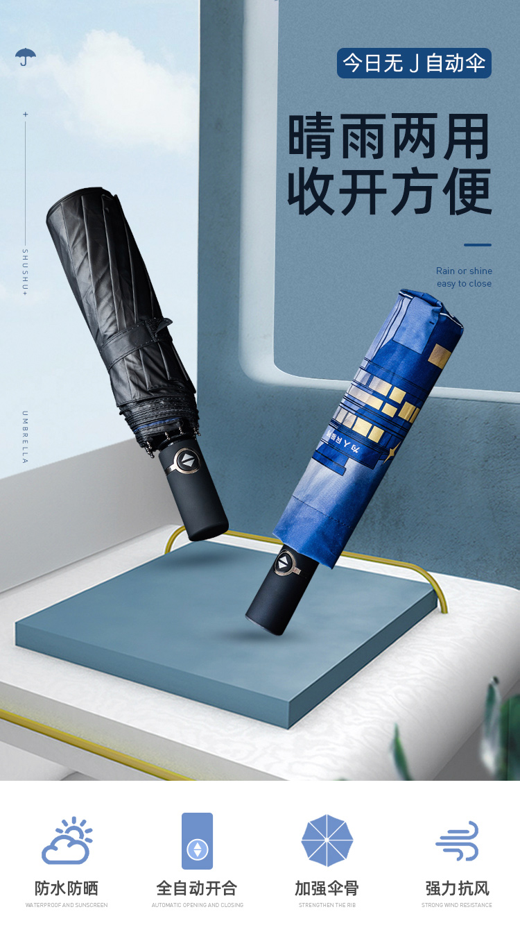【今日无J自动伞】一键开收伞 不伤手 晴雨两用反向伞 原创今日无J图案 黑胶面料