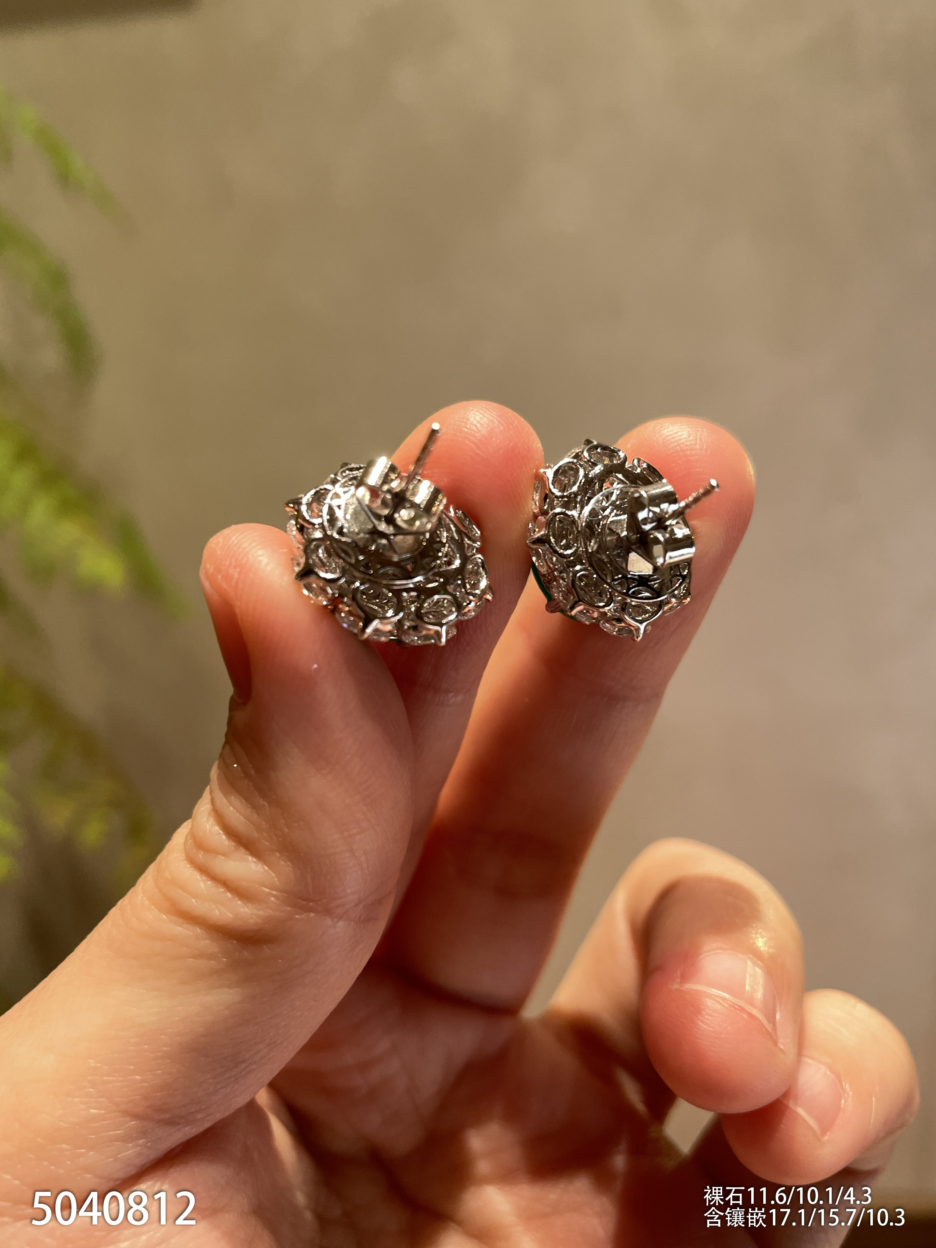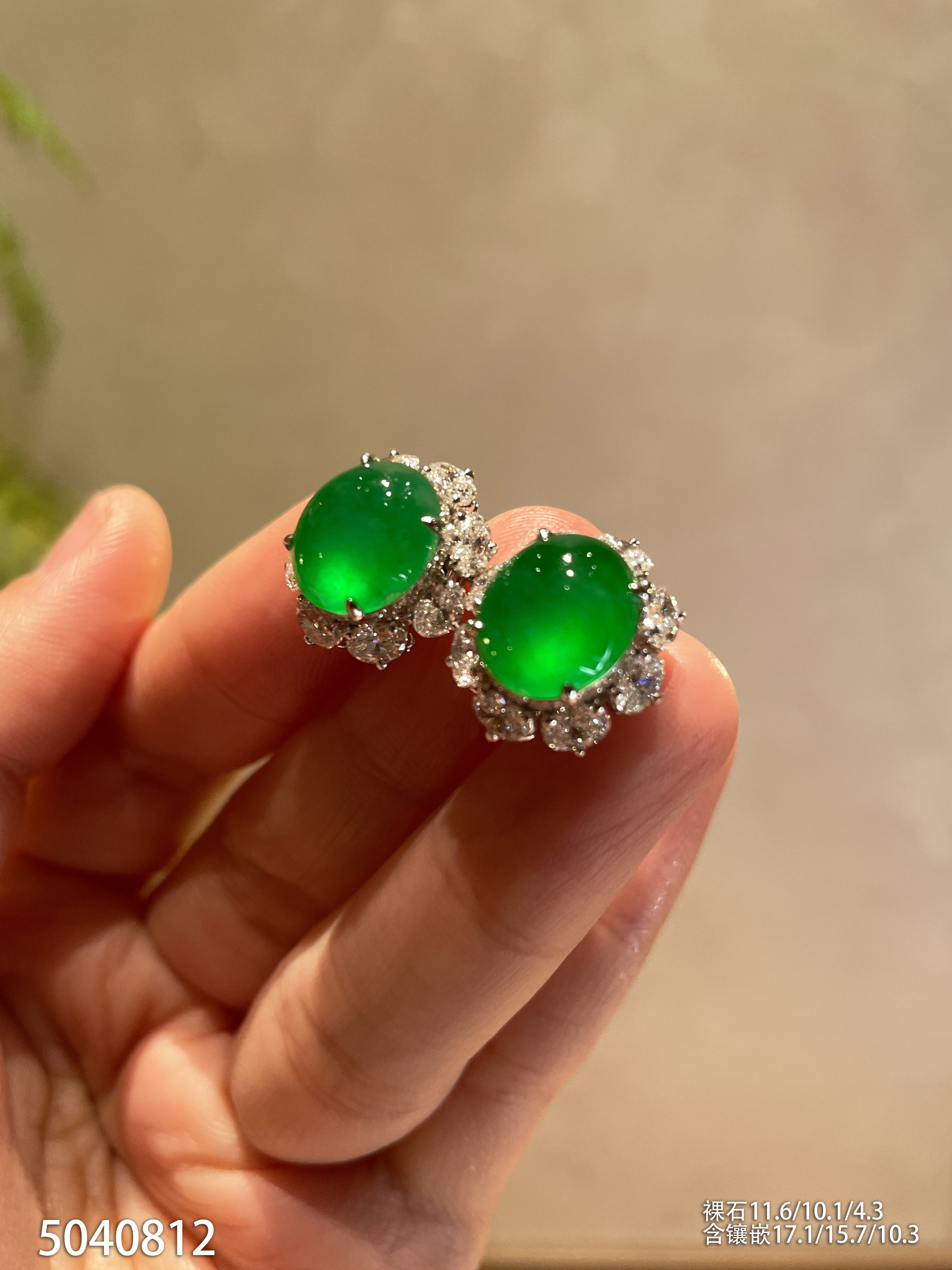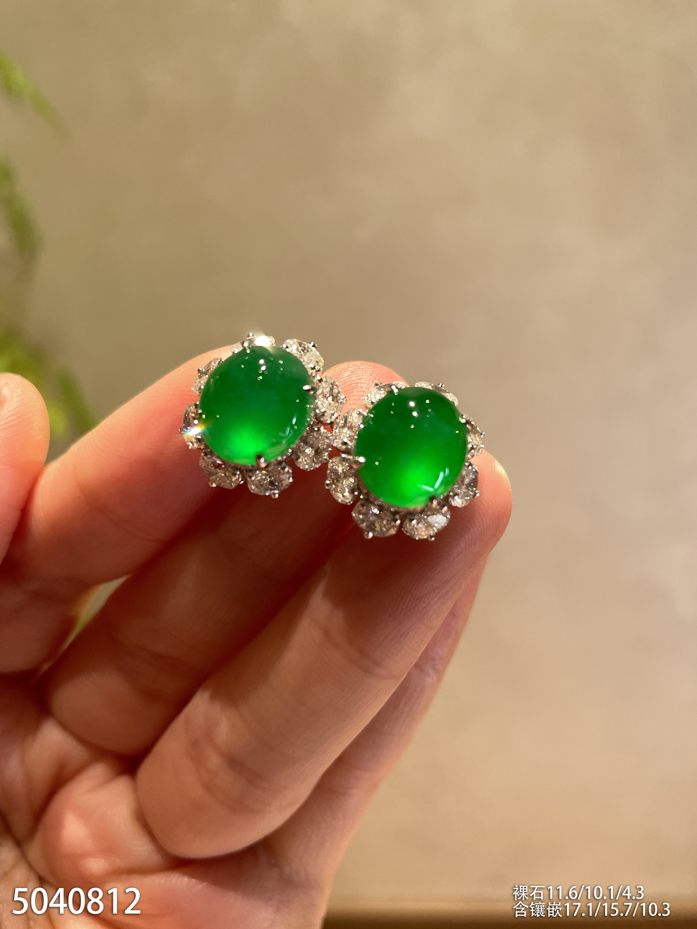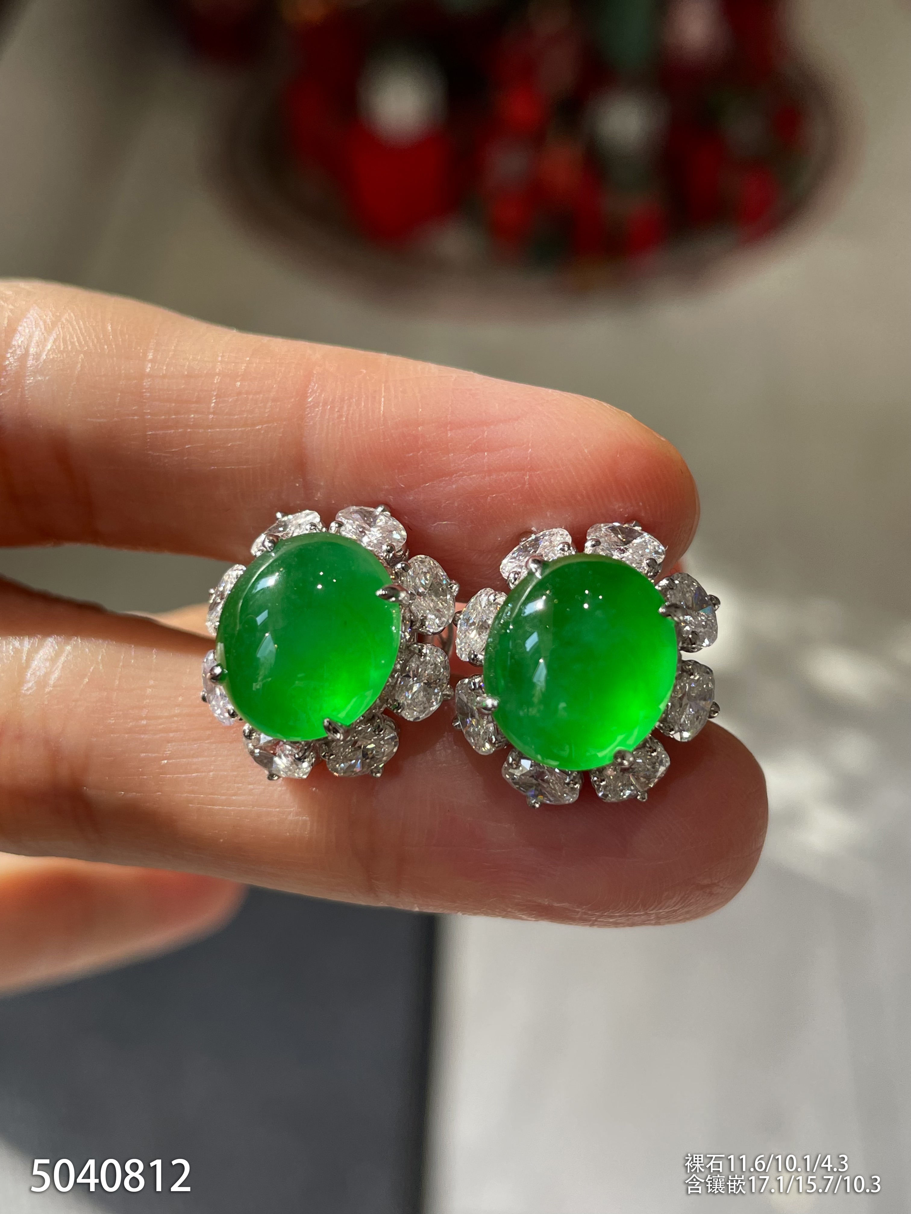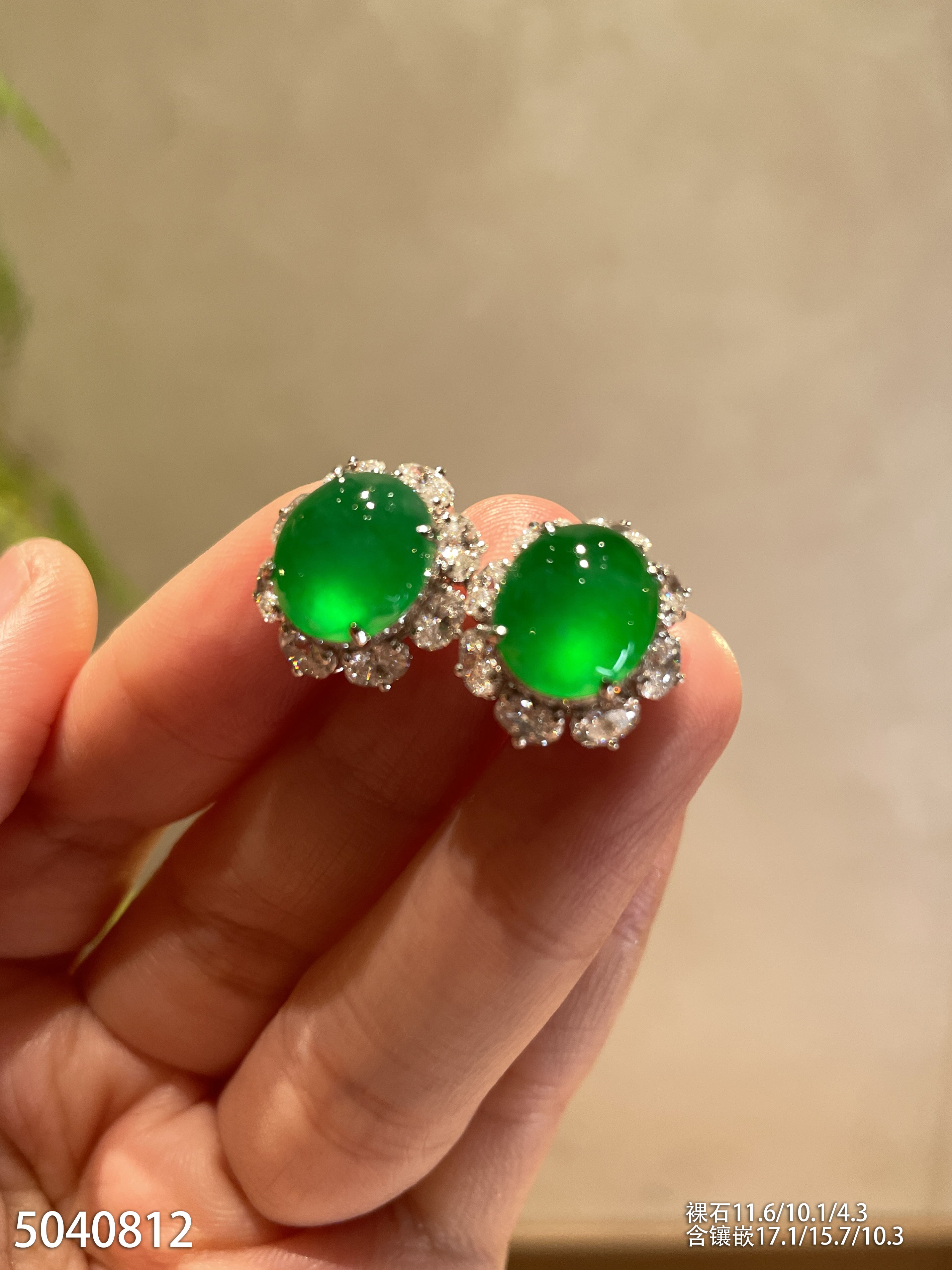 玻璃种艳绿蛋面耳钉【5040812】具体价格微信咨询