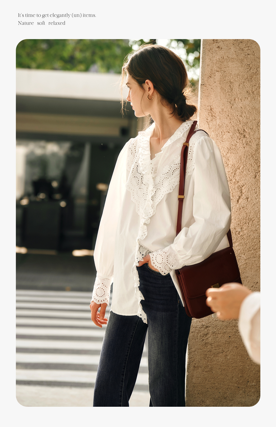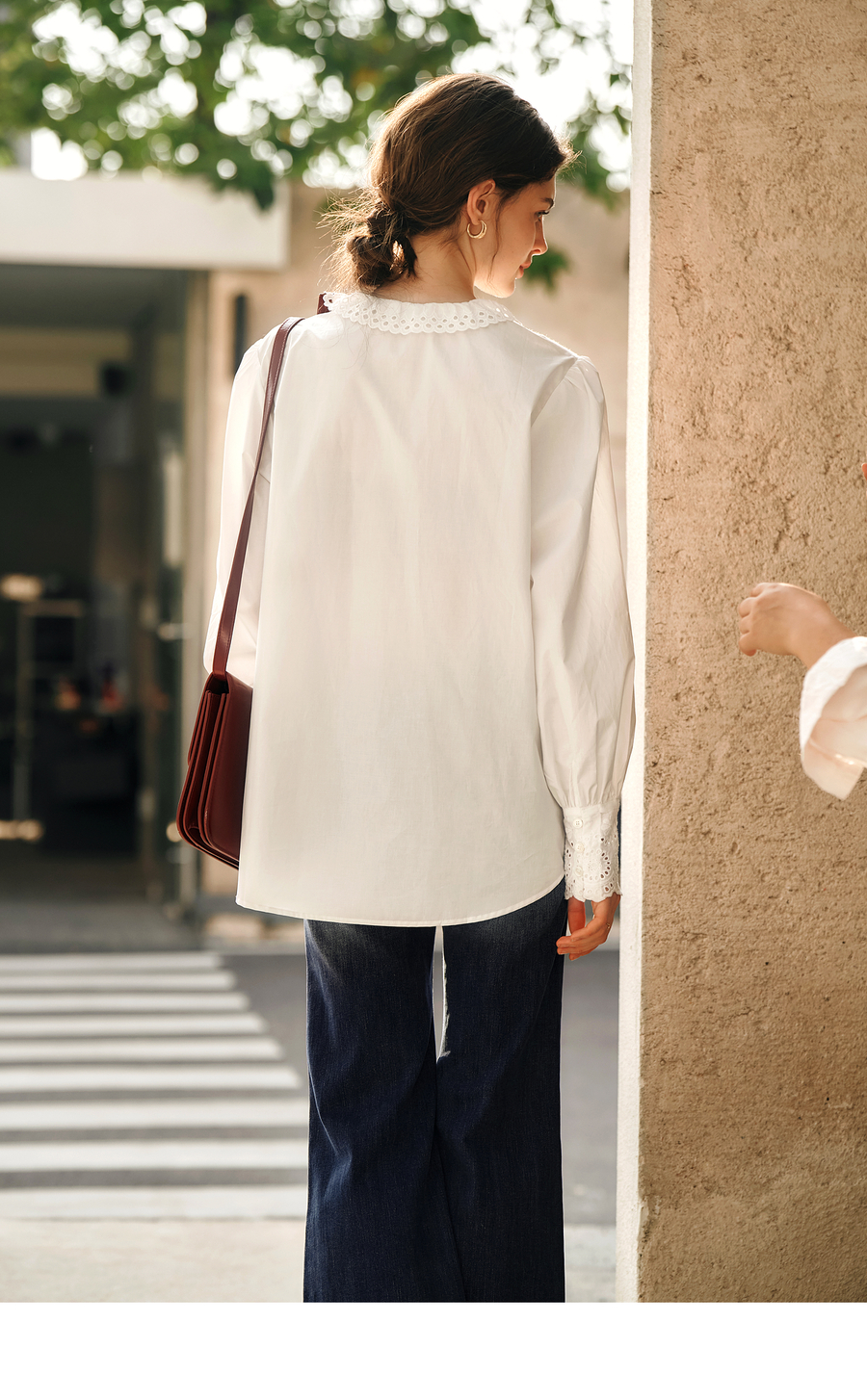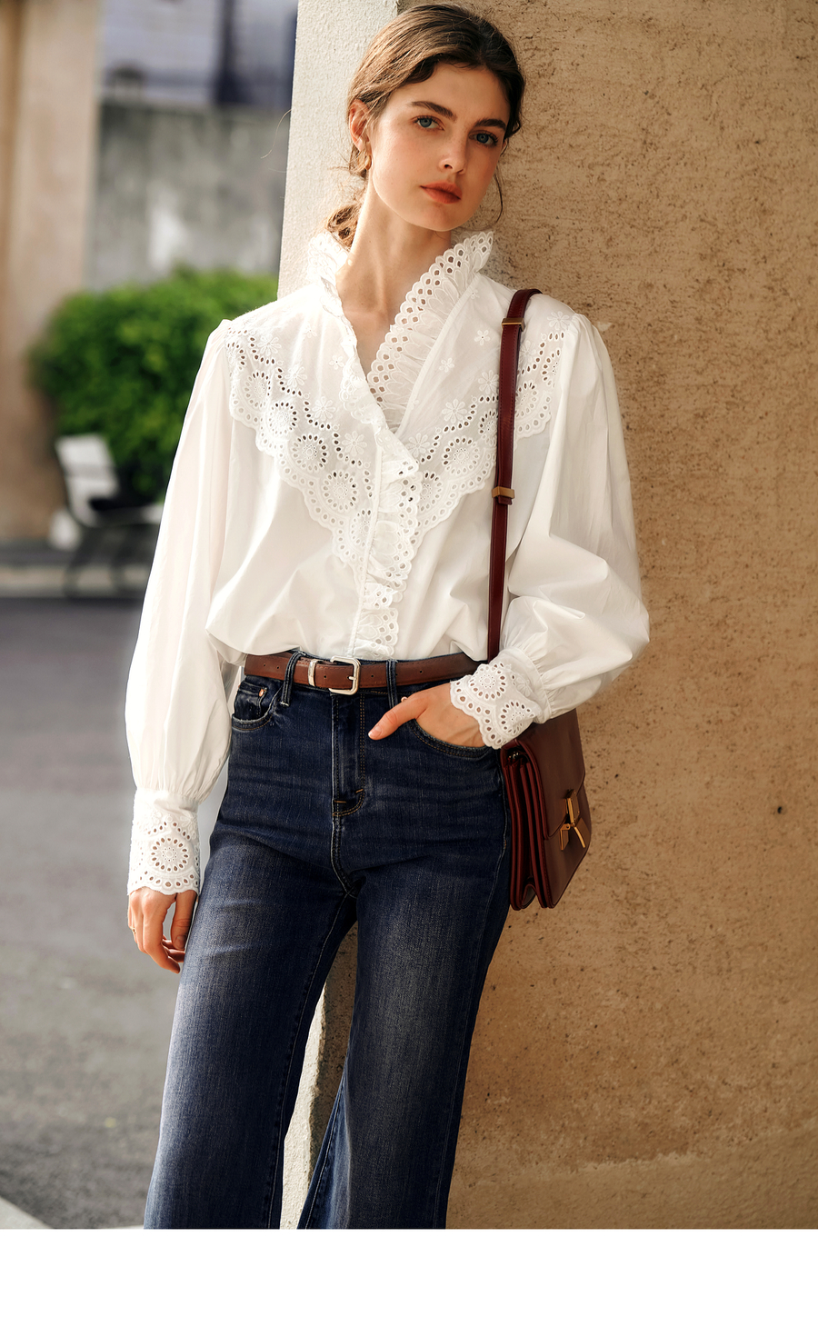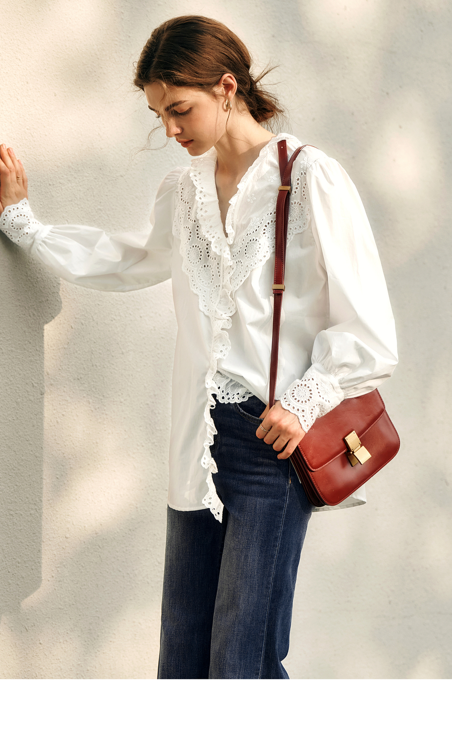 OLrain欧芮儿法式白色衬衫女冬季2024年新款荷叶领刺绣镂空衬衣
