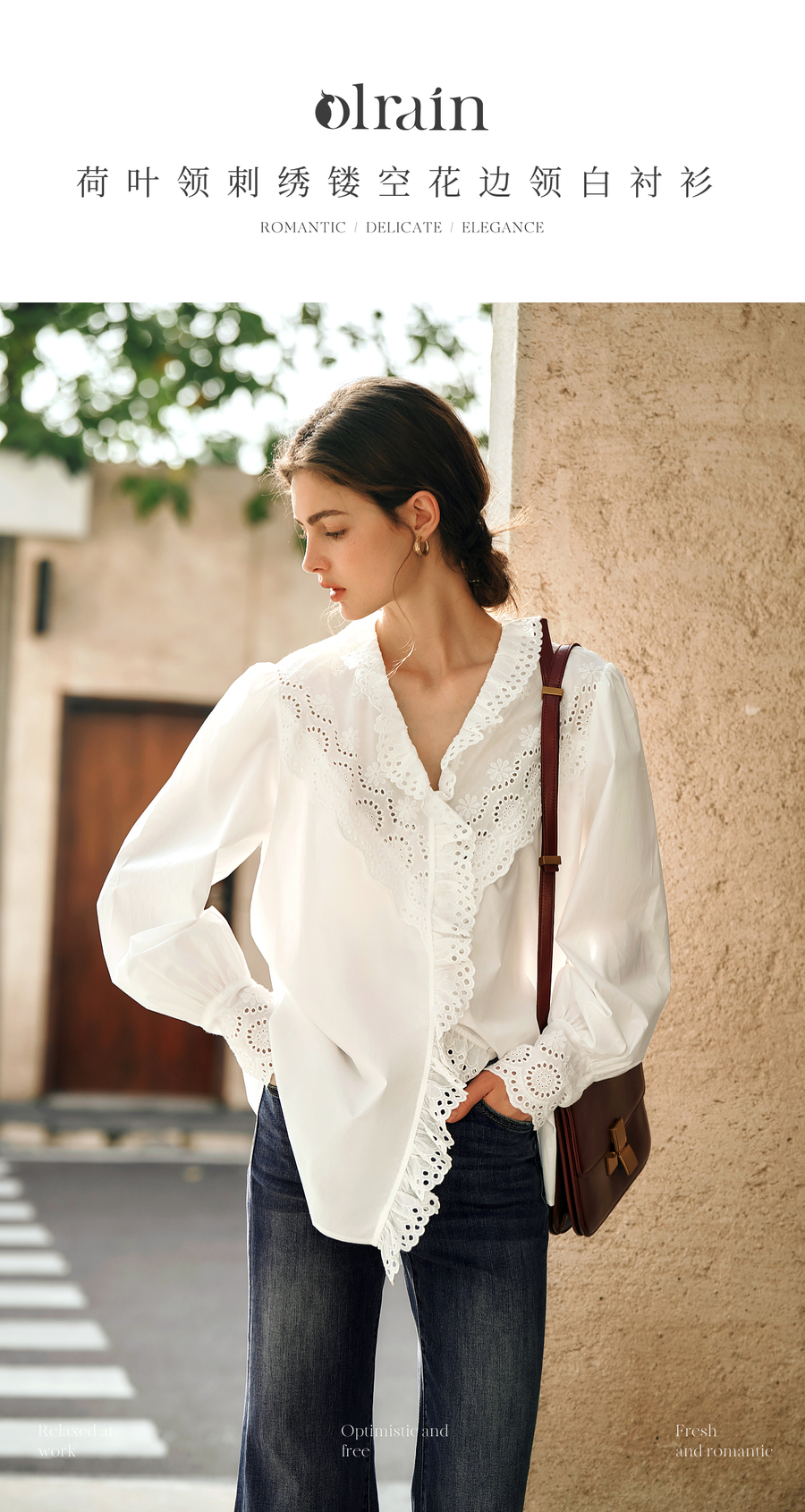 - “精致”是欧芮儿olrain品牌文化的核心,欧芮儿认为,精致的女人,不但要外在动人,更要内在迷人,内外兼修,有魅力、有气质、有内涵,自信而不自傲,优雅而不矫揉,自有万种风情而不轻浮,更不故作矜持。