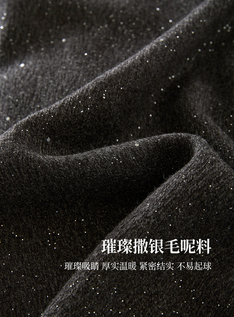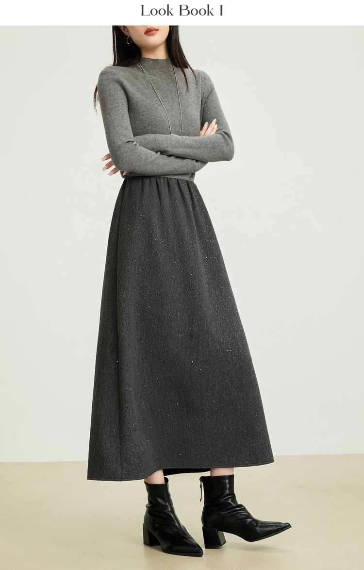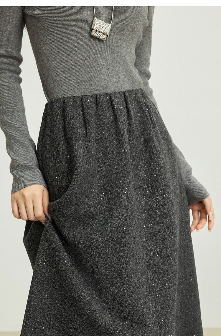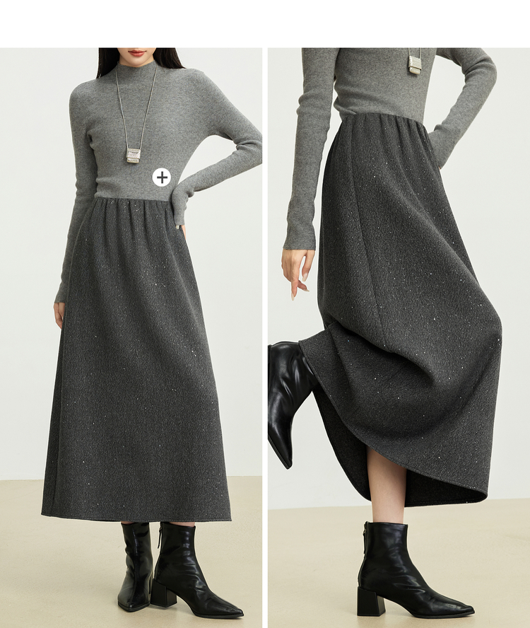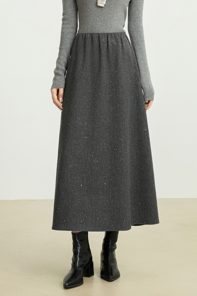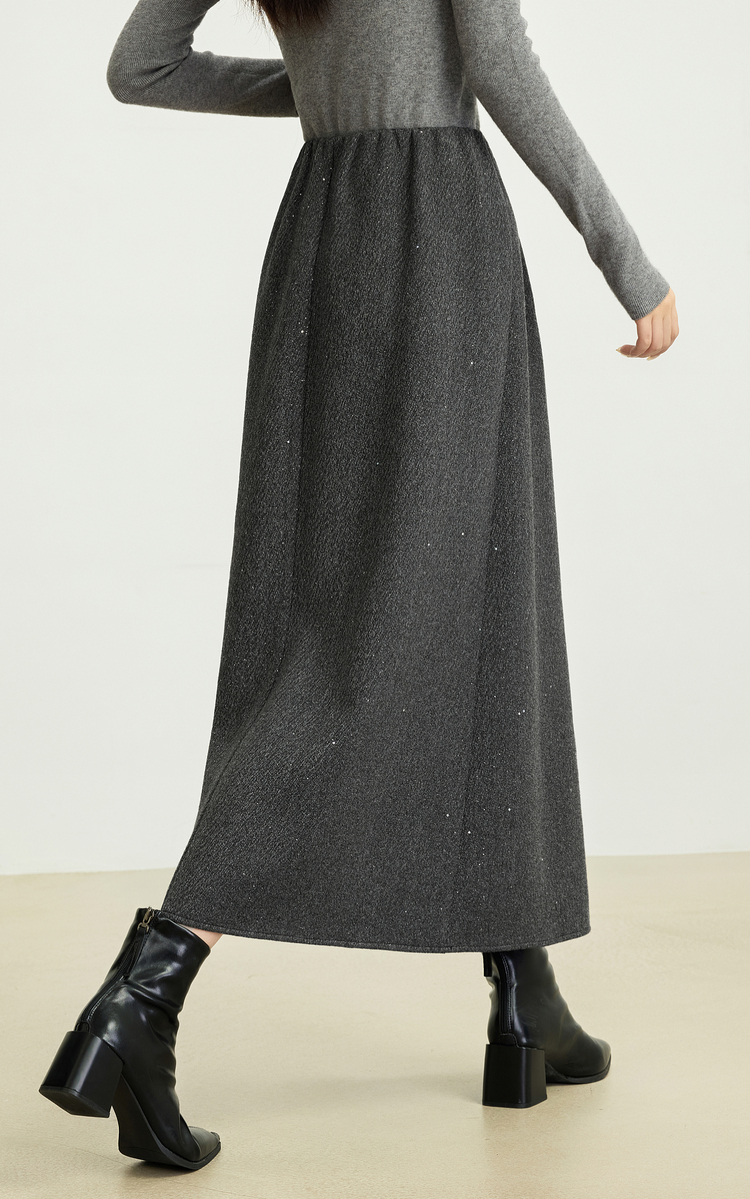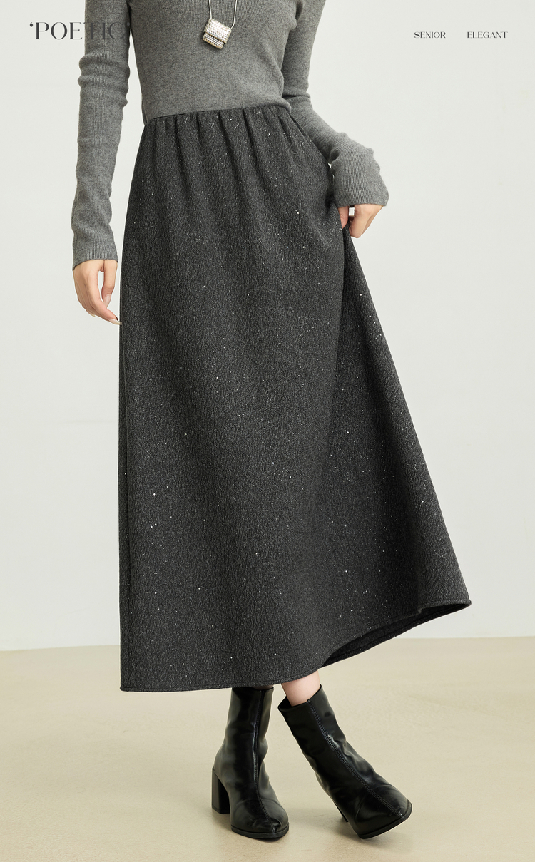 【12/03新品】熙世界灰色亮丝毛呢半身裙女2025秋冬新款高腰梨型身材a字长裙子