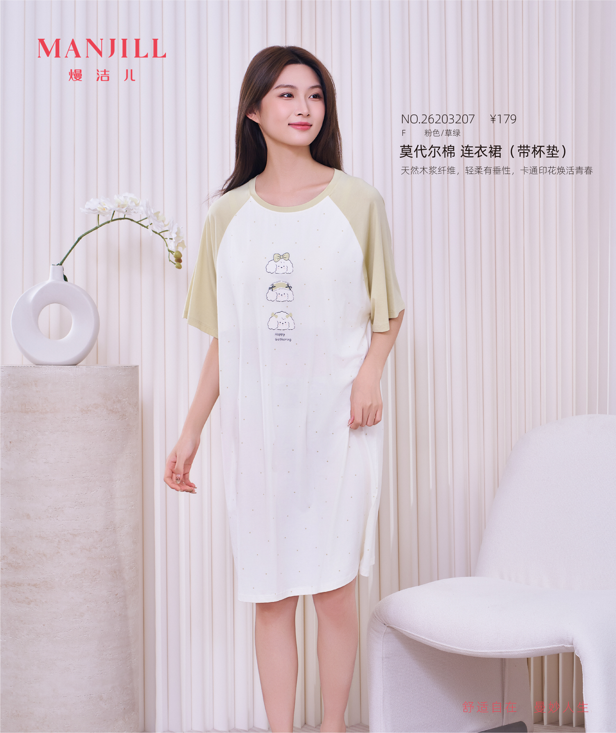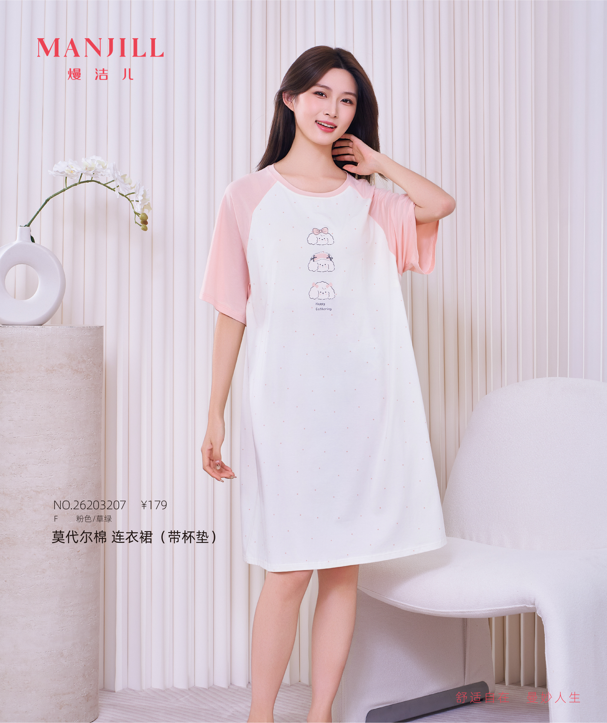 【商场同款】熳洁儿 带杯垫莫代尔棉连衣裙家居睡裙撞色可爱26203207