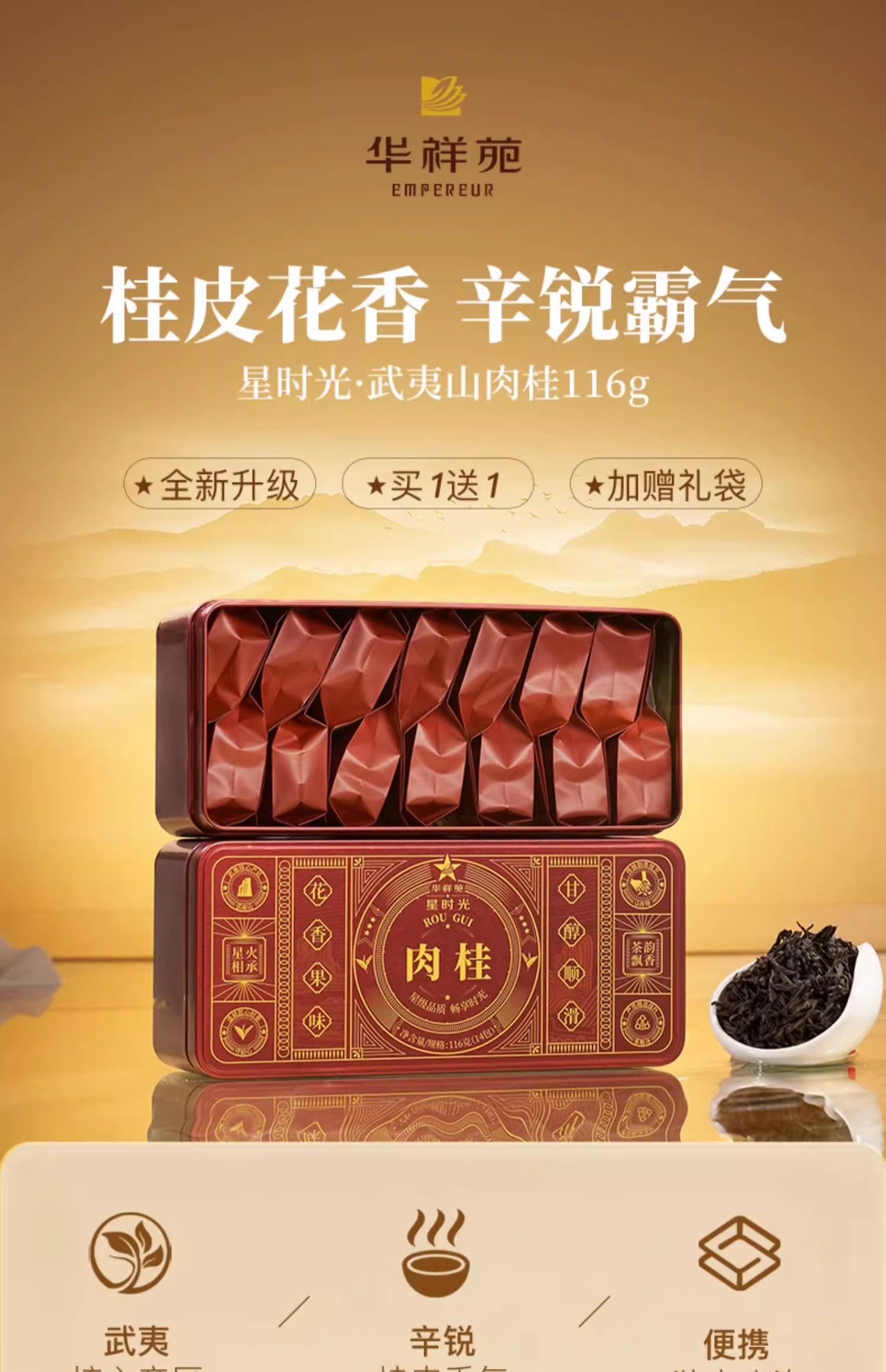 华祥苑肉桂 星时光武夷山肉桂岩茶乌龙茶116g*2盒