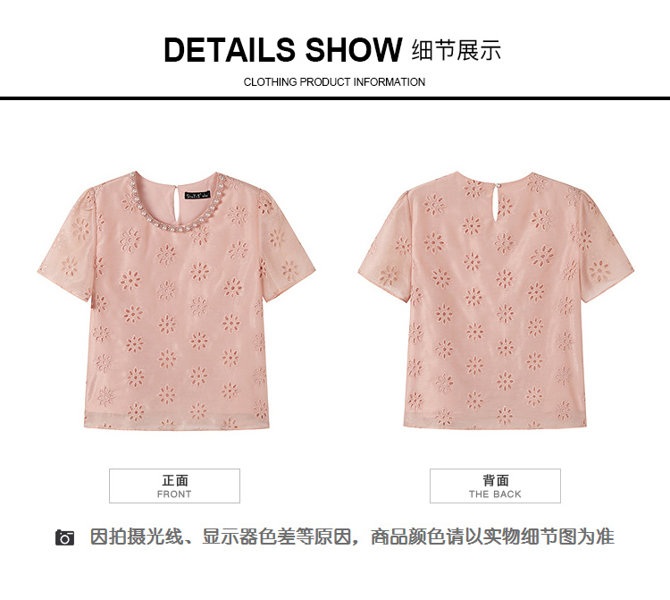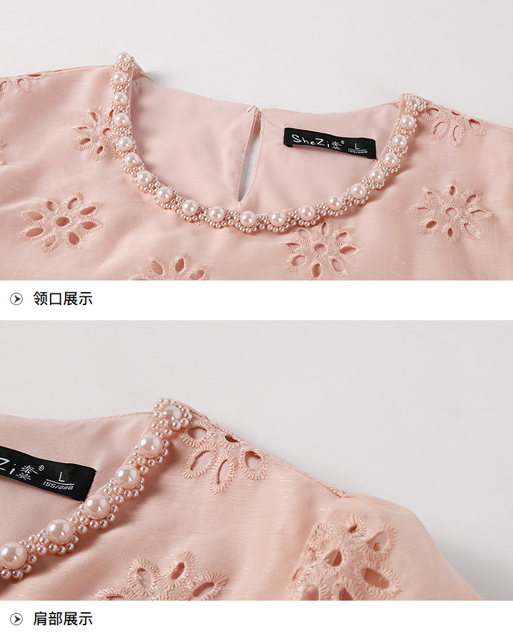 奢姿大码女装2026夏季镂空蕾丝气质上衣胖妹妹串珠圆领时尚T恤9962254600