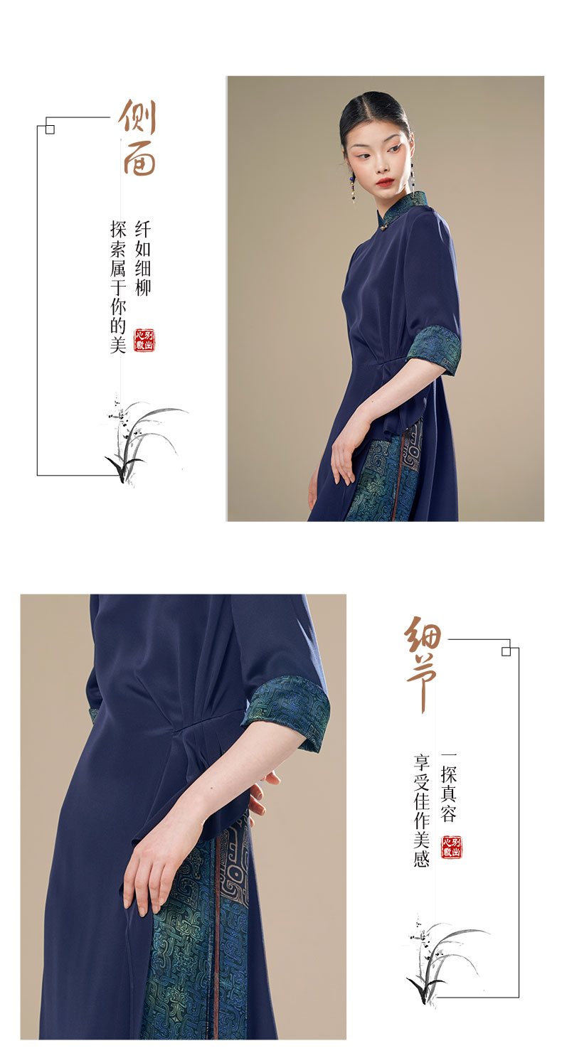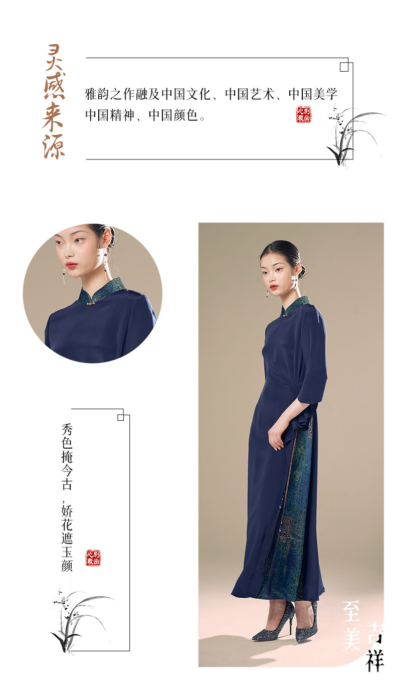 吉祥衣家新中式国风蚕桑丝裙子气质修身女装凤袅袅连衣裙