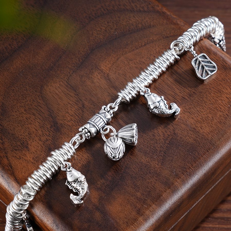 子佩集S925银【扇舞铃音】手串【TSB0001-53】纯银手链仿古鱼扇子莲蓬铃铛可响钱串腰缠万贯盘缠盘缠2503