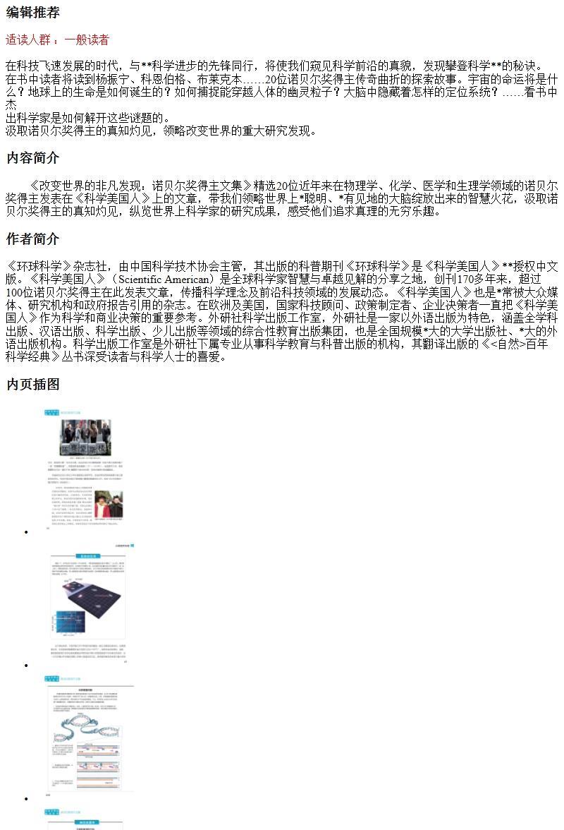 改变世界的非凡发现:诺贝尔奖得主文集(科学美国人精选)