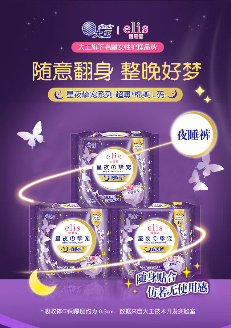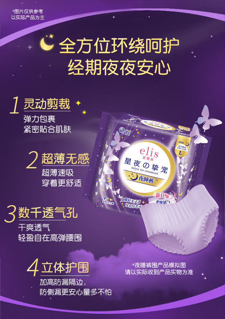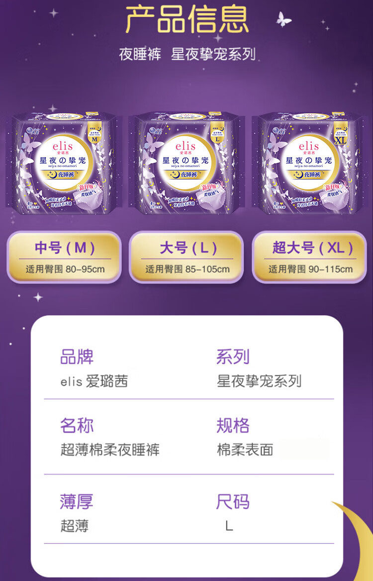 大王elis爱璐茜 星夜挚宠超薄棉柔安睡裤L码(4片/包)