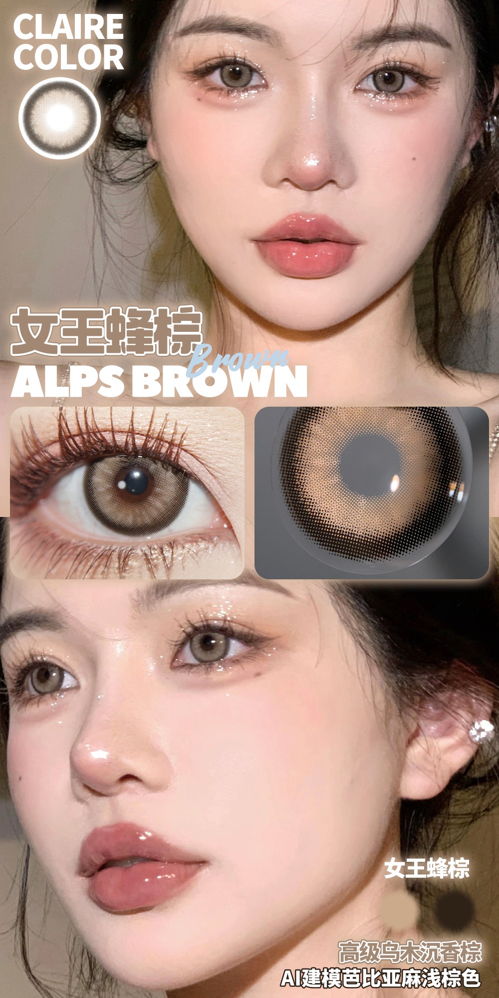 【小红书推荐款】clairecolor,女王蜂棕,年抛/直径14.5/着色13.9,138/一副,198/三副,12月12号结束,最高度数有1000度