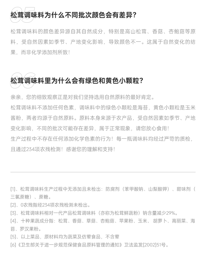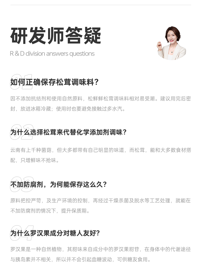 选用香格里拉松茸等10种果蔬提味增鲜,代替鸡精和盐调味;