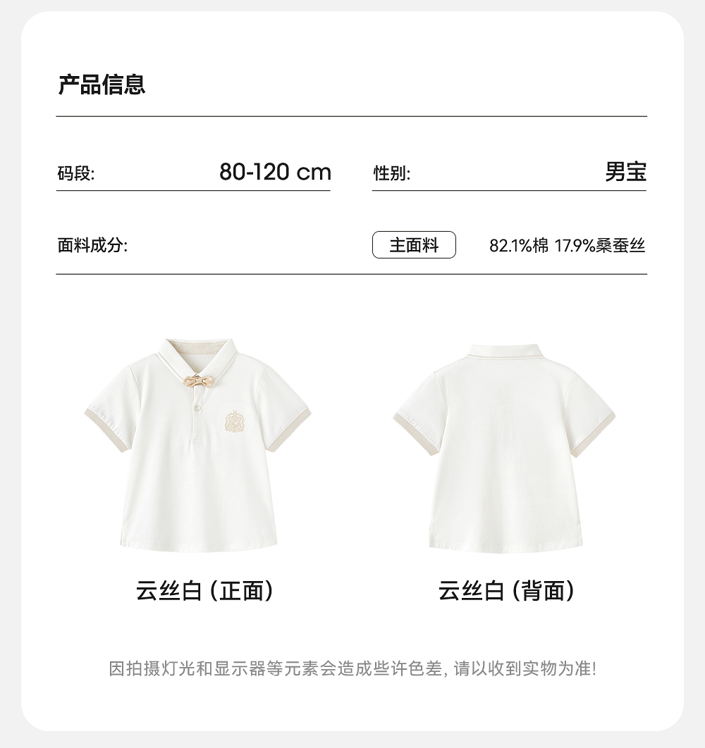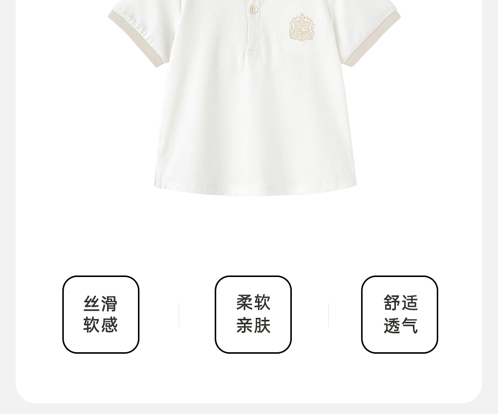 【高定系列】英氏男童短袖T恤夏季纯色桑蚕丝上衣2025新款POLO衫YRTCJ2R035A