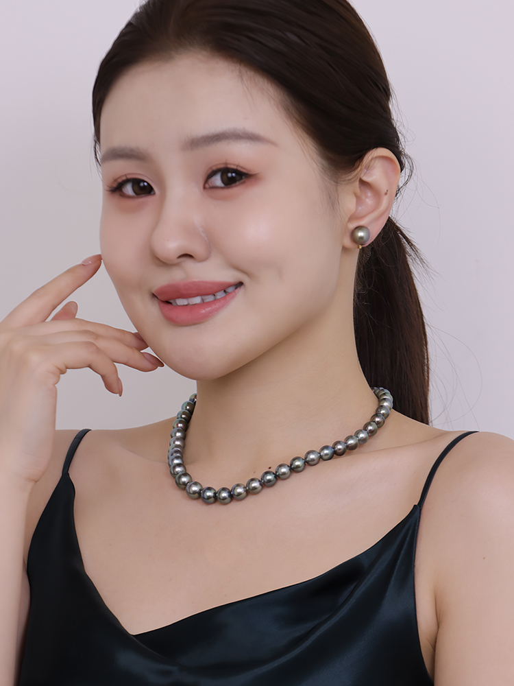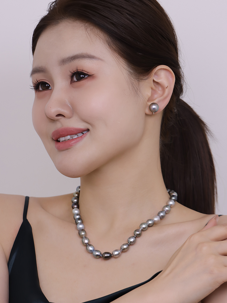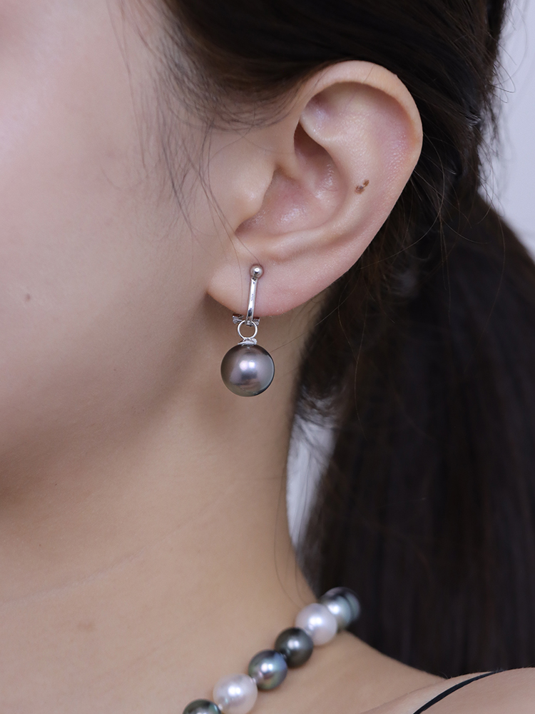 【挚友限定】(经典款/挂珠款)18K金大溪地铂金灰珍珠耳夹