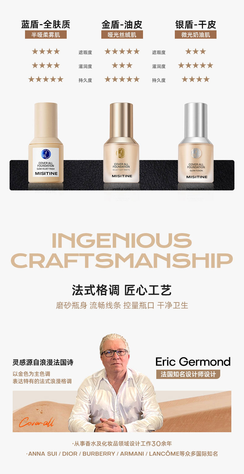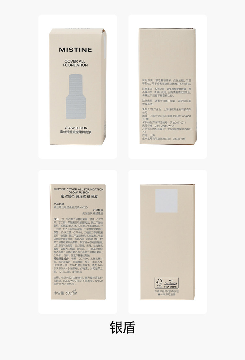 mistine粉底液 小蓝盾/小银盾/小金盾 24小时h遮瑕保湿持久控油干皮混油蜜丝婷