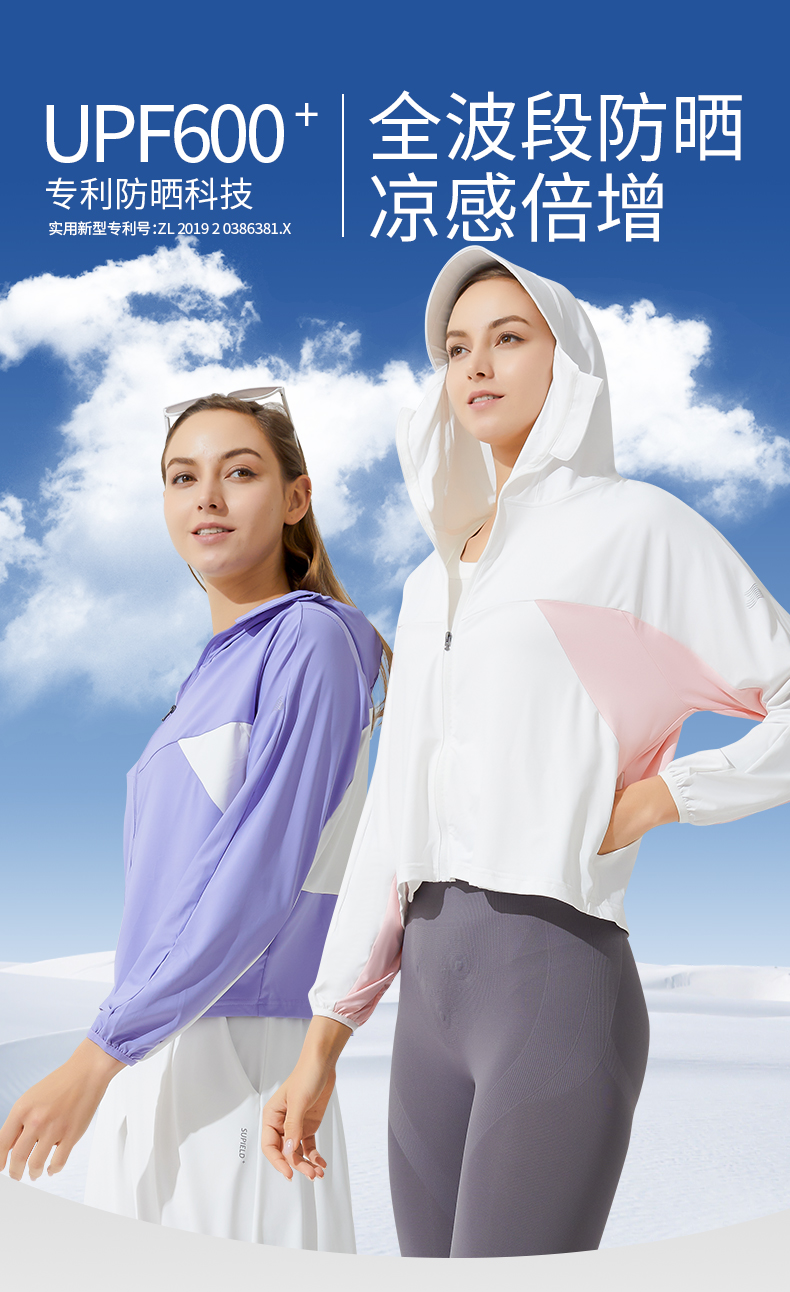 Supield素湃拼接防晒衣女夏季薄款防紫外线连帽护颈防晒服皮肤衣