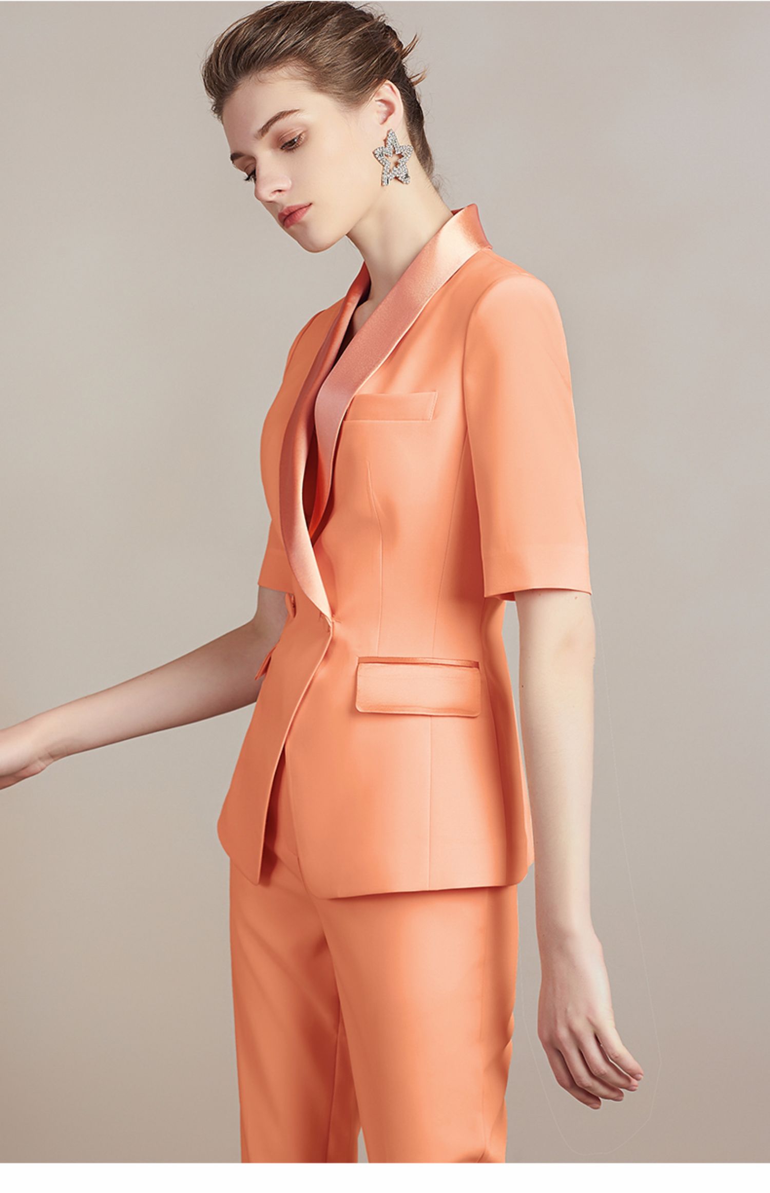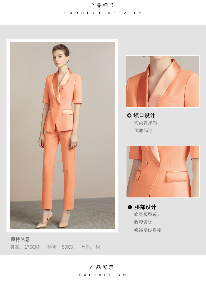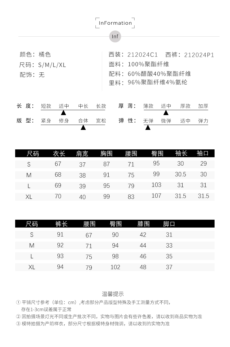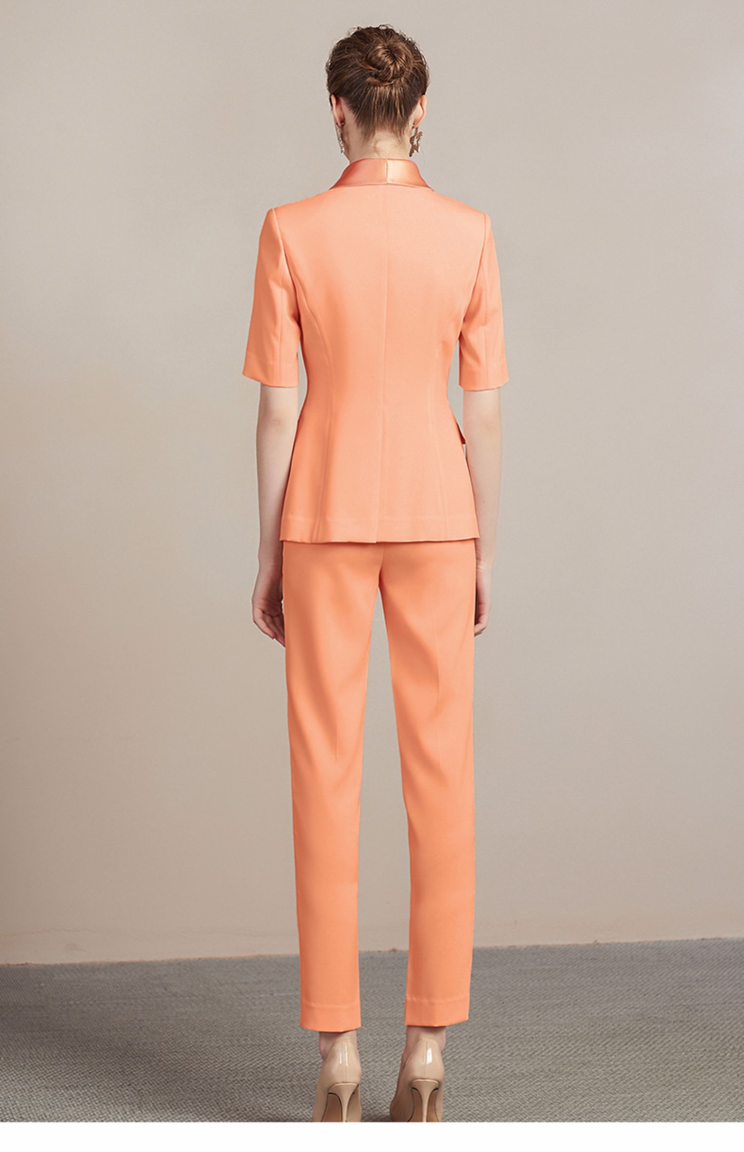 IWY/橘色欧美时尚女装名媛修身显瘦短袖职业装套裤通勤ol气质 212024C1+P1
