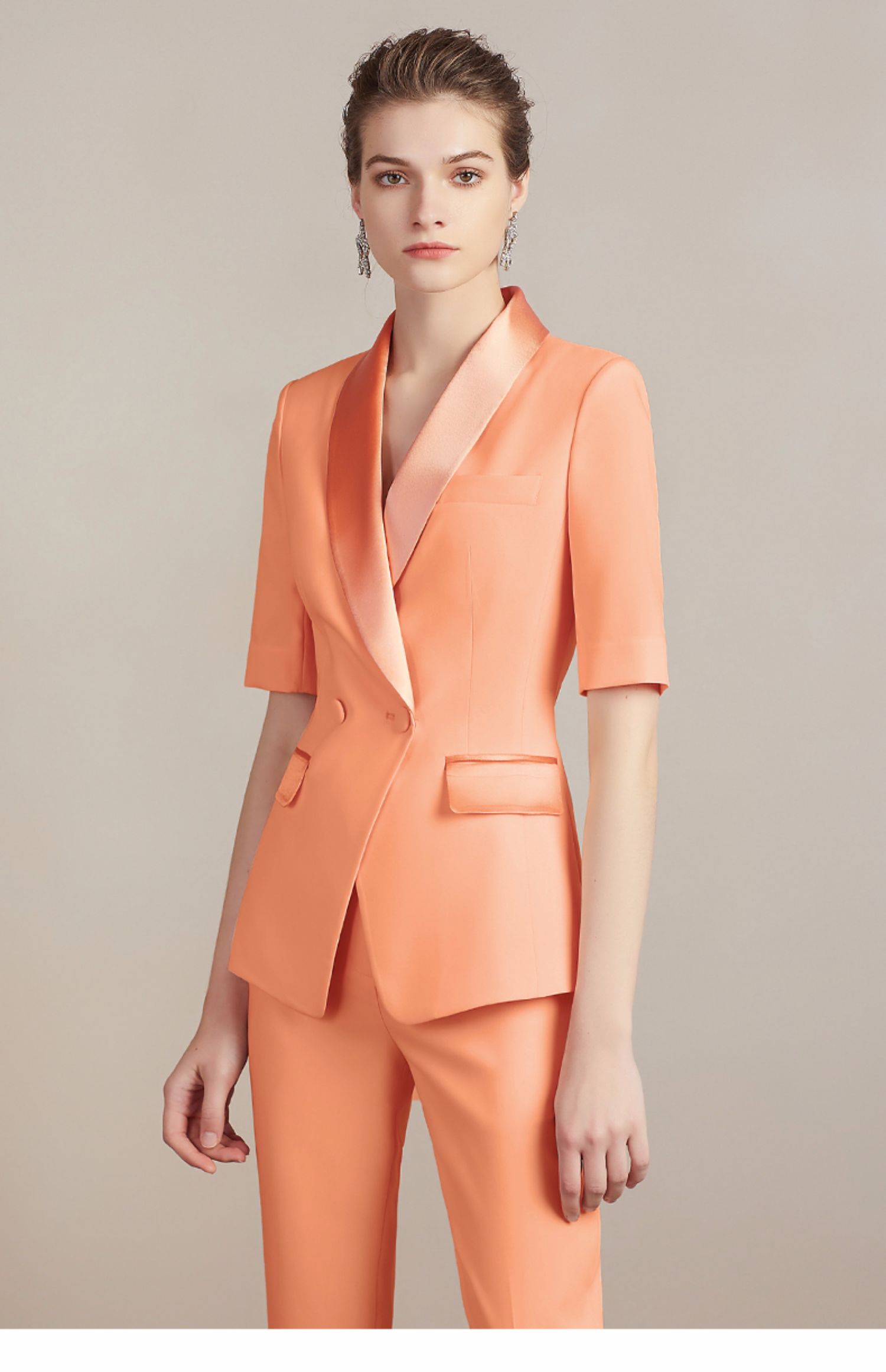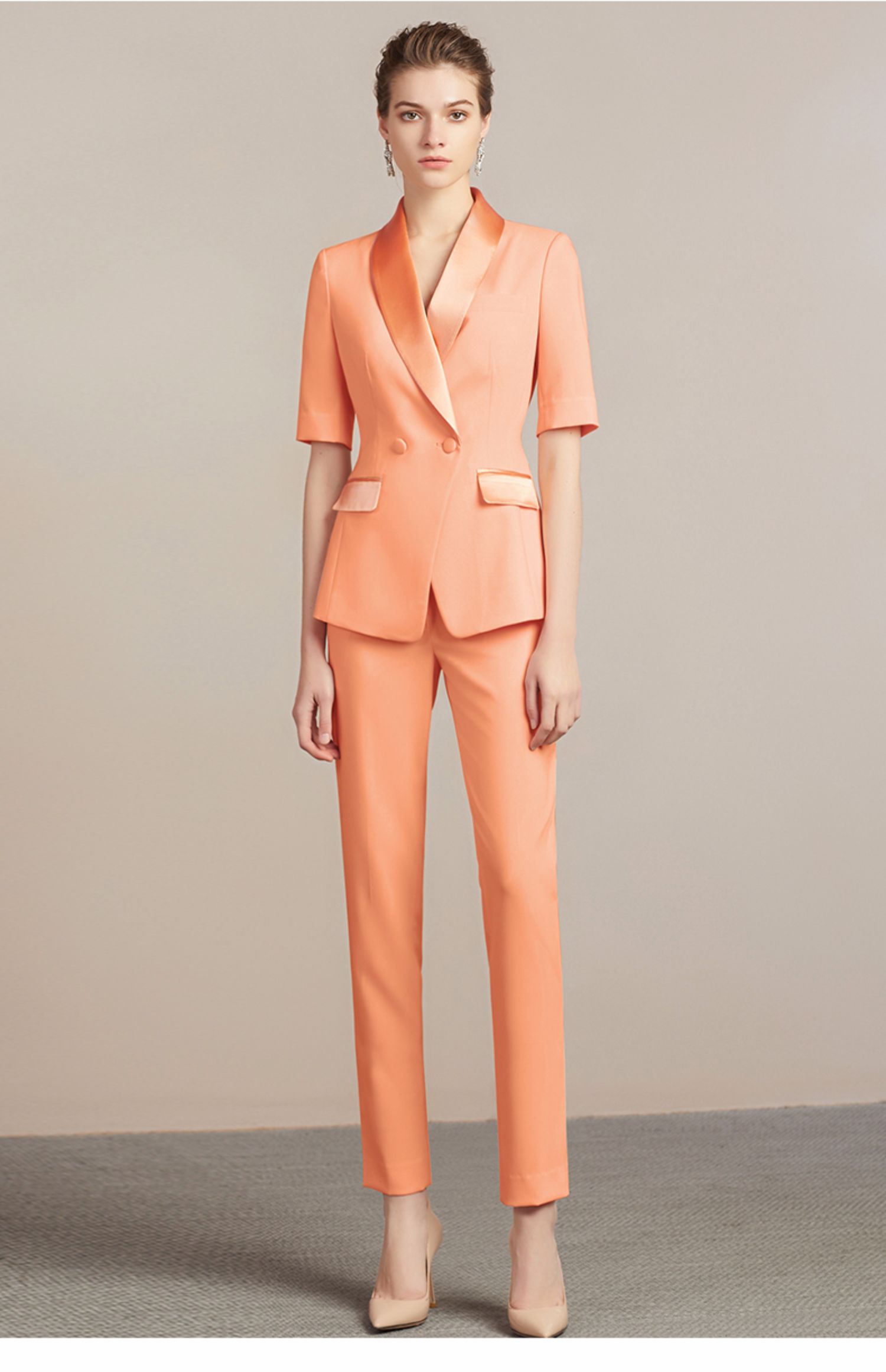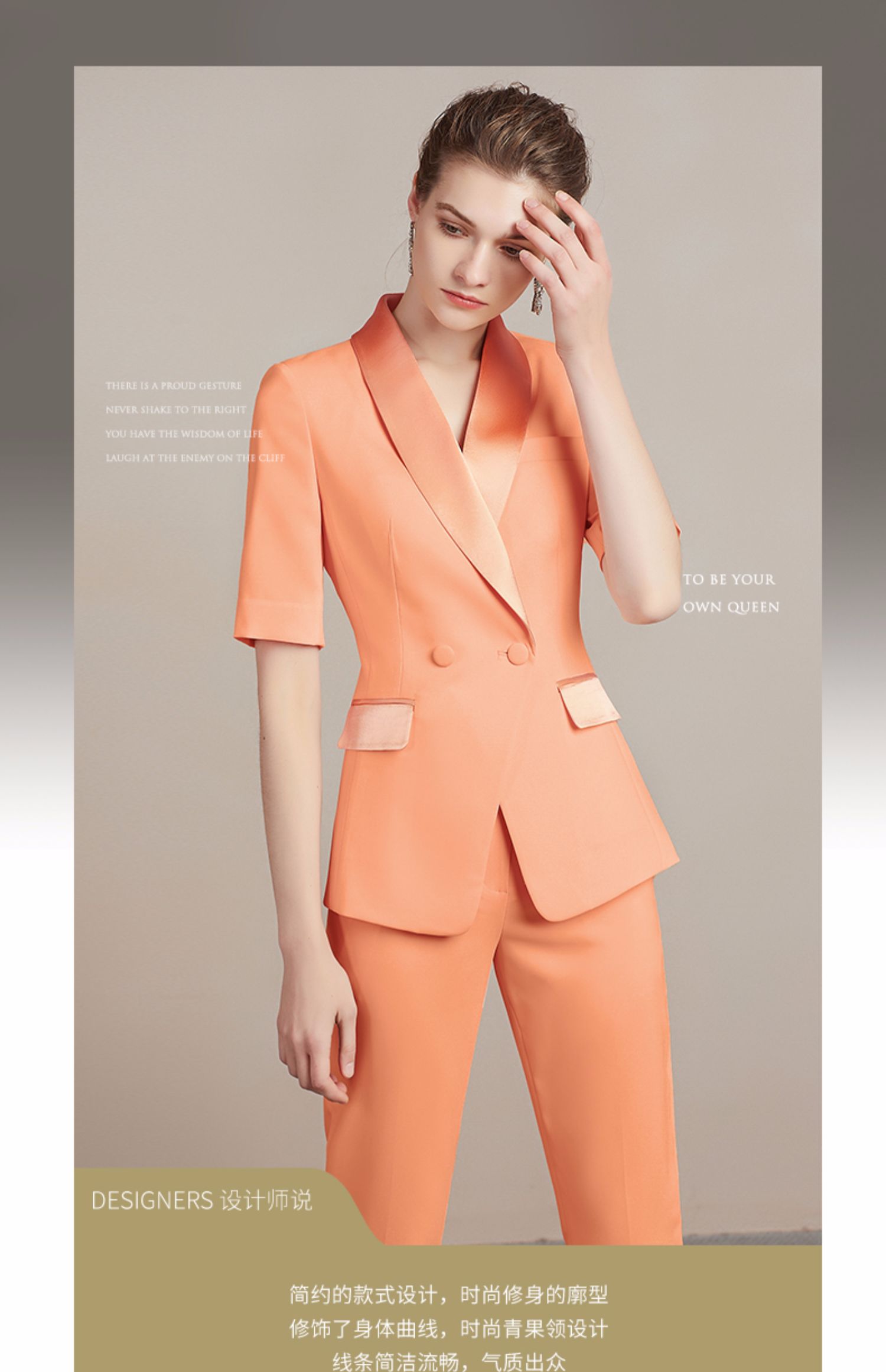 IWY/橘色欧美时尚女装名媛修身显瘦短袖职业装套裤通勤ol气质 212024C1+P1