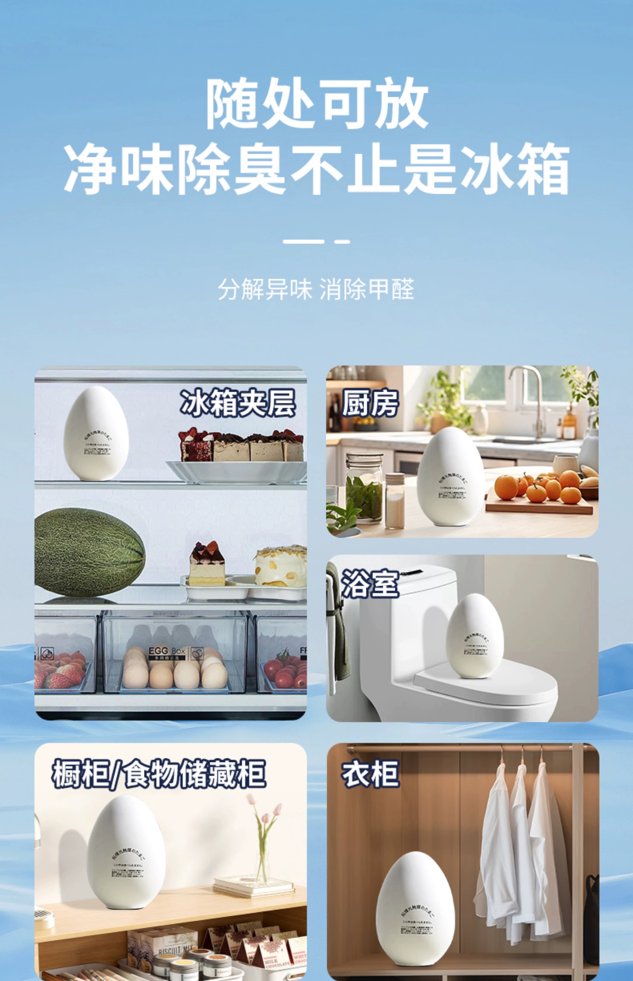 【冰箱除味抑菌欧壳蛋】 樱辉冰箱除味剂保鲜杀菌抑菌除臭防霉家用专用去异味神器
