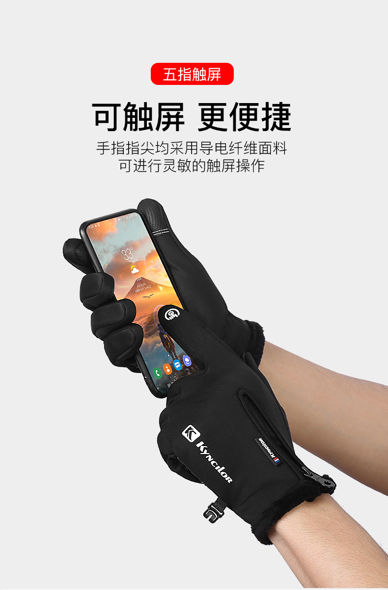 【秋冬季加绒 可触屏保暖手套】男女款可触屏 户外运动骑行防寒触屏手套 高密度防泼水