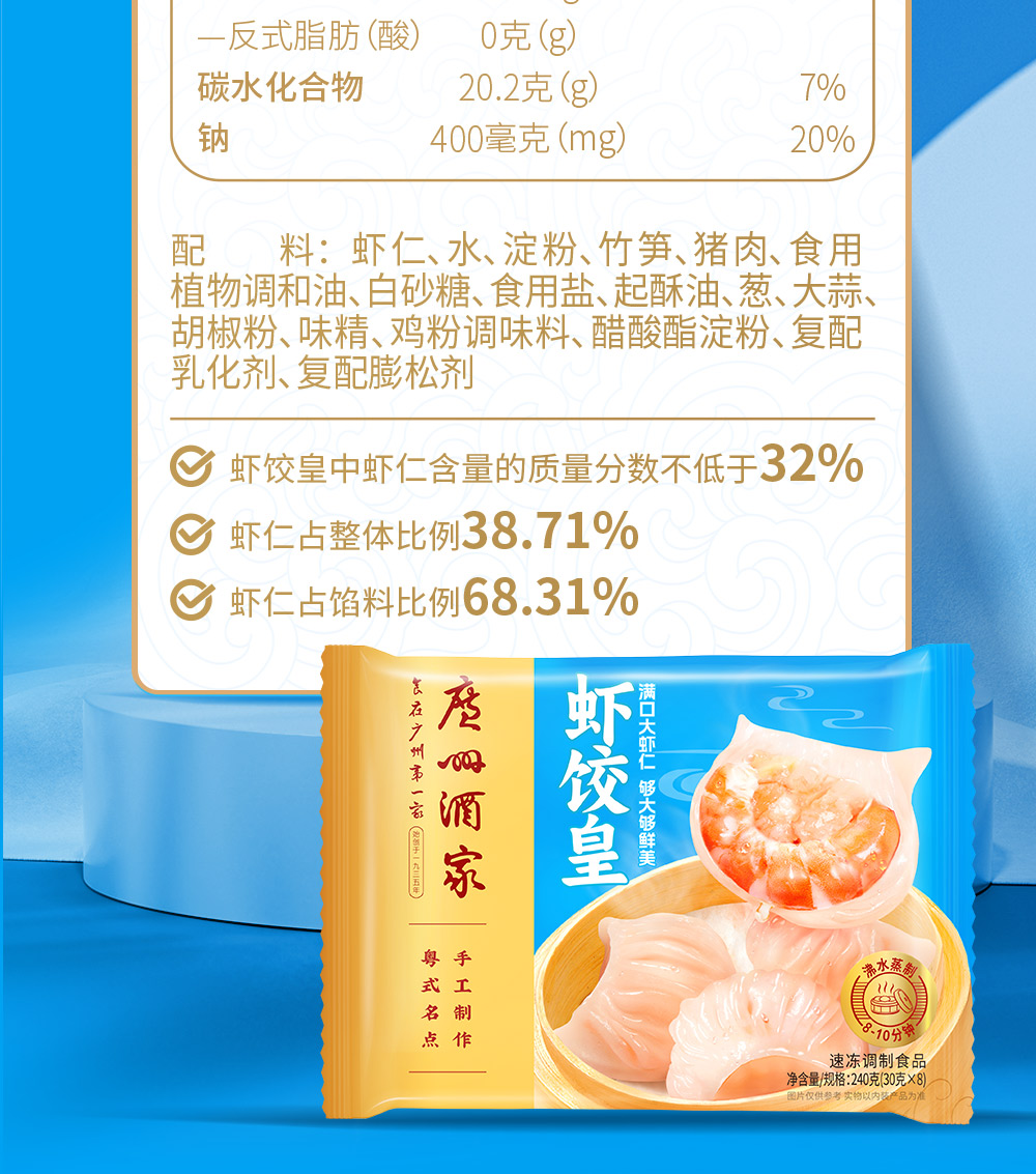广州酒家虾饺皇速冻食品水晶虾仁饺子广式早茶点心240g*2袋装