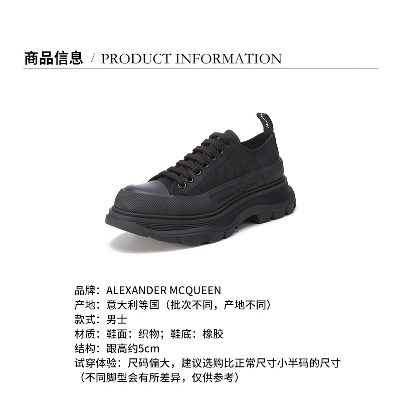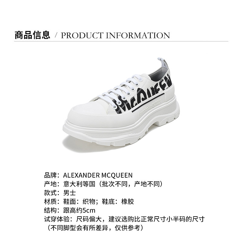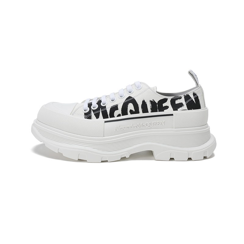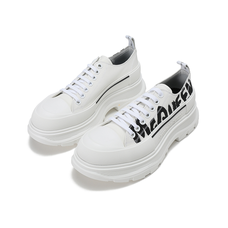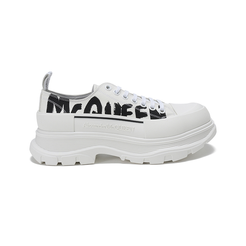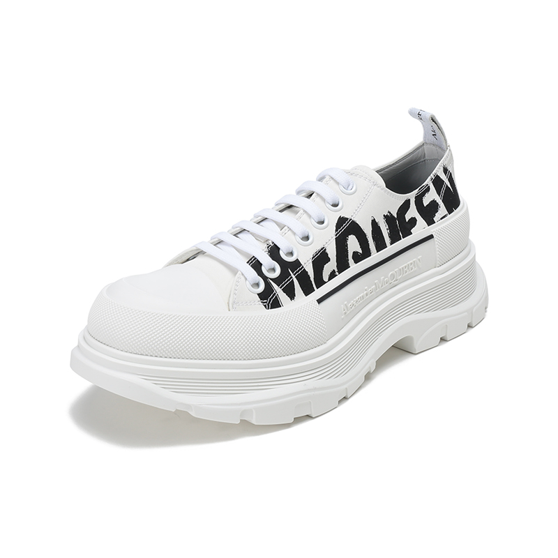 Alexander McQueen/亚历山大麦昆【22春夏新款】男士织物系带厚底休闲鞋涂鸦标志 682421 W4RQ2