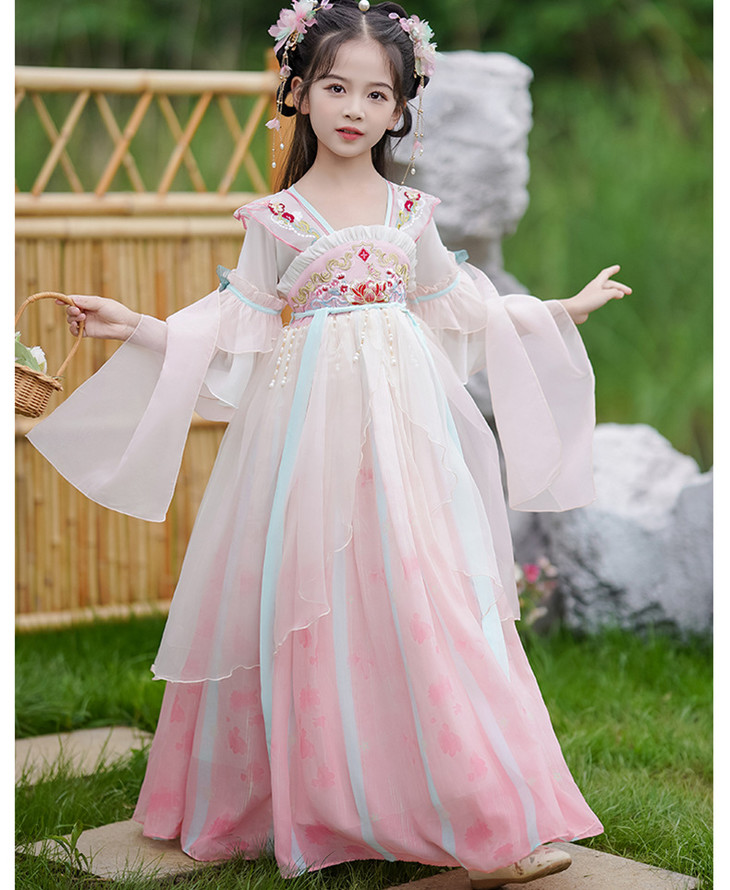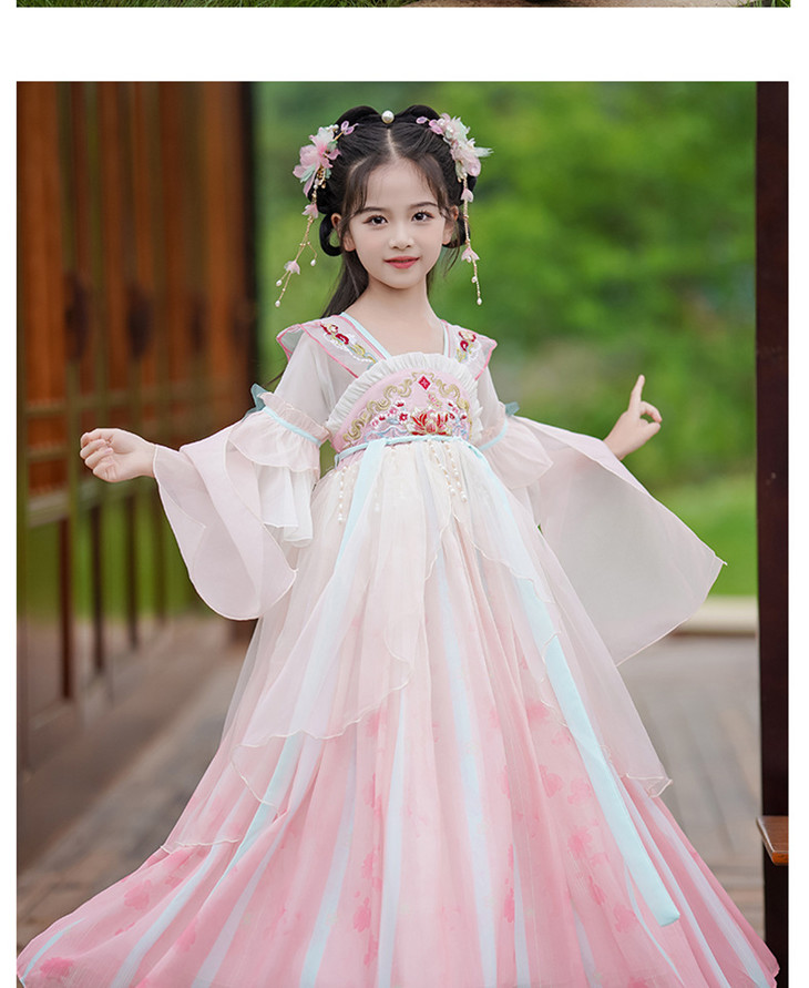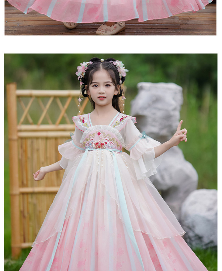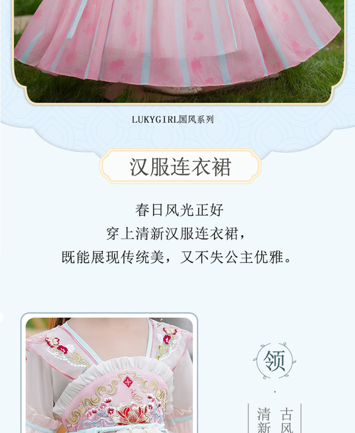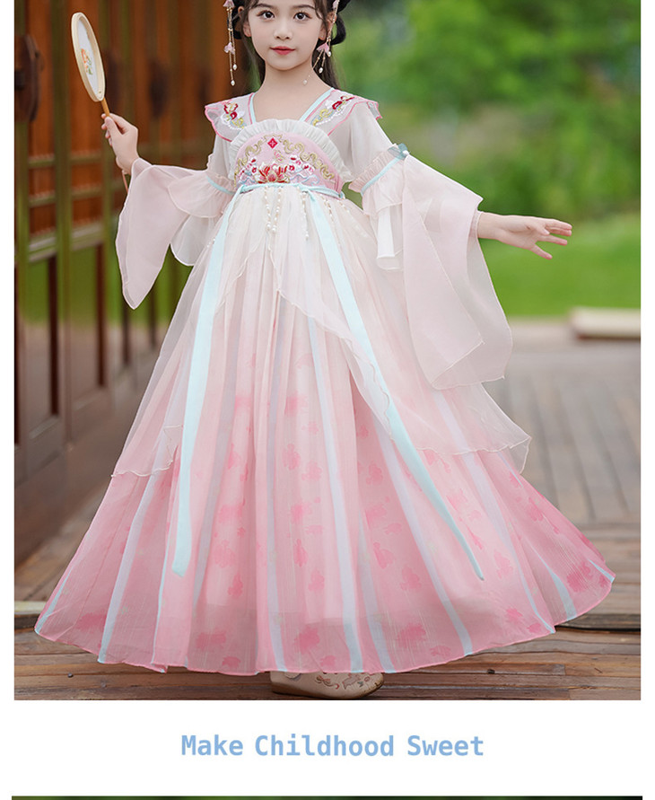 女童古装汉服夏款超仙中国风唐装刺绣公主裙LS-23P2318