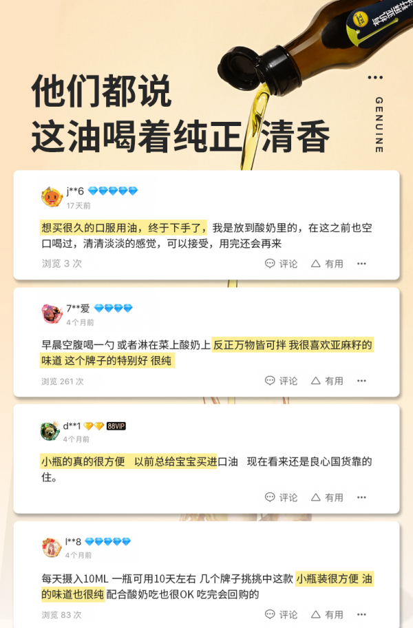 【出口品质】晟麦有机亚麻籽油100ml*5 小油瓶系列 补充omega-3