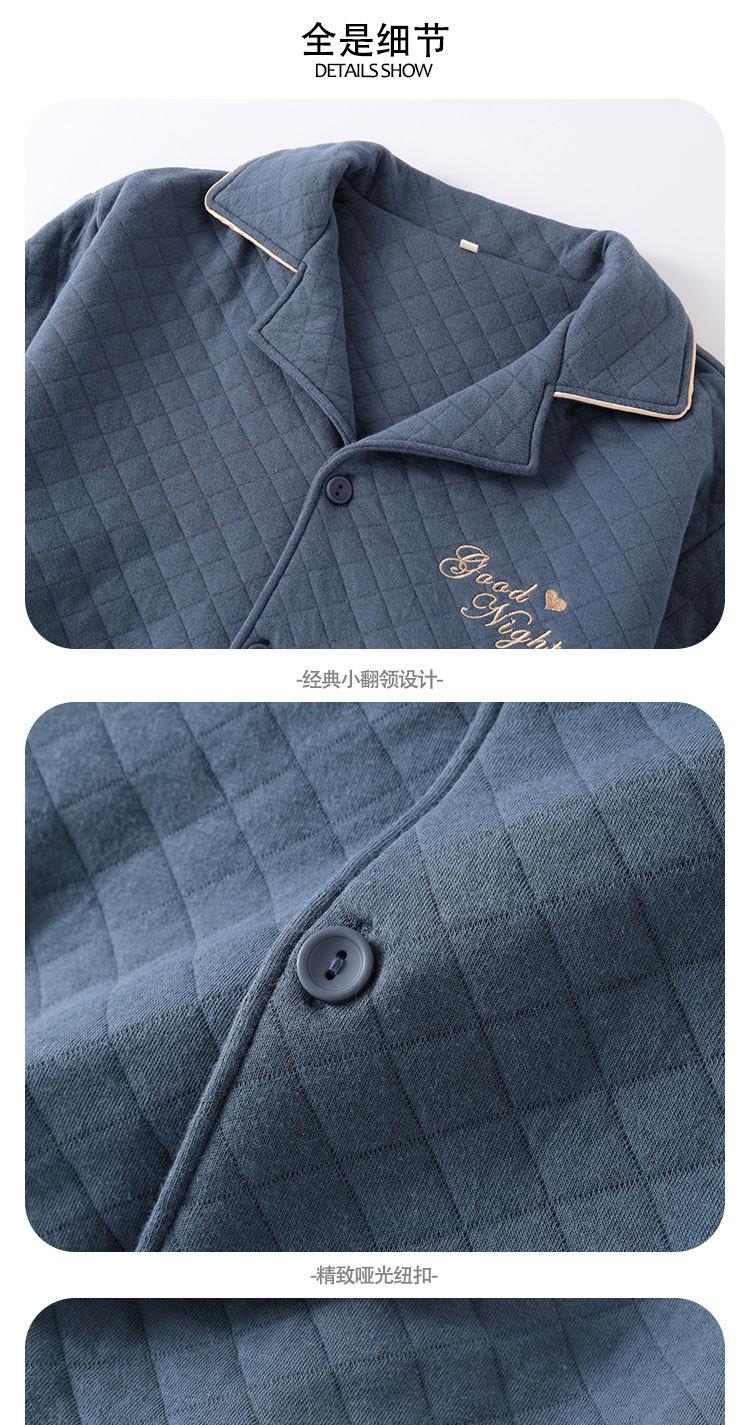 男士空气棉睡衣秋冬季三层夹棉长袖保暖可外穿家居服套装