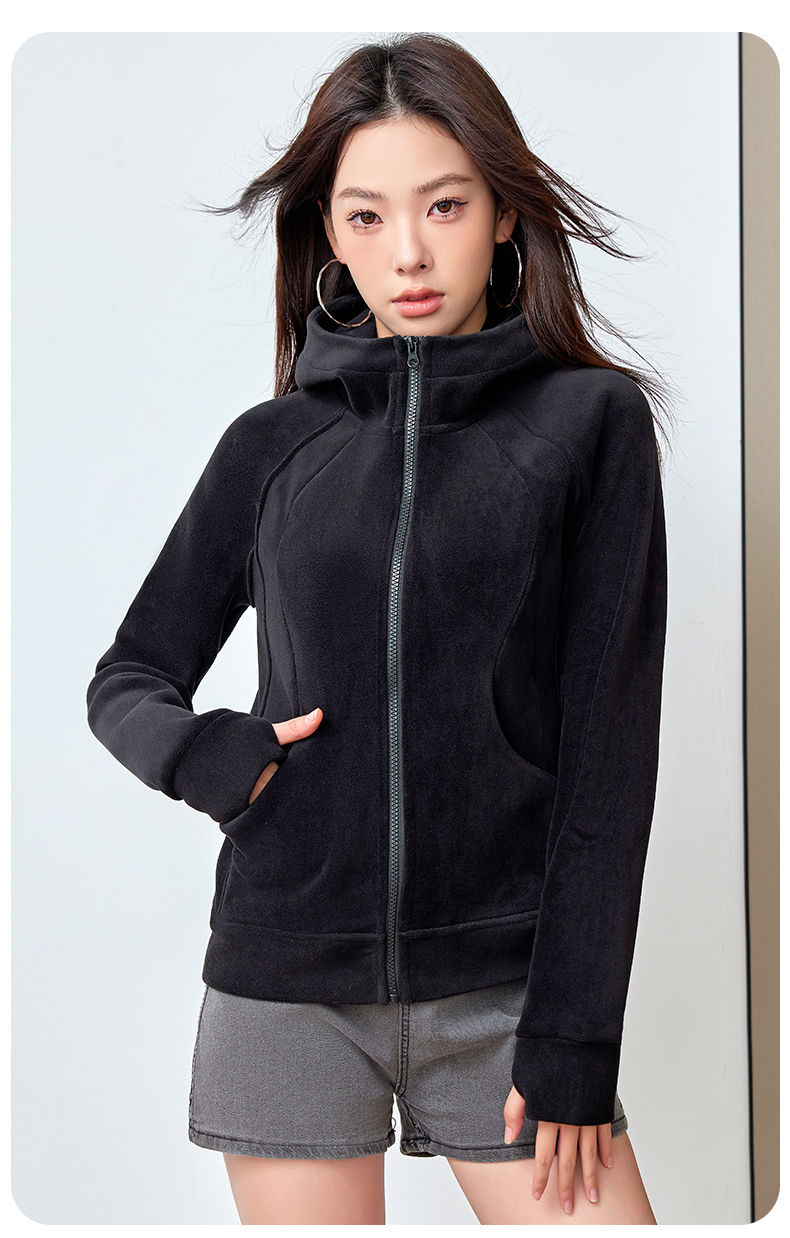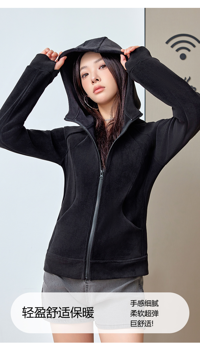 lulu同款 修身防风连帽卫衣 双面奥利绒 亲肤暖感 御寒锁温 保暖不显臃肿