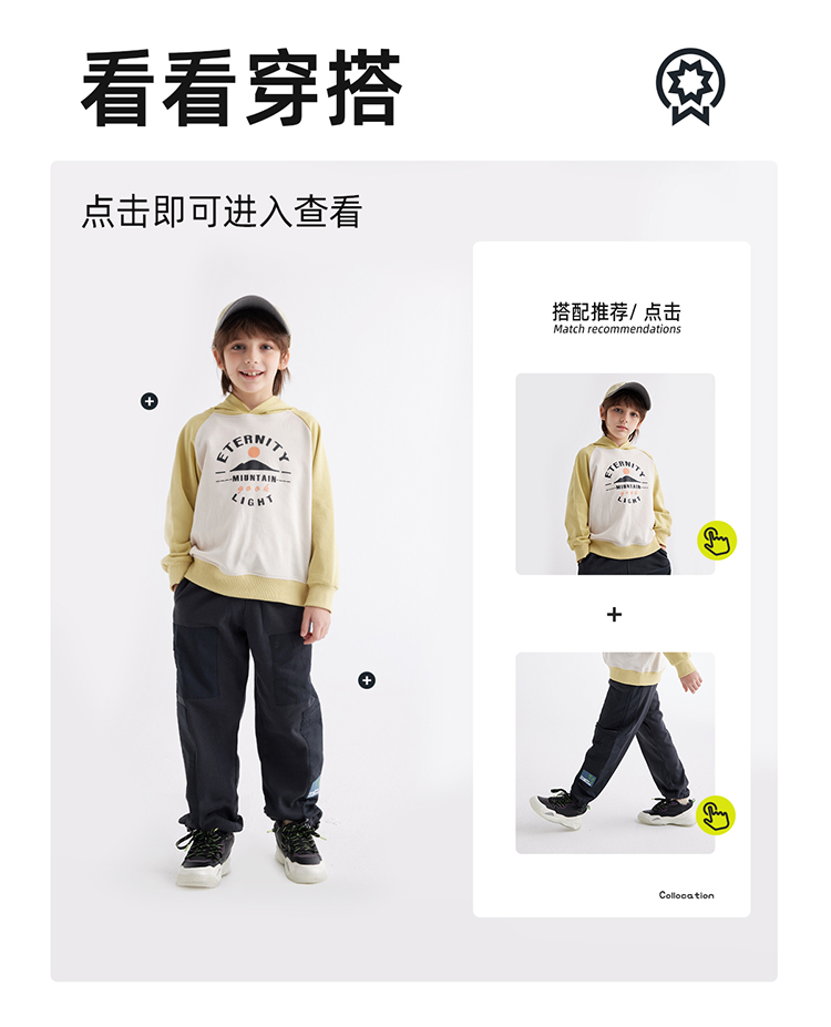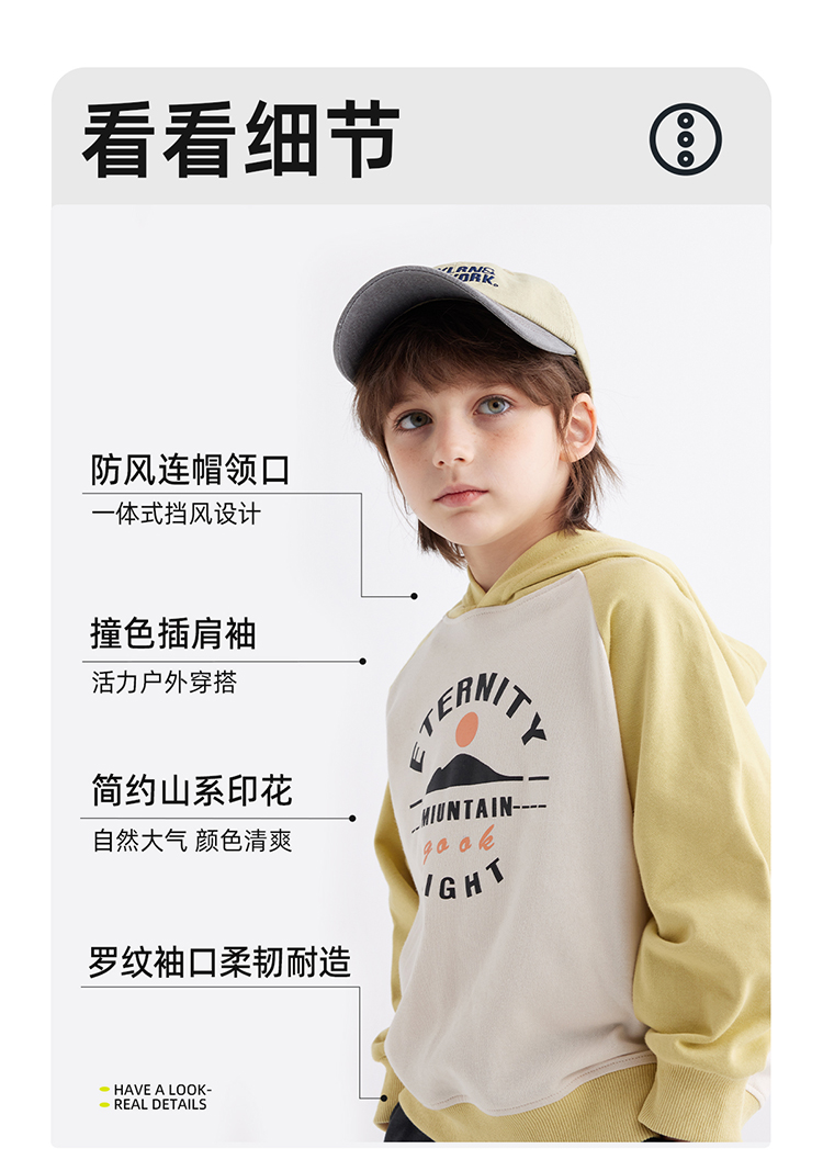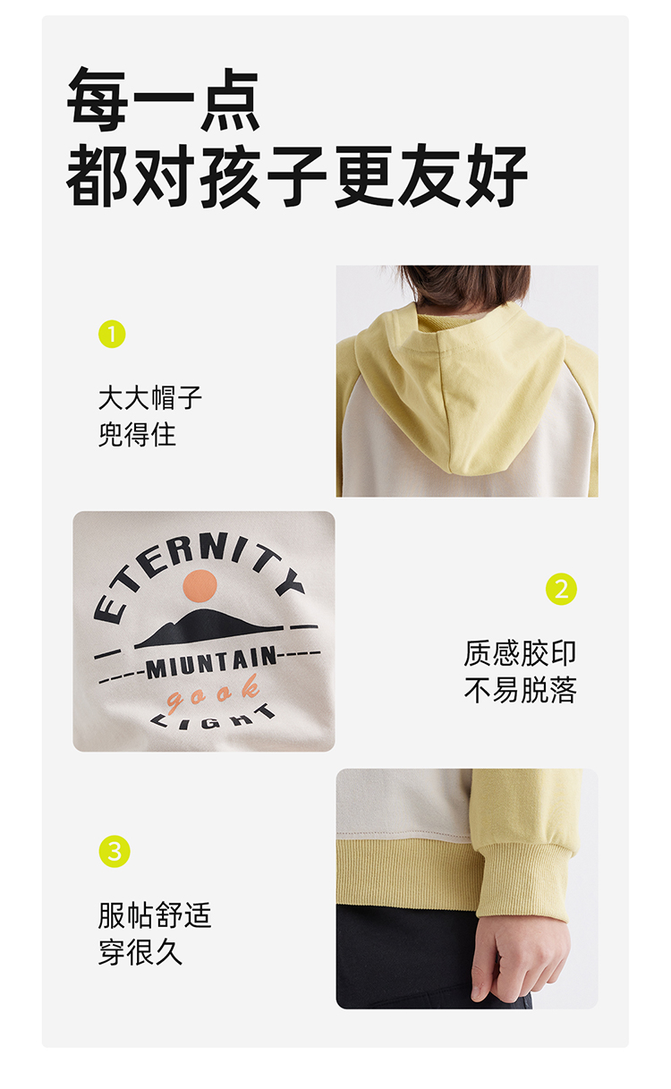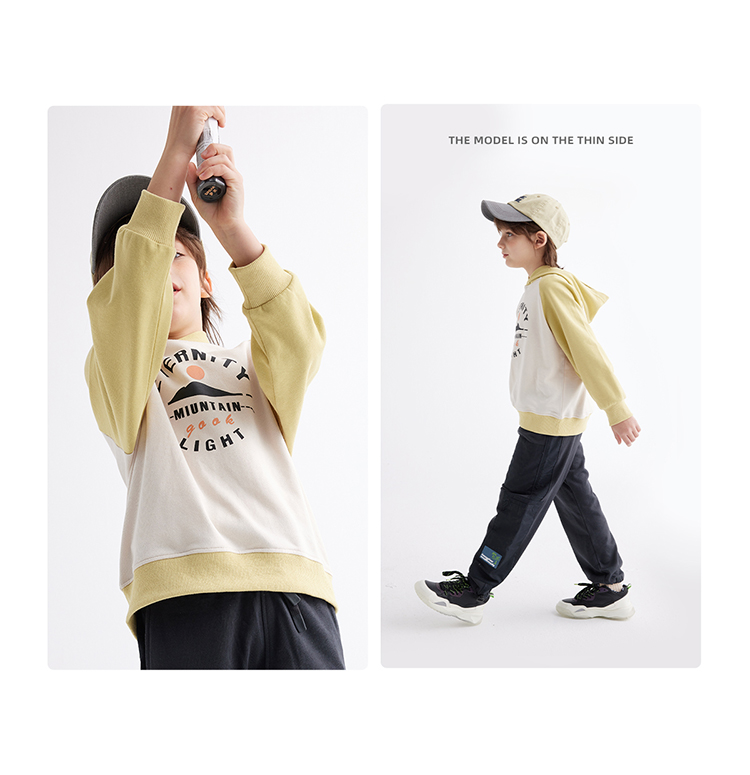 【撞色插肩袖 简约山系风】儿童韩版插肩袖连帽卫衣 PCWY2416