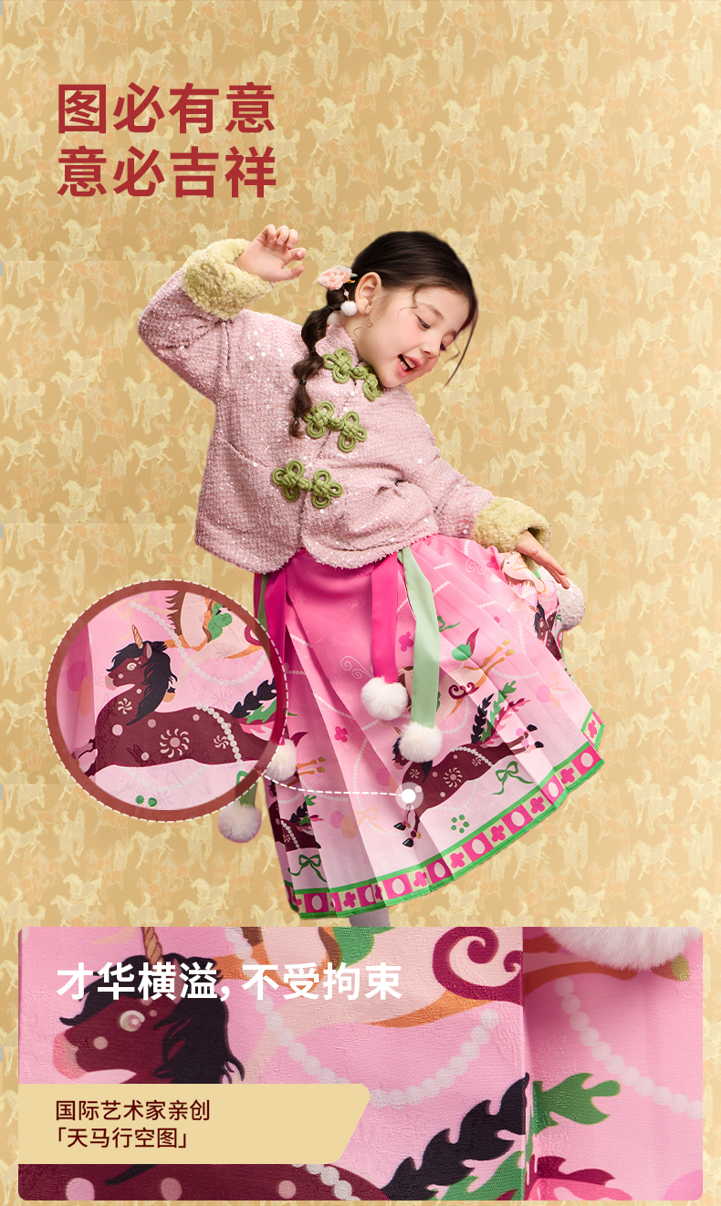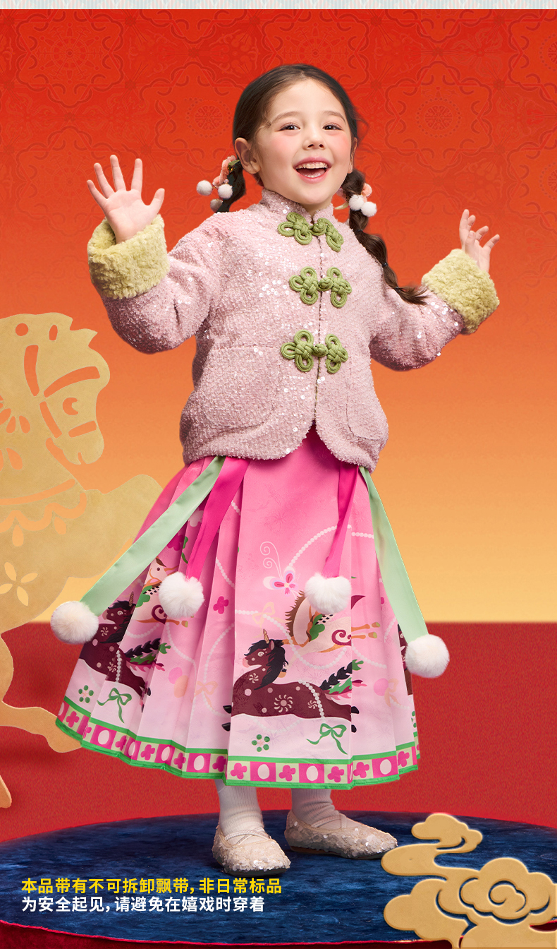 年衣童装马面裙冬季新款女童长款半身裙新中式天马行空马面裙