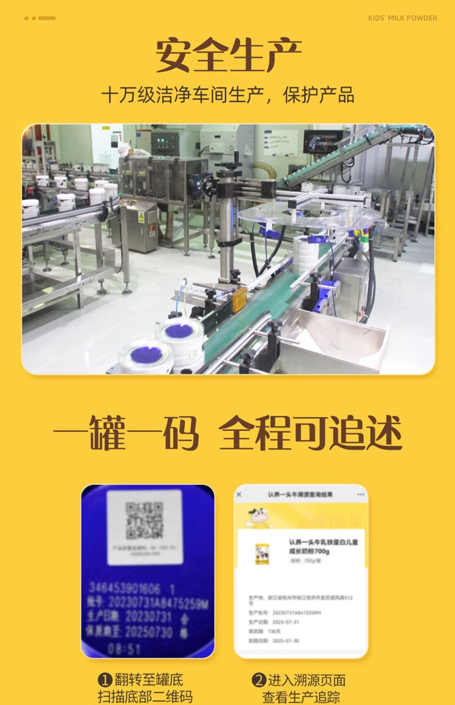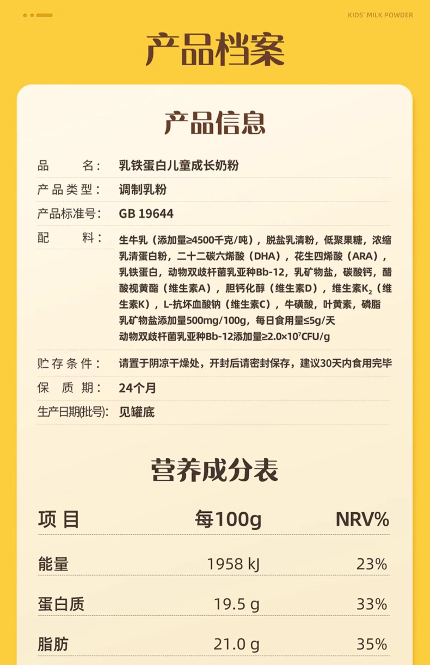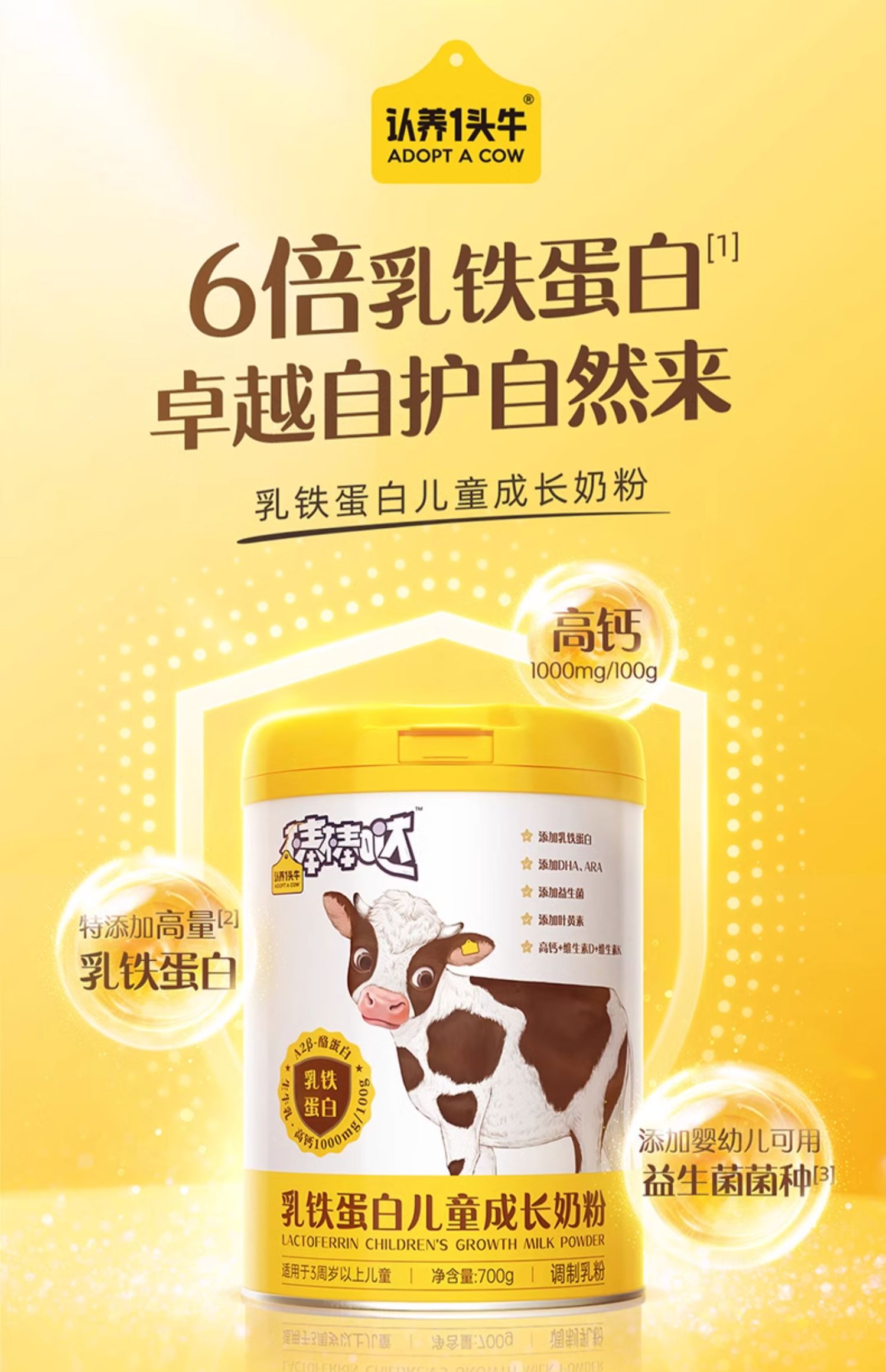 认养一头牛乳铁蛋白儿童成长奶粉 益生菌+益生元 3岁以上学生奶粉 700g