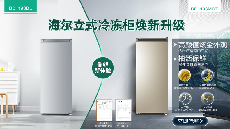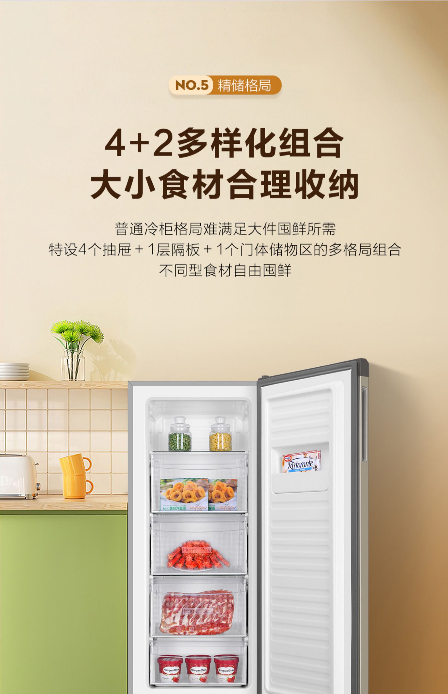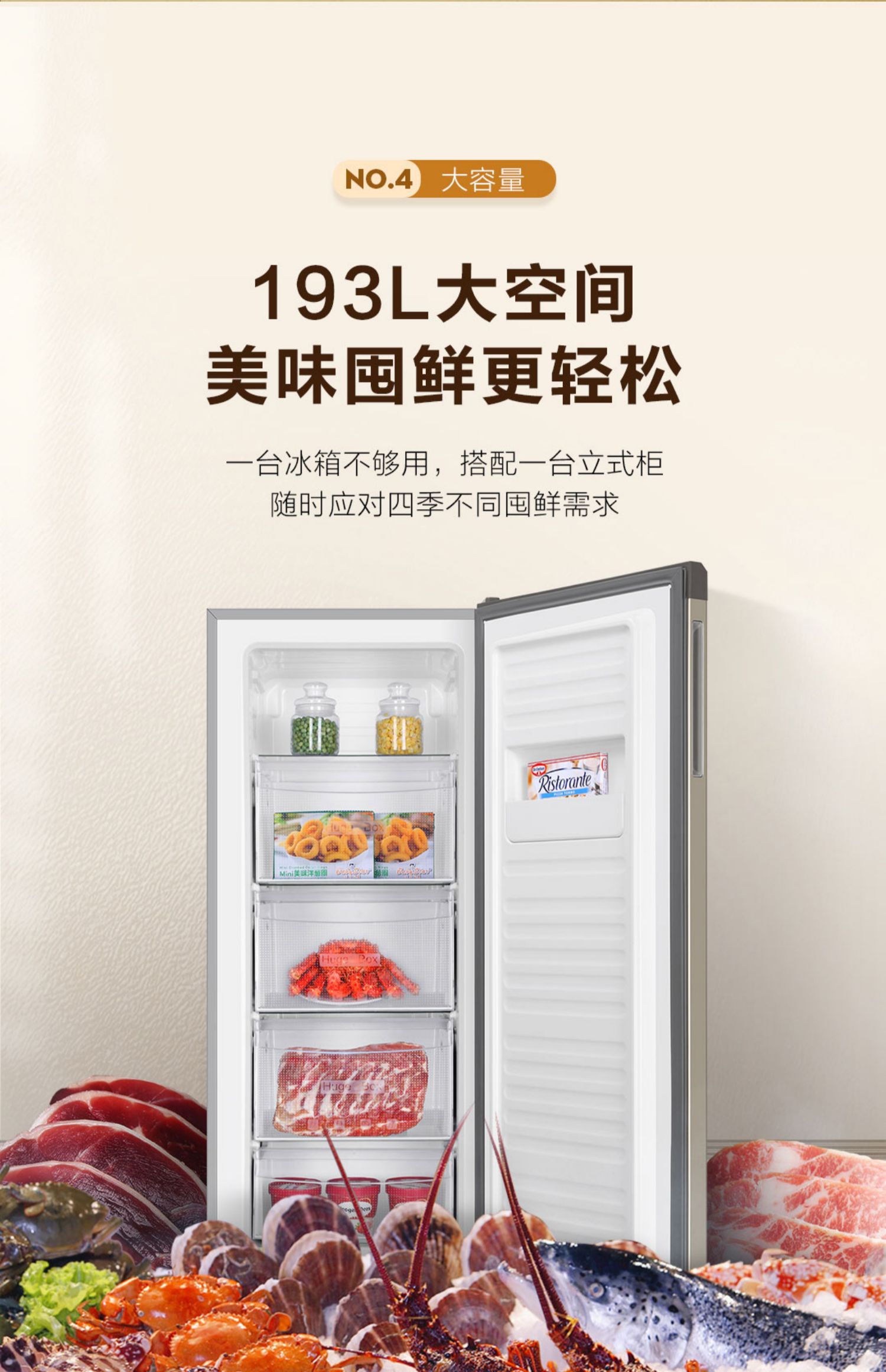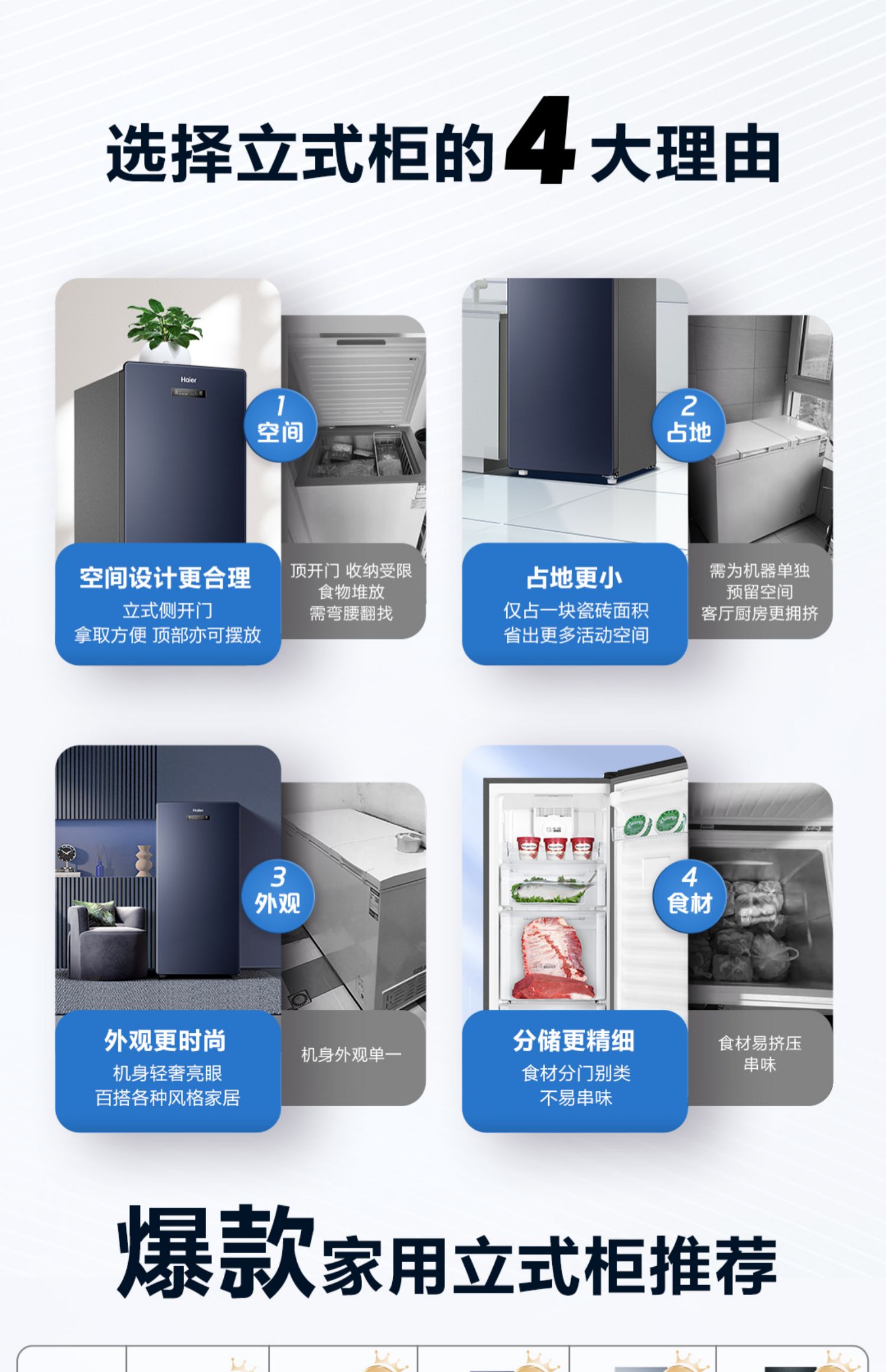 海尔193升小冰柜家用商用小型冷冻冰柜微霜立式冷柜抽屉囤货
