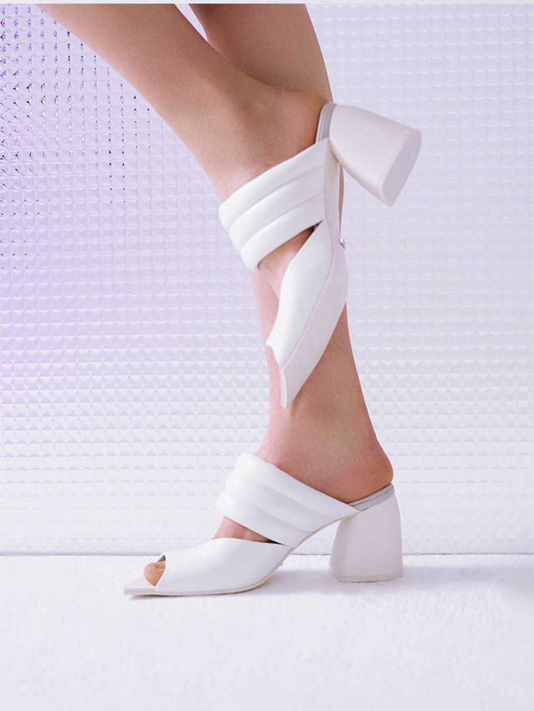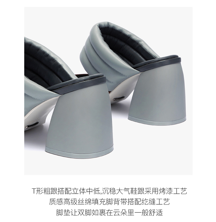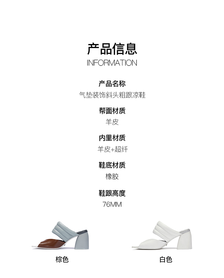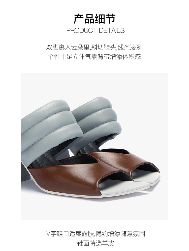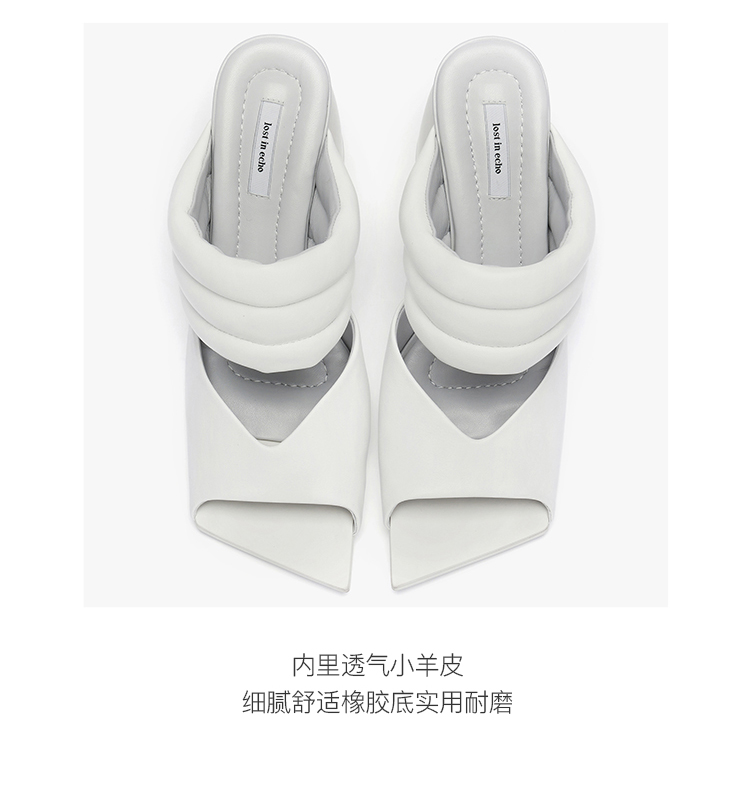 lost in echo 设计师原创 春夏新款 气垫装饰斜头粗跟凉鞋