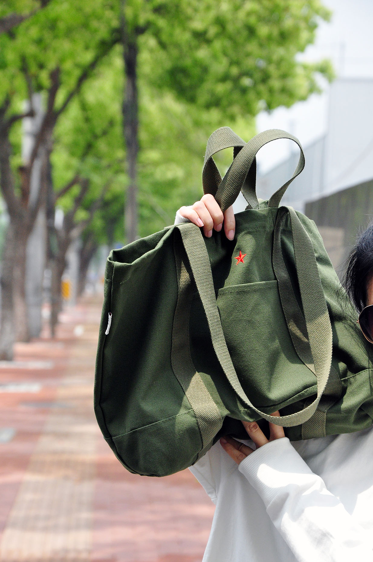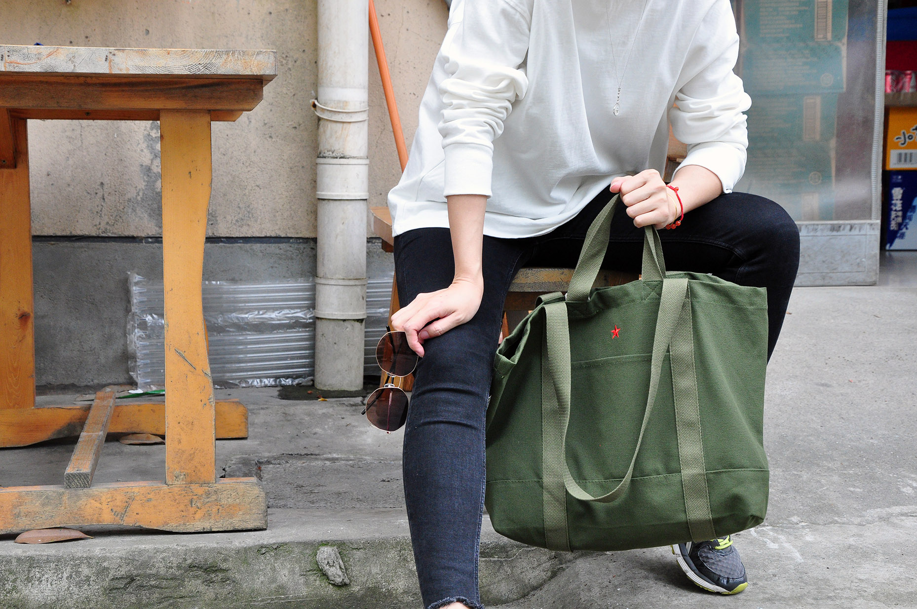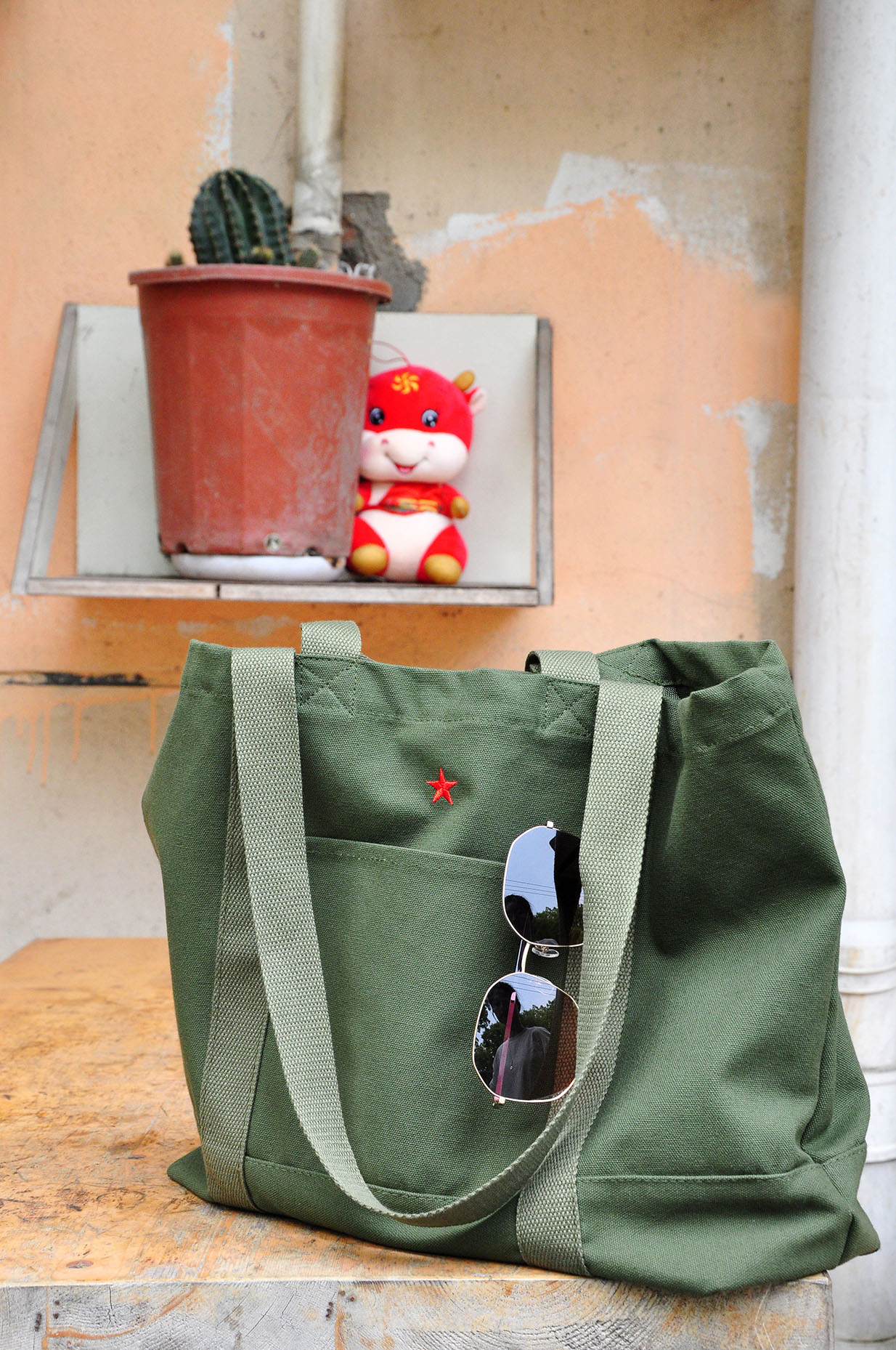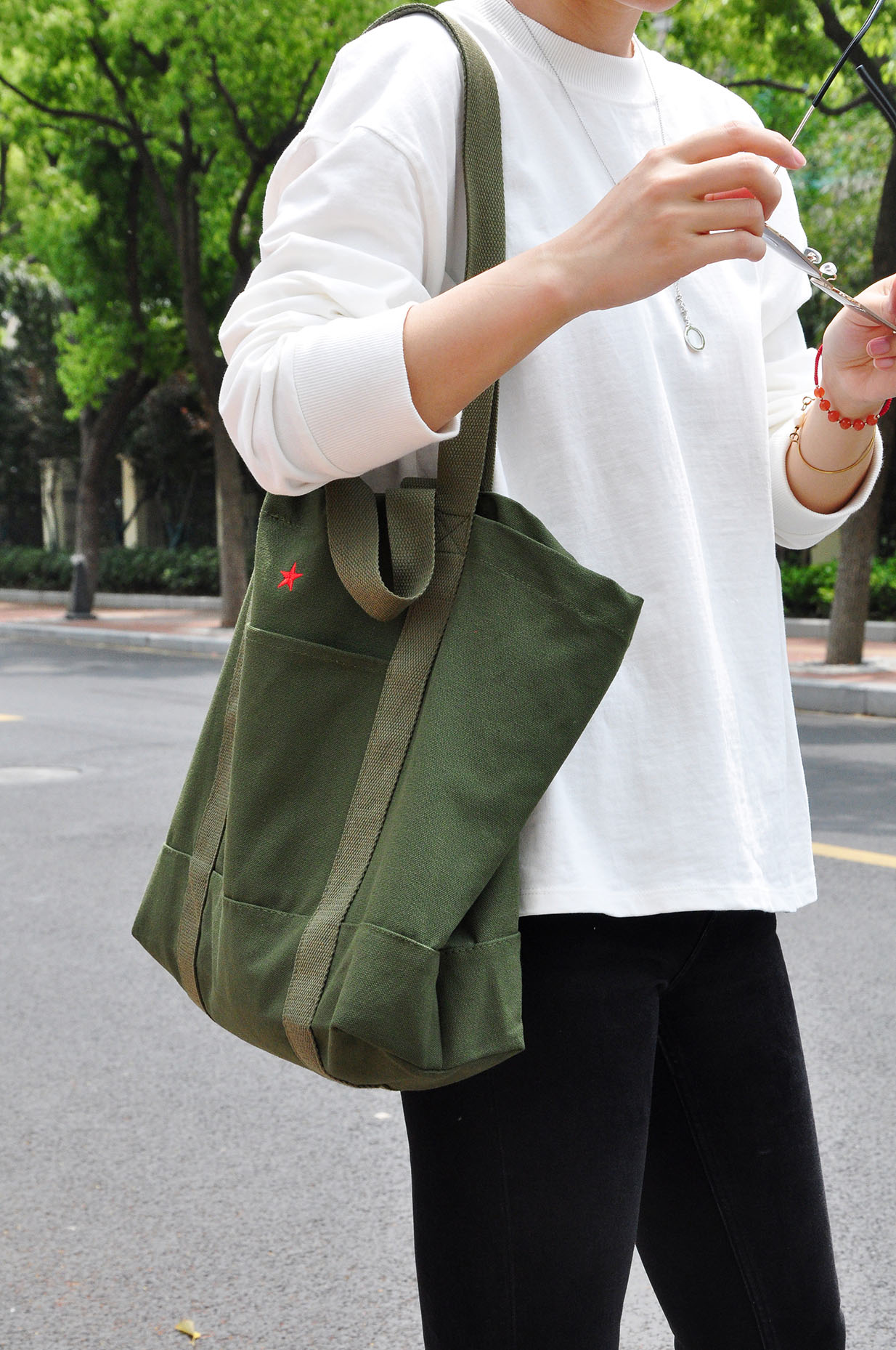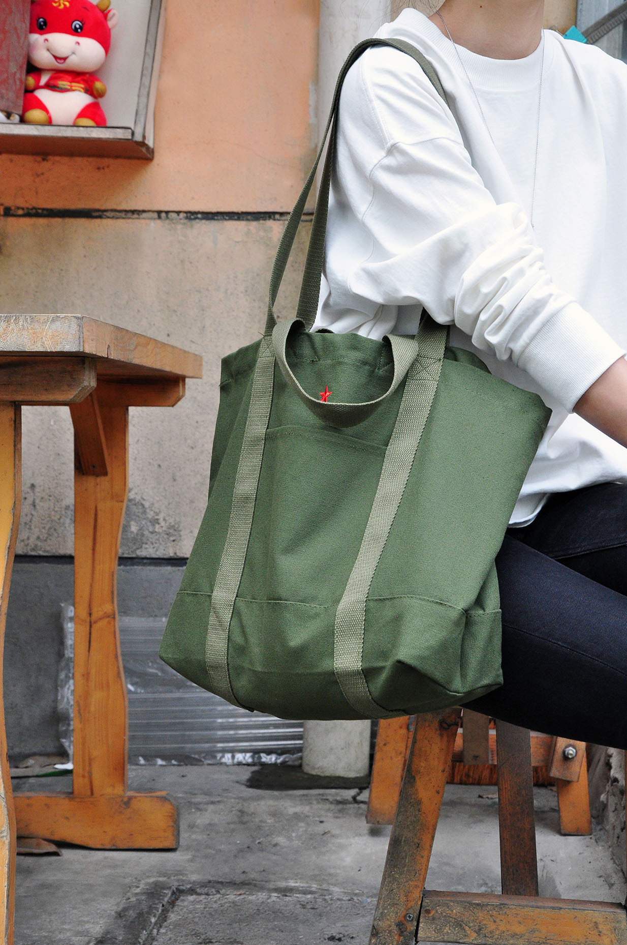 钟书阁橄榄绿布袋帆布包单肩包手拎小布包文艺布袋饭盒包饭盒袋小清新系列