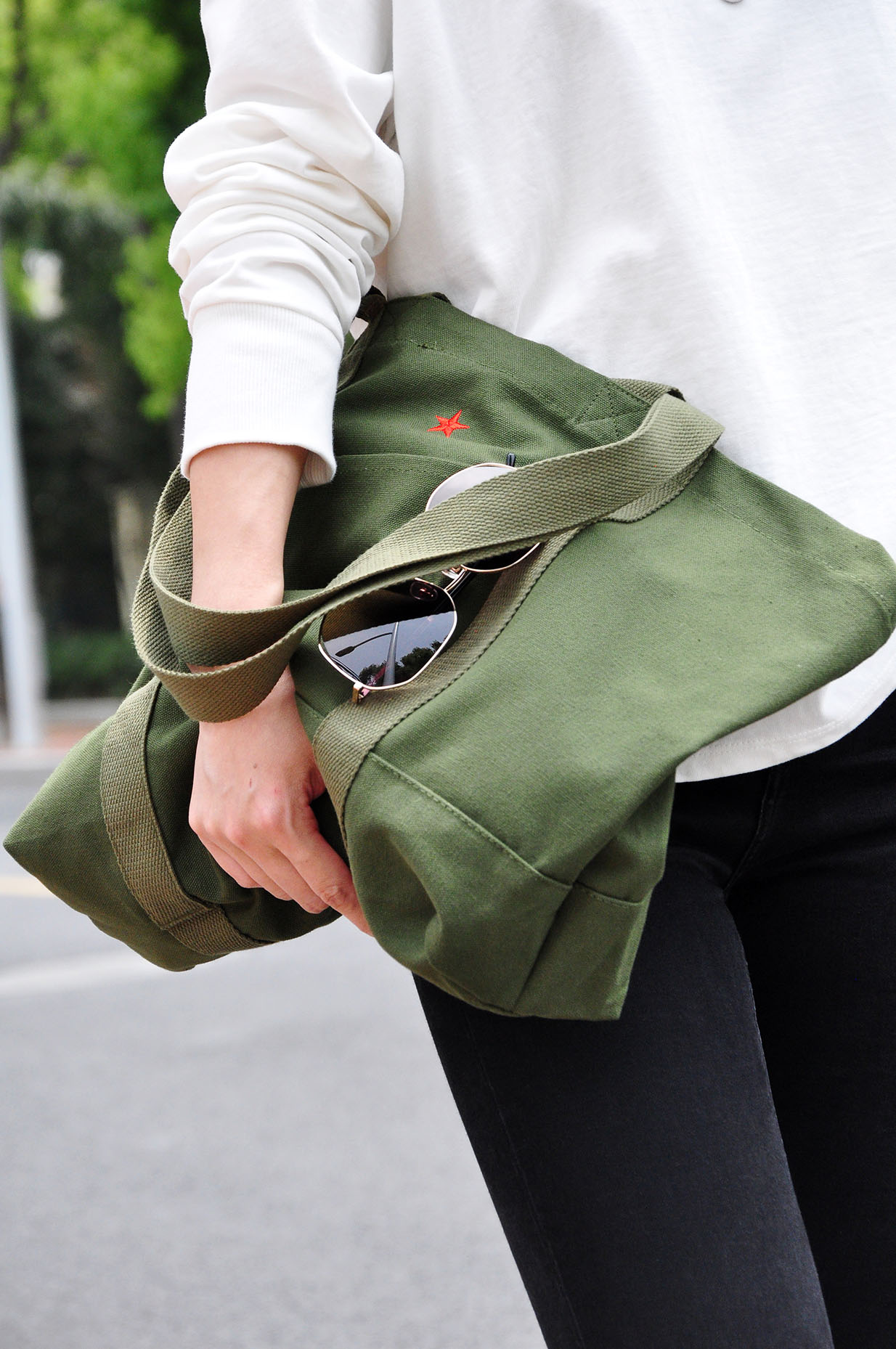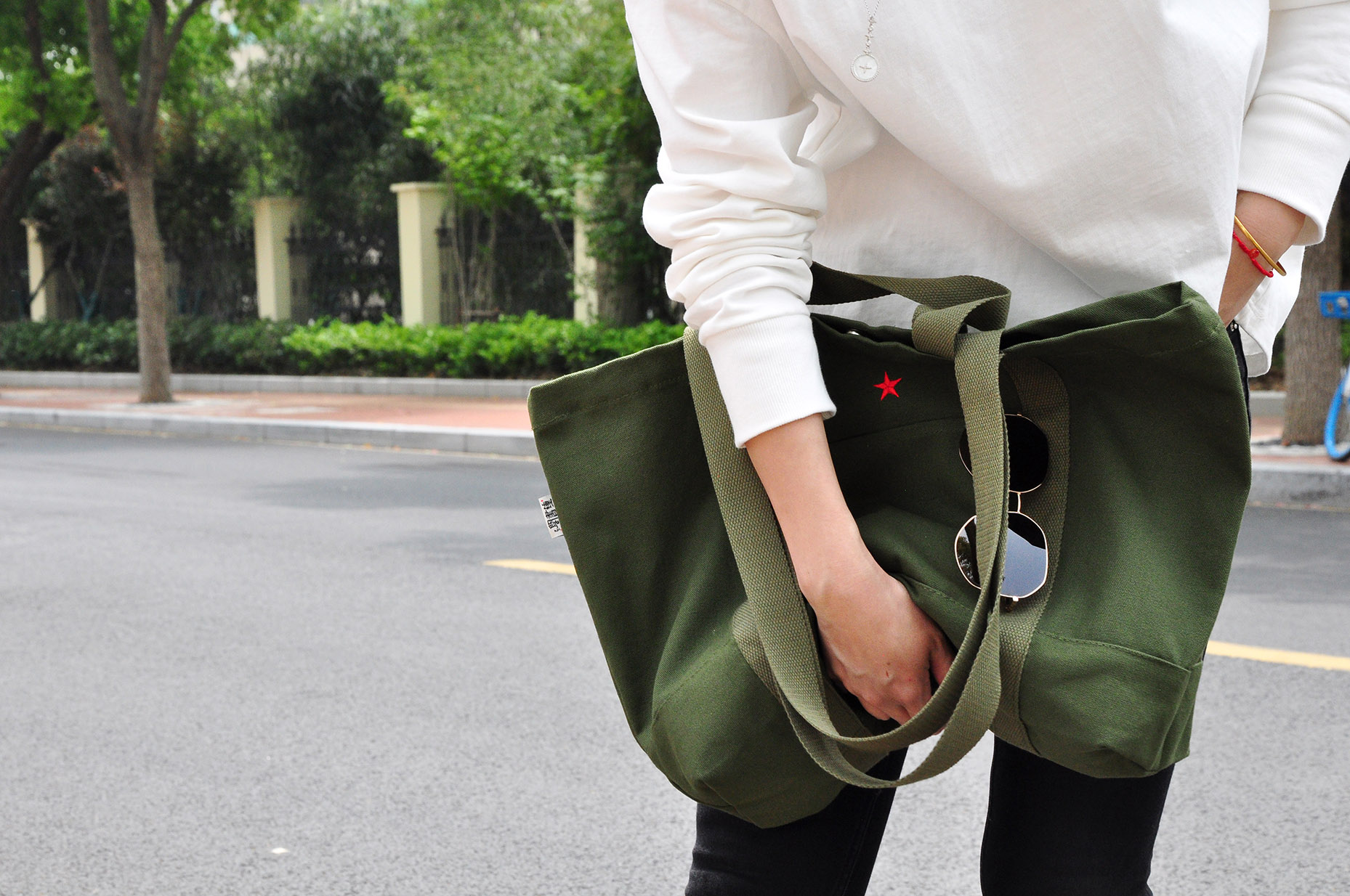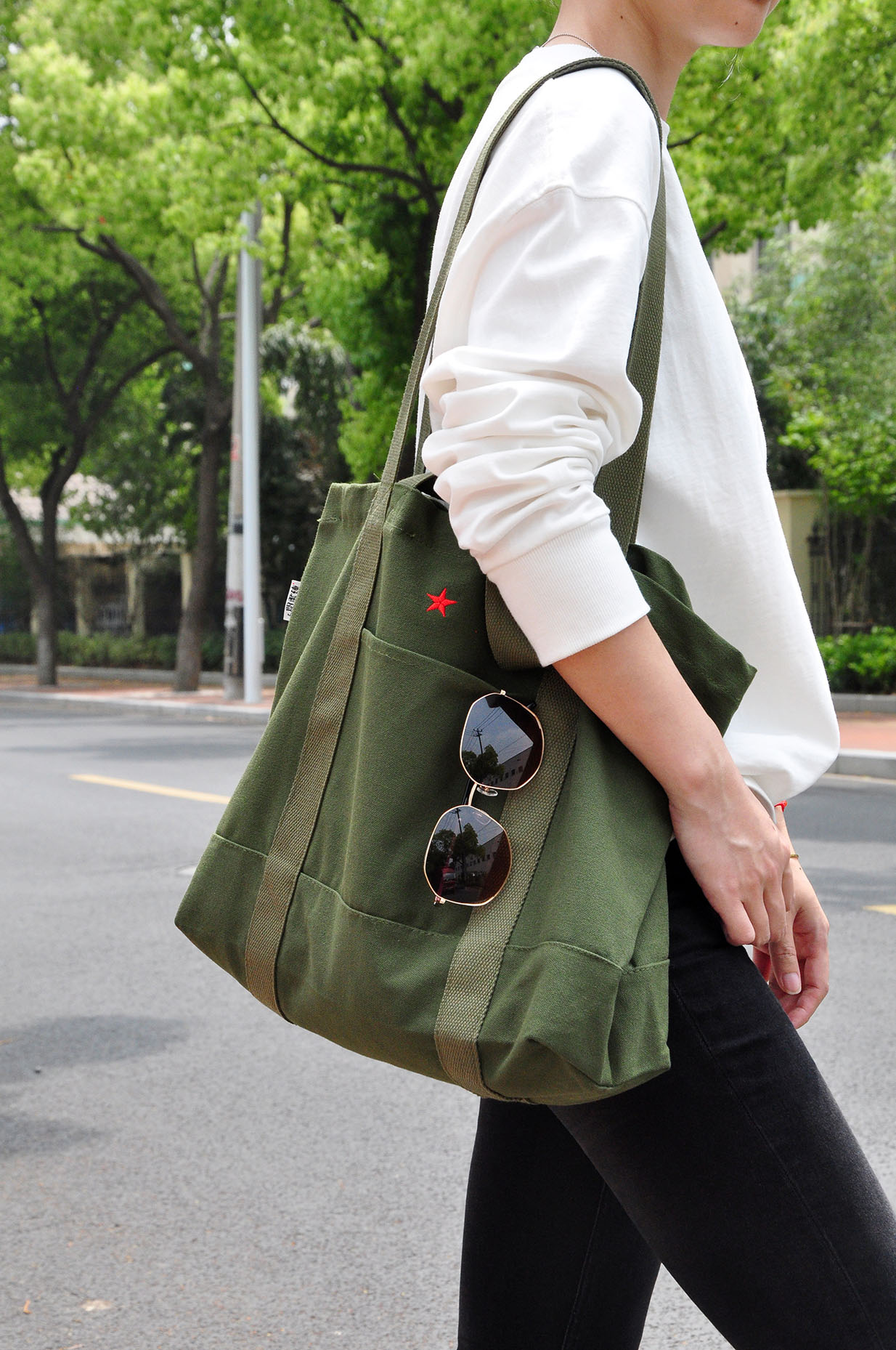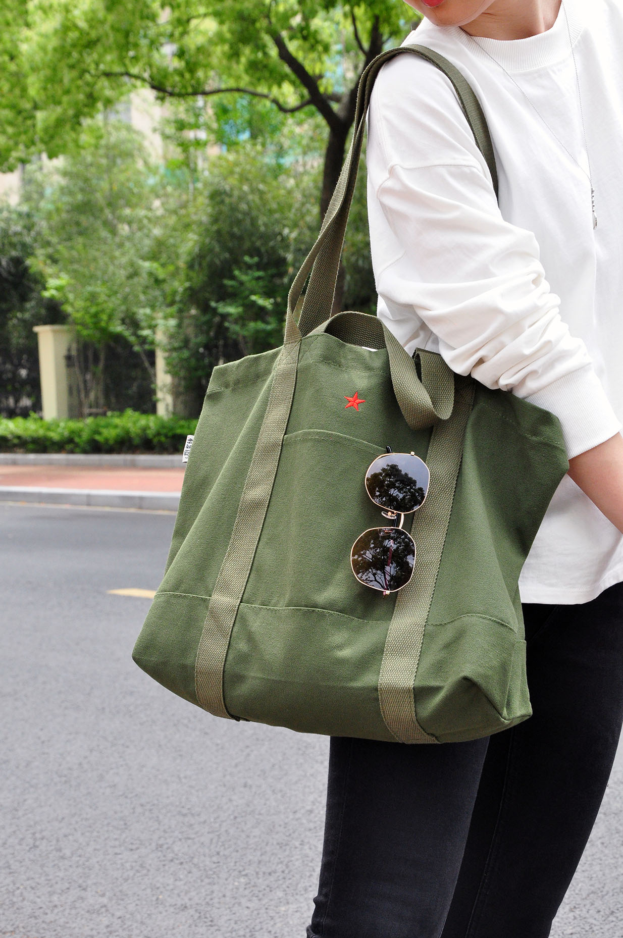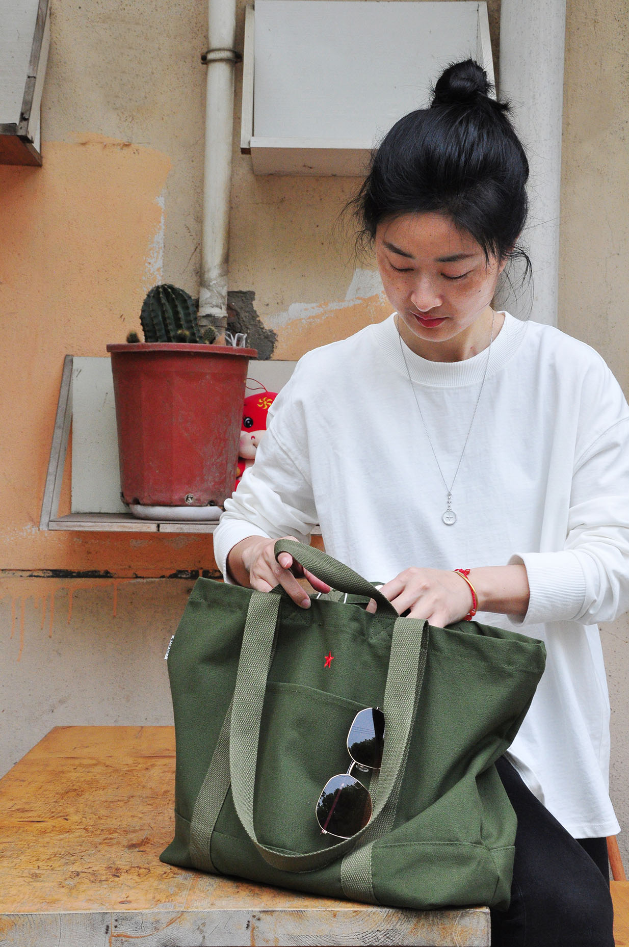 钟书阁橄榄绿布袋帆布包单肩包手拎小布包文艺布袋饭盒包饭盒袋小清新系列