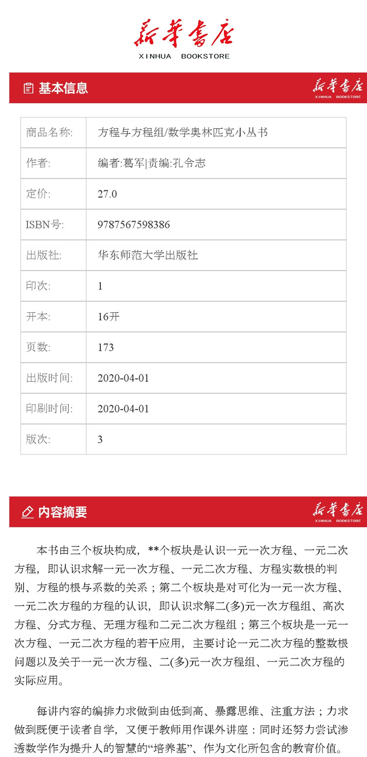 【新华书店旗舰店官网】 方程与方程组 数学奥林匹克小丛书 初中卷2中学教辅思维训练 数学专项训练练习册奥数资料辅导书竞赛题库