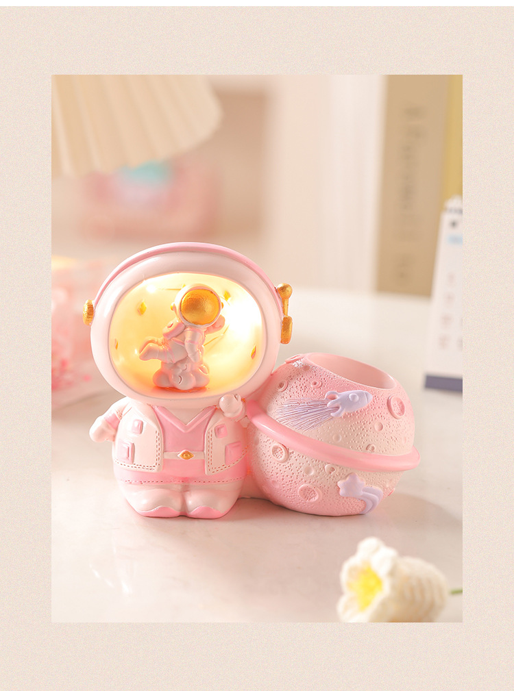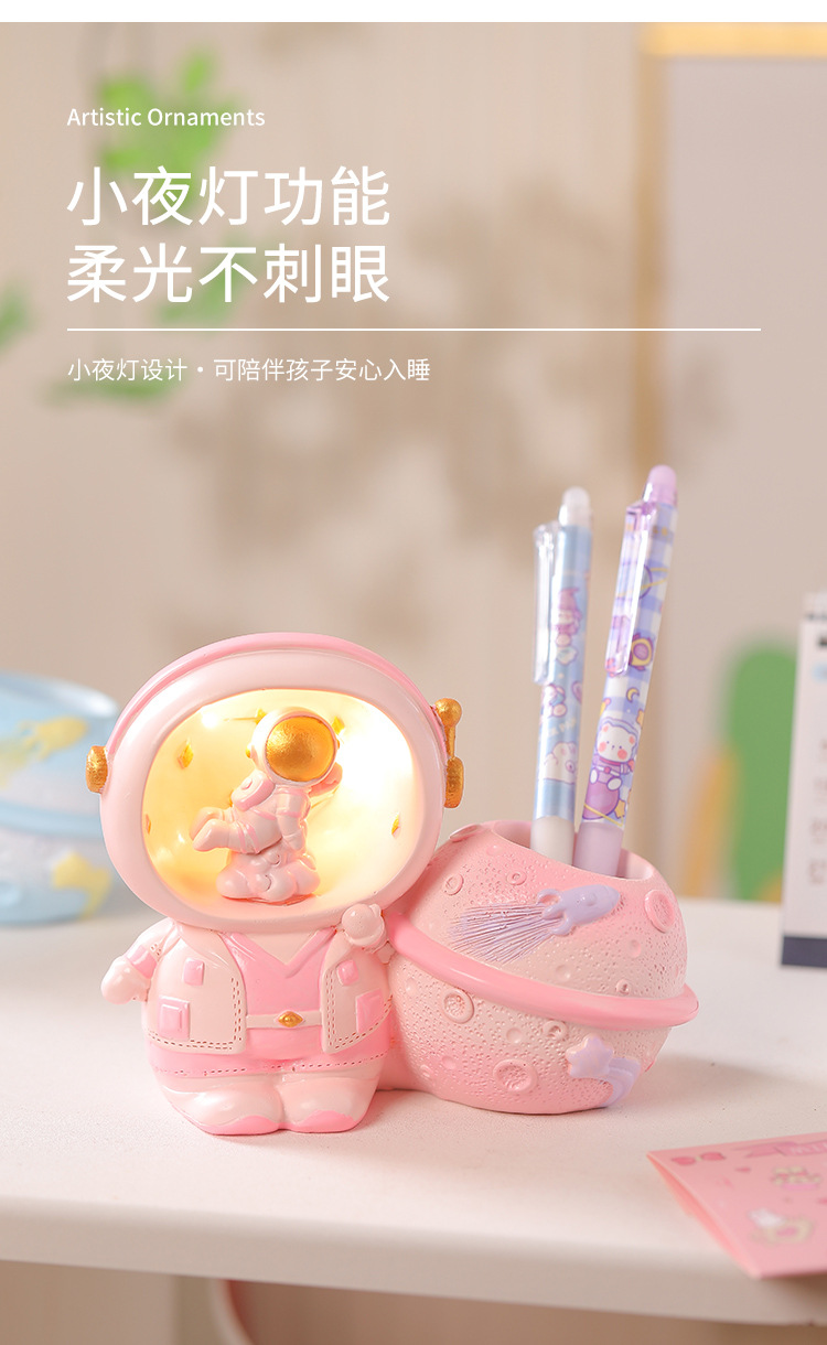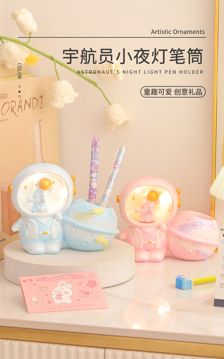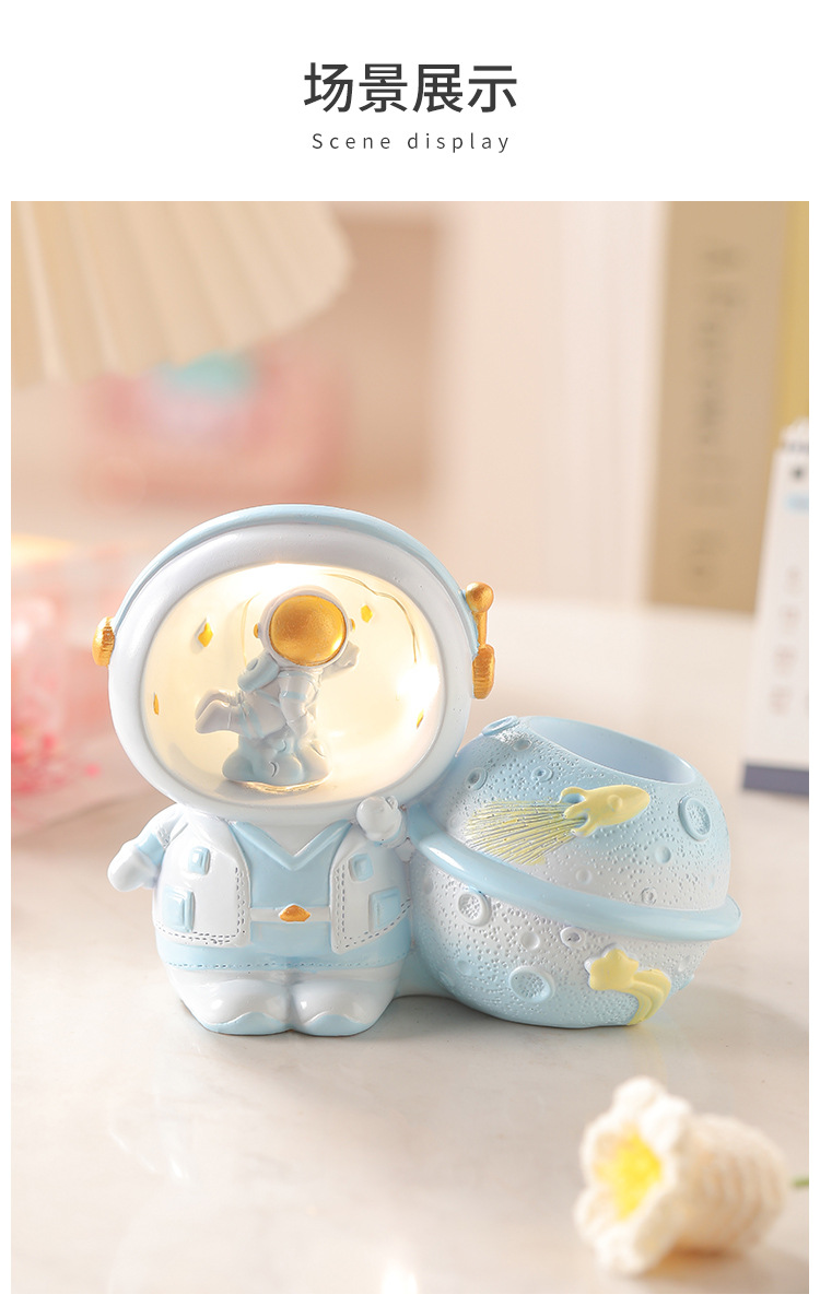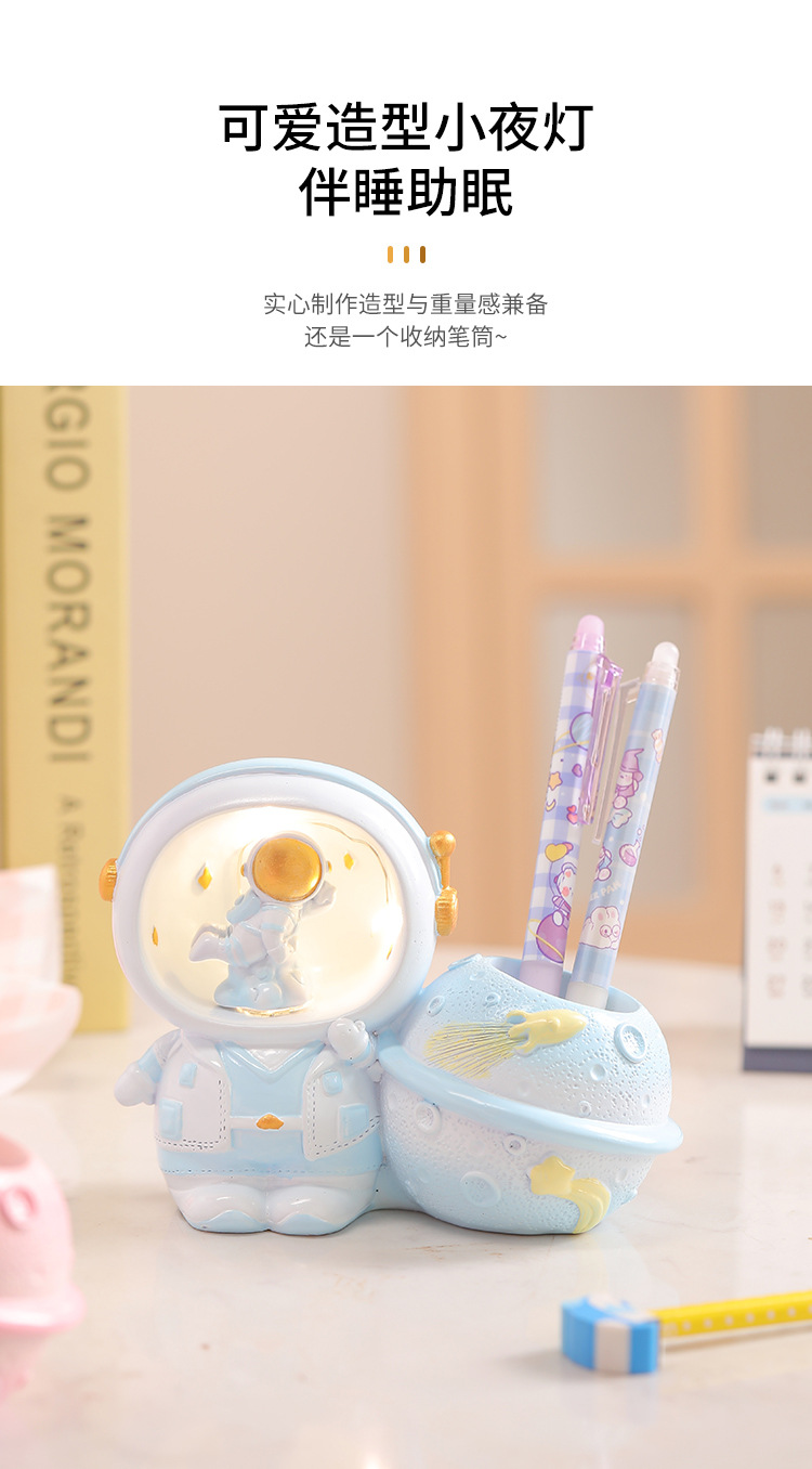 【童趣可爱,创意礼品~】儿童实用笔筒小夜灯 家居卧室卡通太空人树脂摆件 送礼学生生日礼物-QA