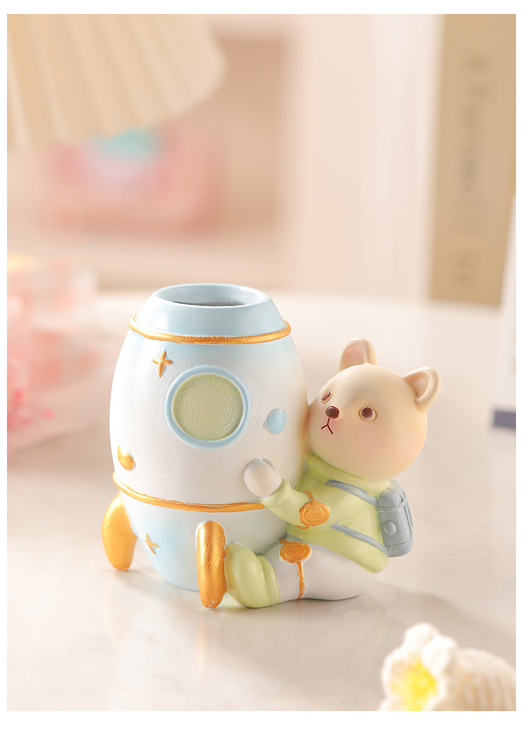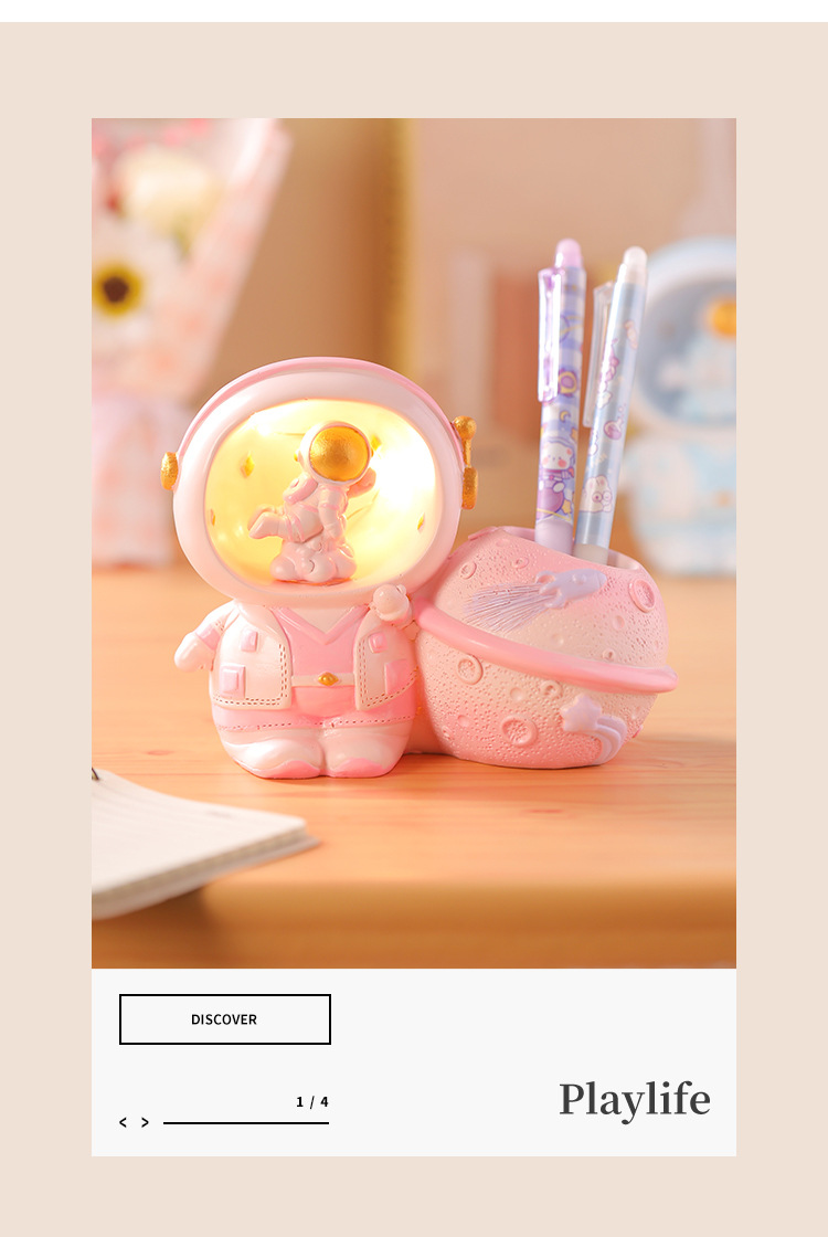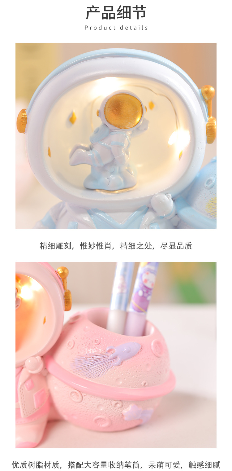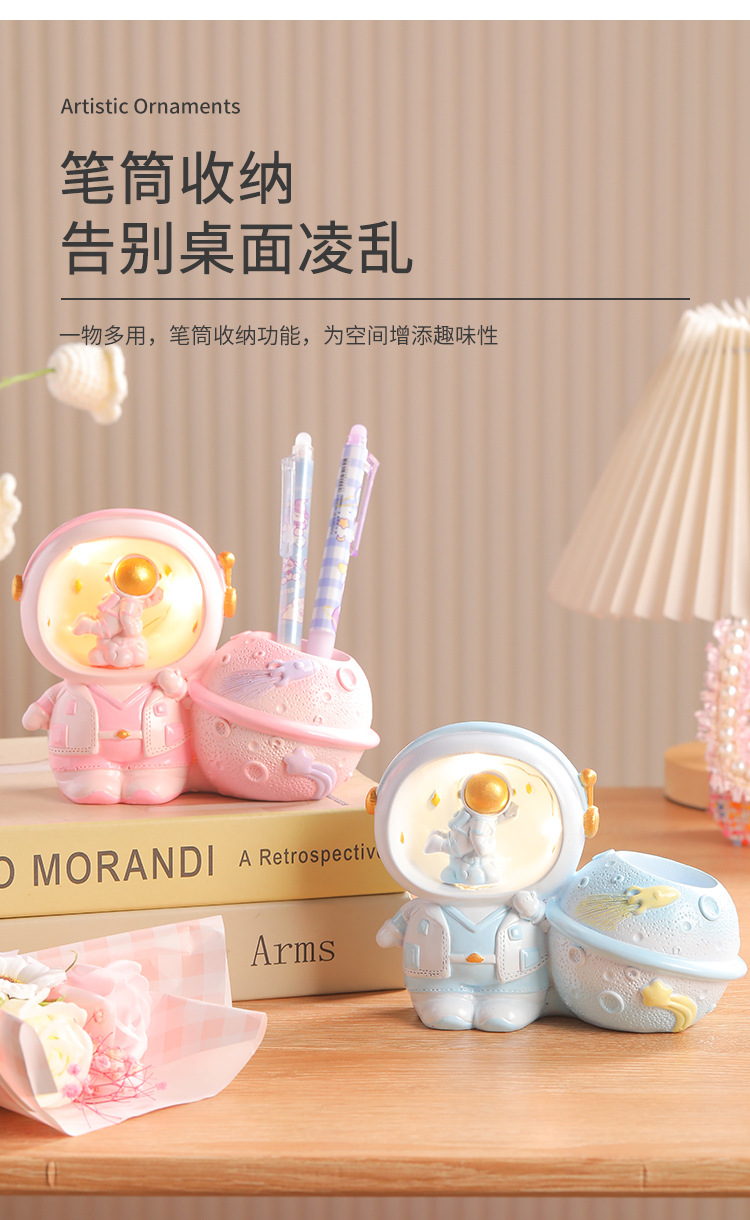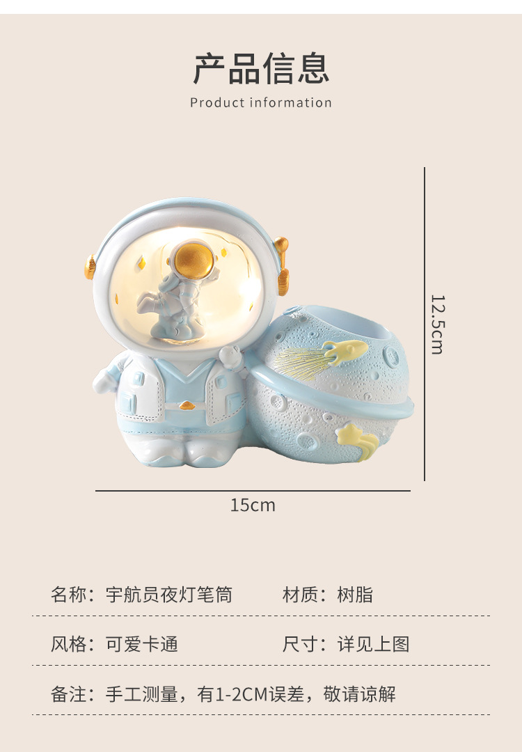 【童趣可爱,创意礼品~】儿童实用笔筒小夜灯 家居卧室卡通太空人树脂摆件 送礼学生生日礼物-QA