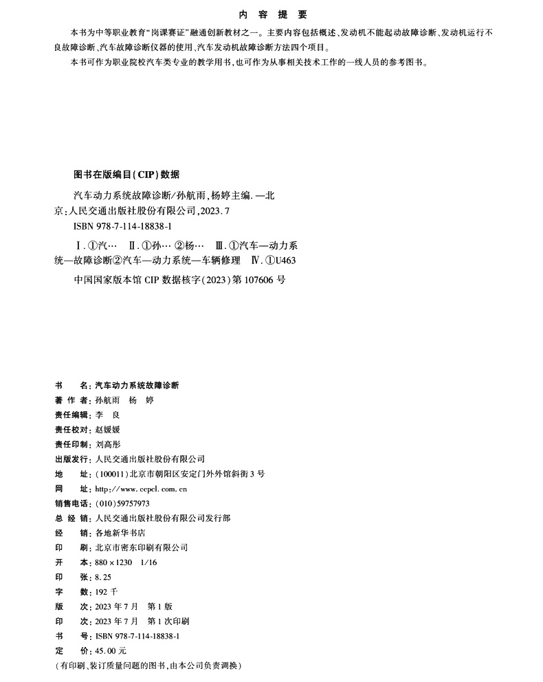 书名:汽车动力系统故障诊断